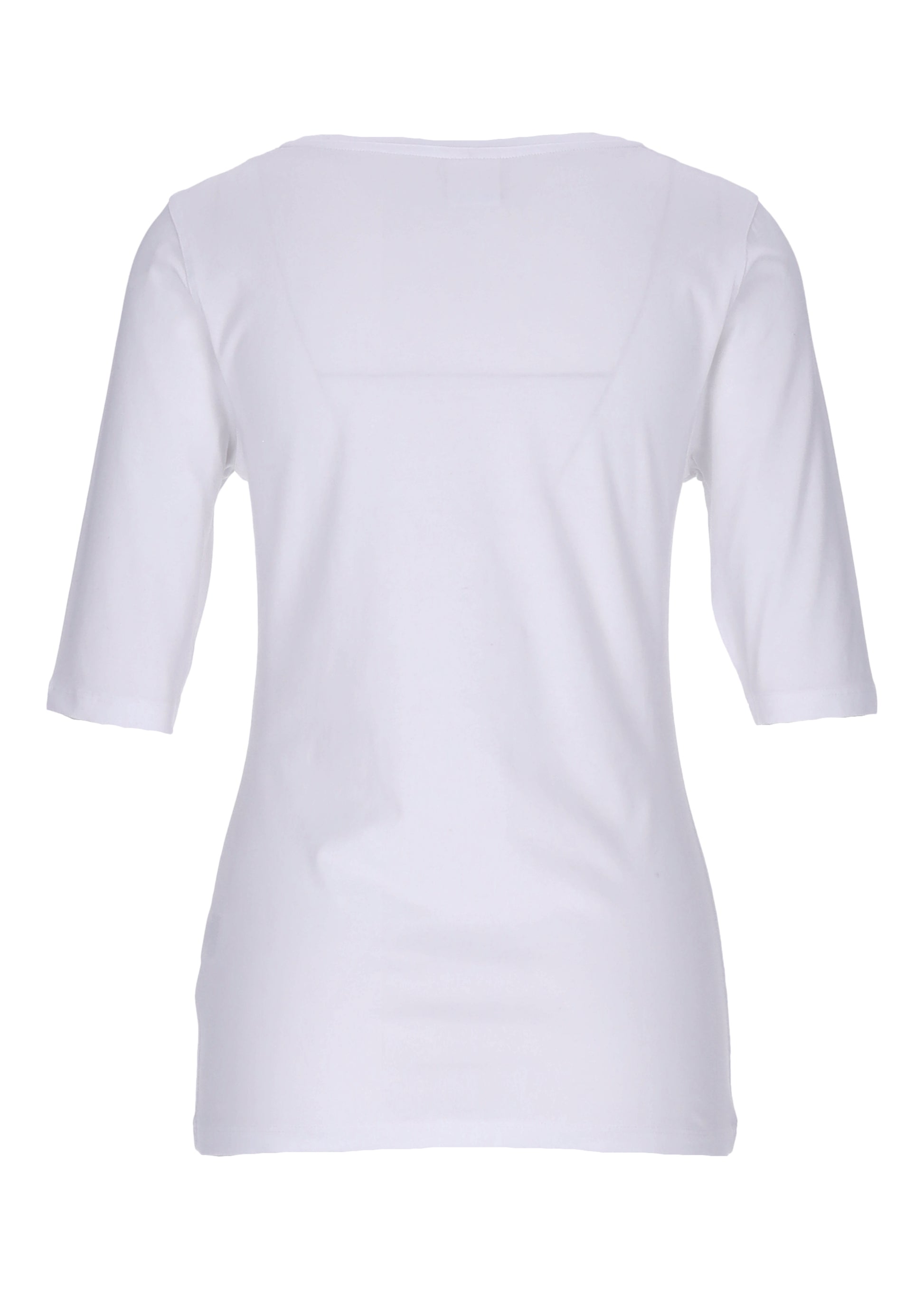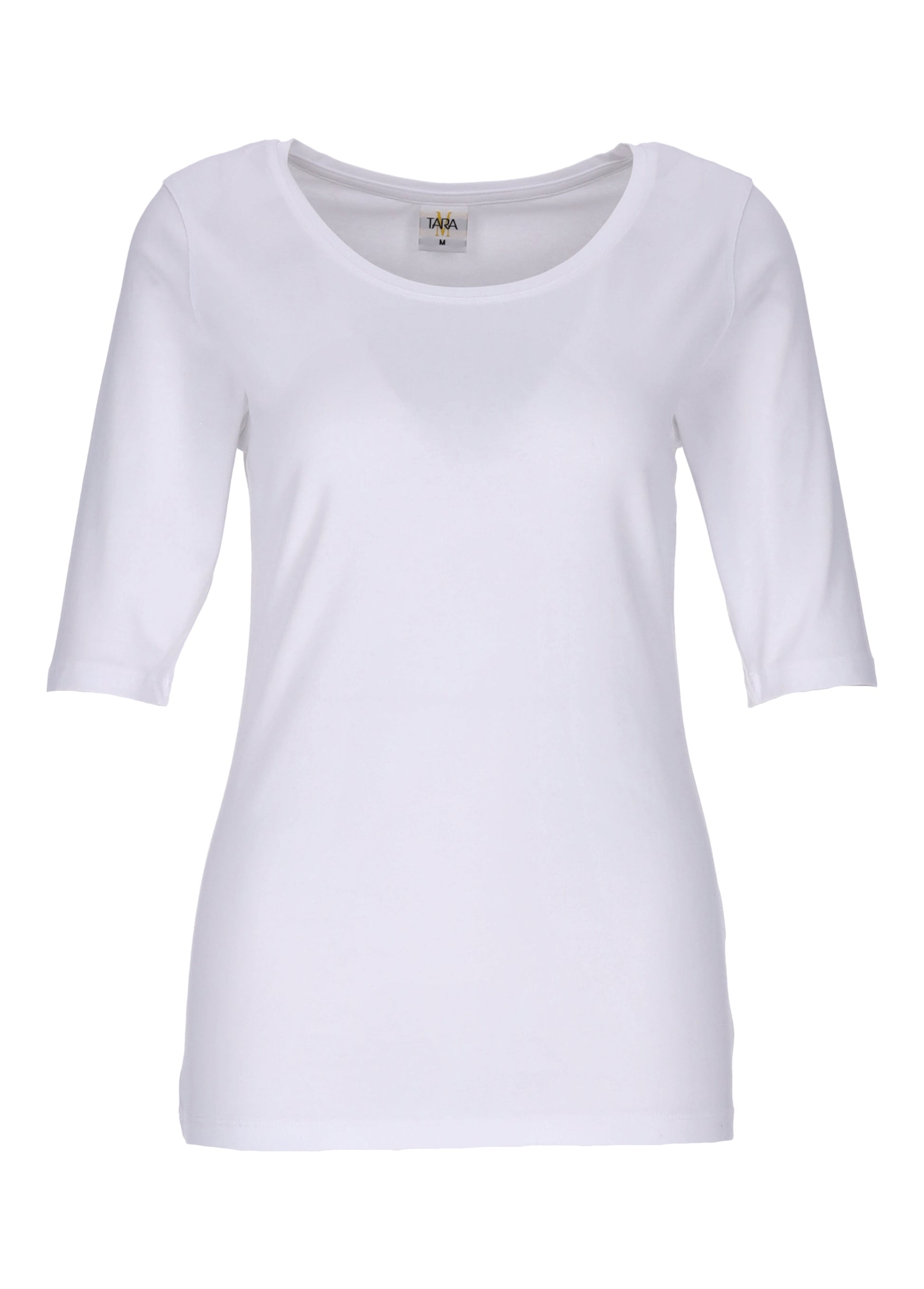Bereichern Sie Ihre Garderobe um dieses zeitlose Damen-Shirt mit Dreiviertel-Ärmeln, Rundhalsausschnitt und einfarbigem Design und setzen Sie auf klassische Eleganz, die nie aus der Mode kommt! Der zeitlose Rundhalsausschnitt sorgt für eine schmeichelhafte Silhouette und bietet gleichzeitig eine bequeme Passform. Dieser klassische Ausschnitt macht das Shirt zu einem zeitlosen Basic, das sich mühelos mit verschiedenen Outfits kombinieren lässt. Die Dreiviertel-Ärmel dieses Shirts bieten eine elegante Alternative zu kurz- oder langärmeligen Optionen und sind perfekt für jede Jahreszeit. Ob beim Büroalltag oder in der Freizeit, dieses Shirt ist ein vielseitiger Begleiter, der Ihnen Stil und Komfort bietet.
