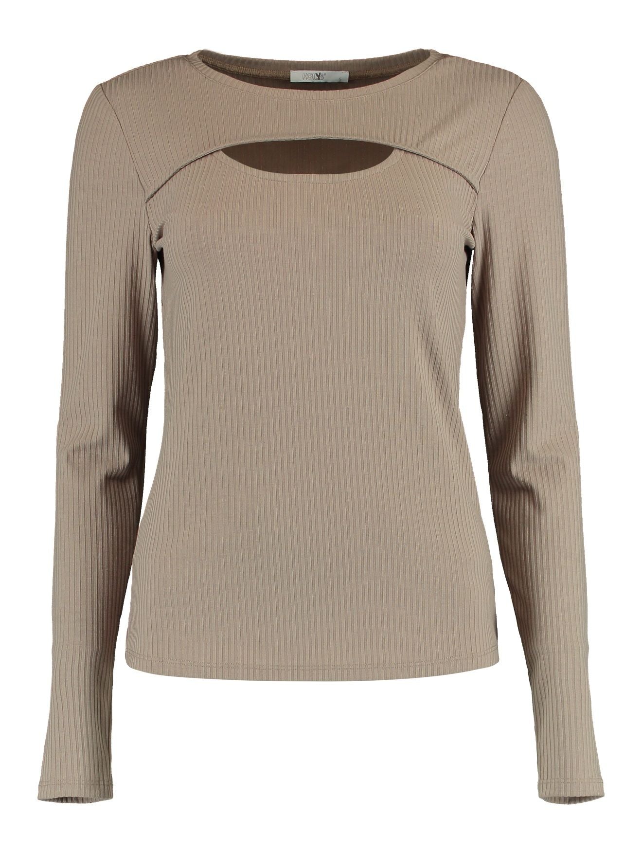 Langes Oberteil mit Cut-Outs, Ripp-Qualität, Langarm, Rundhalsausschnitt, elastisch