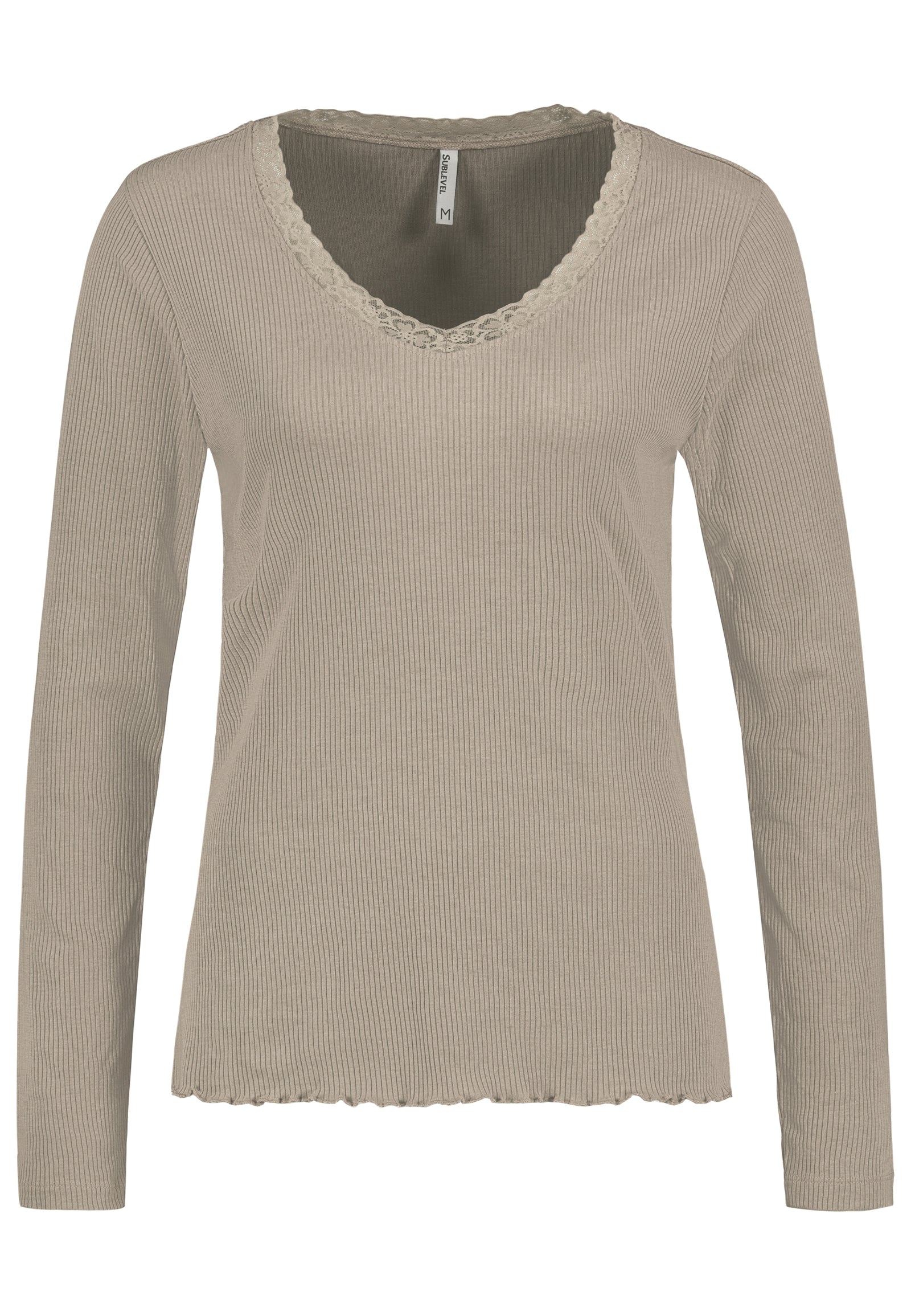DOB Shirt,langarm,V-Ausschnitt mit Spitze,Rollsaum