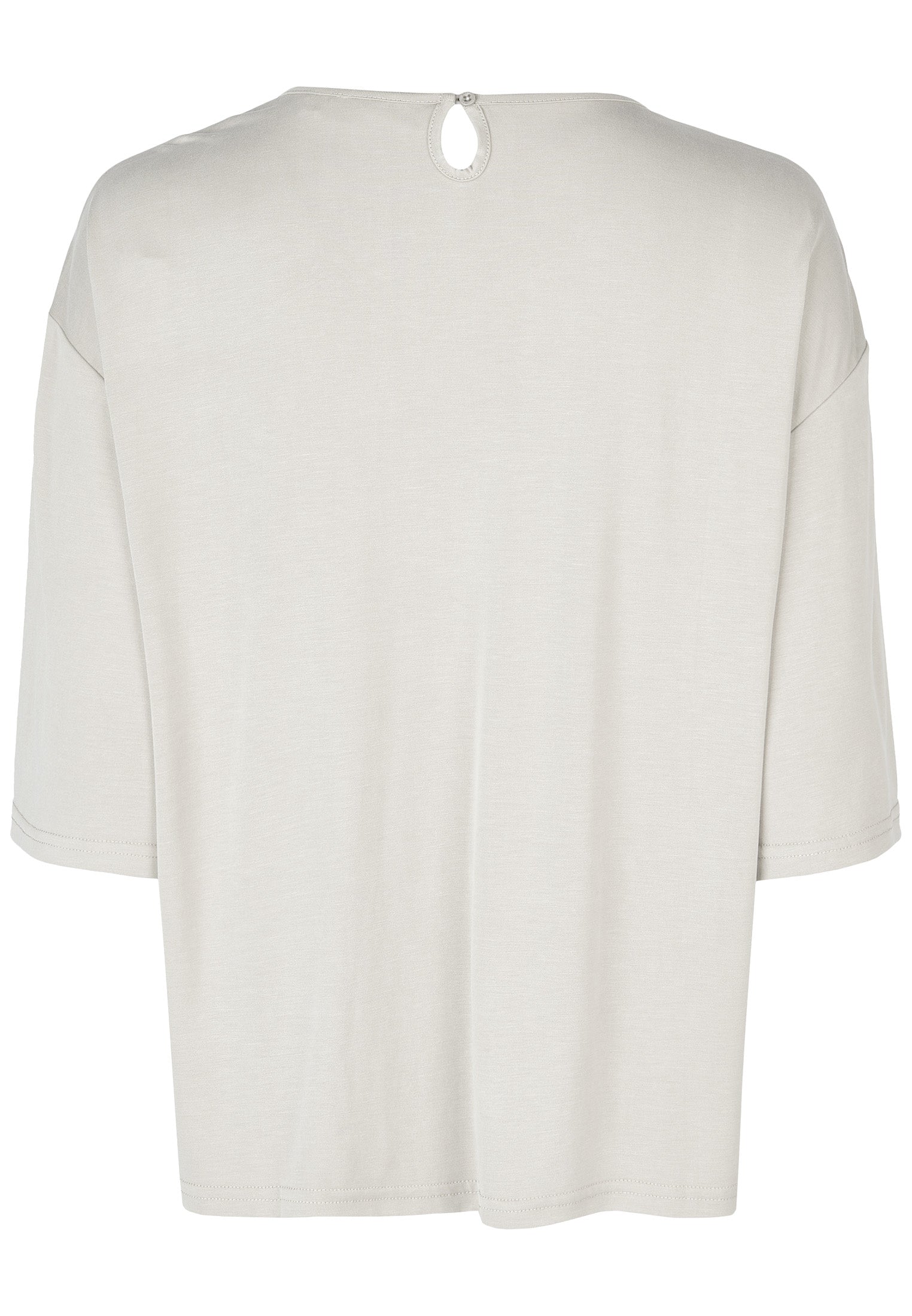 Damenshirt, 3/4 Arm, Raffung am Rundhalsausschnitt vorn, Schlitz mit Knopf am Kragen hinten