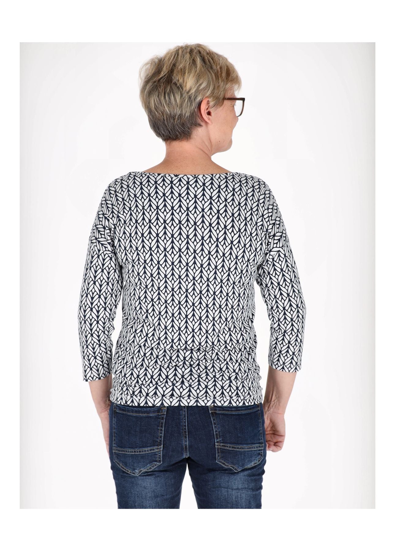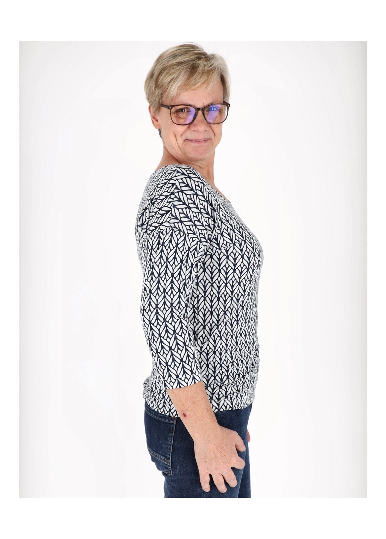 Damen-Shirt mit 3/4-Arm, Tunnelzug & floralem Blattprint – Leicht, elegant & stylisch