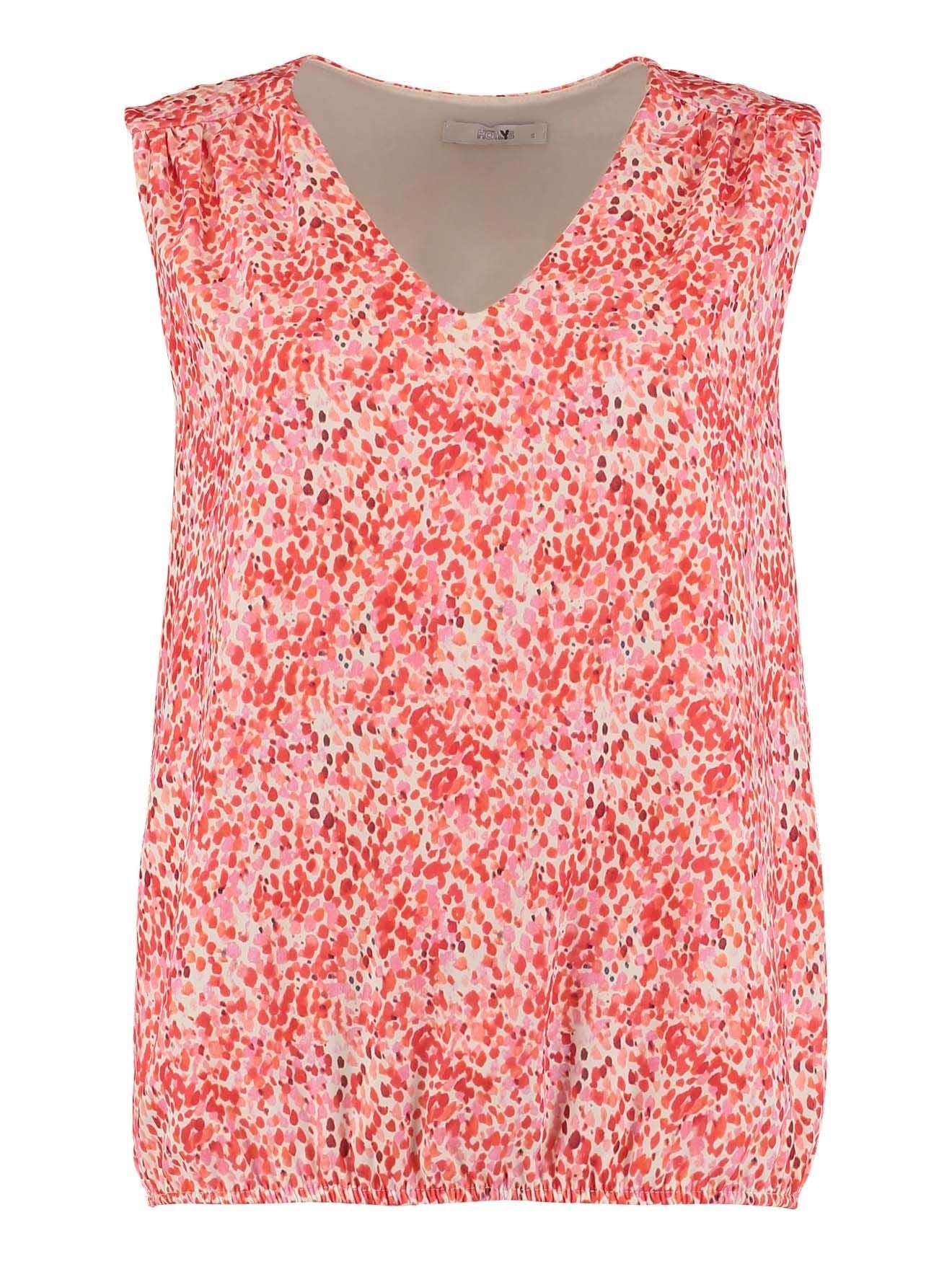 Dieses ärmellose Sommer-Shirt kombiniert lässig-leichten Tragekomfort mit femininem Flair – ideal für warme Tage. Der klassische V-Ausschnitt betont den Halsbereich dezent, während der ausgestellte Schnitt zusammen mit dem elastichem-Gummizug am Saum eine moderne, schwungvolle Silhouette zaubert. Das sommerliche Muster setzt frische Akzente und verleiht dem Shirt einen stylischen Touch. Perfekt zu Jeans, Shorts oder Stoffhosen – dieses Teil ist ein vielseitiges Outfit-Highlight für entspannte Freizeit- oder Urlaubslooks.