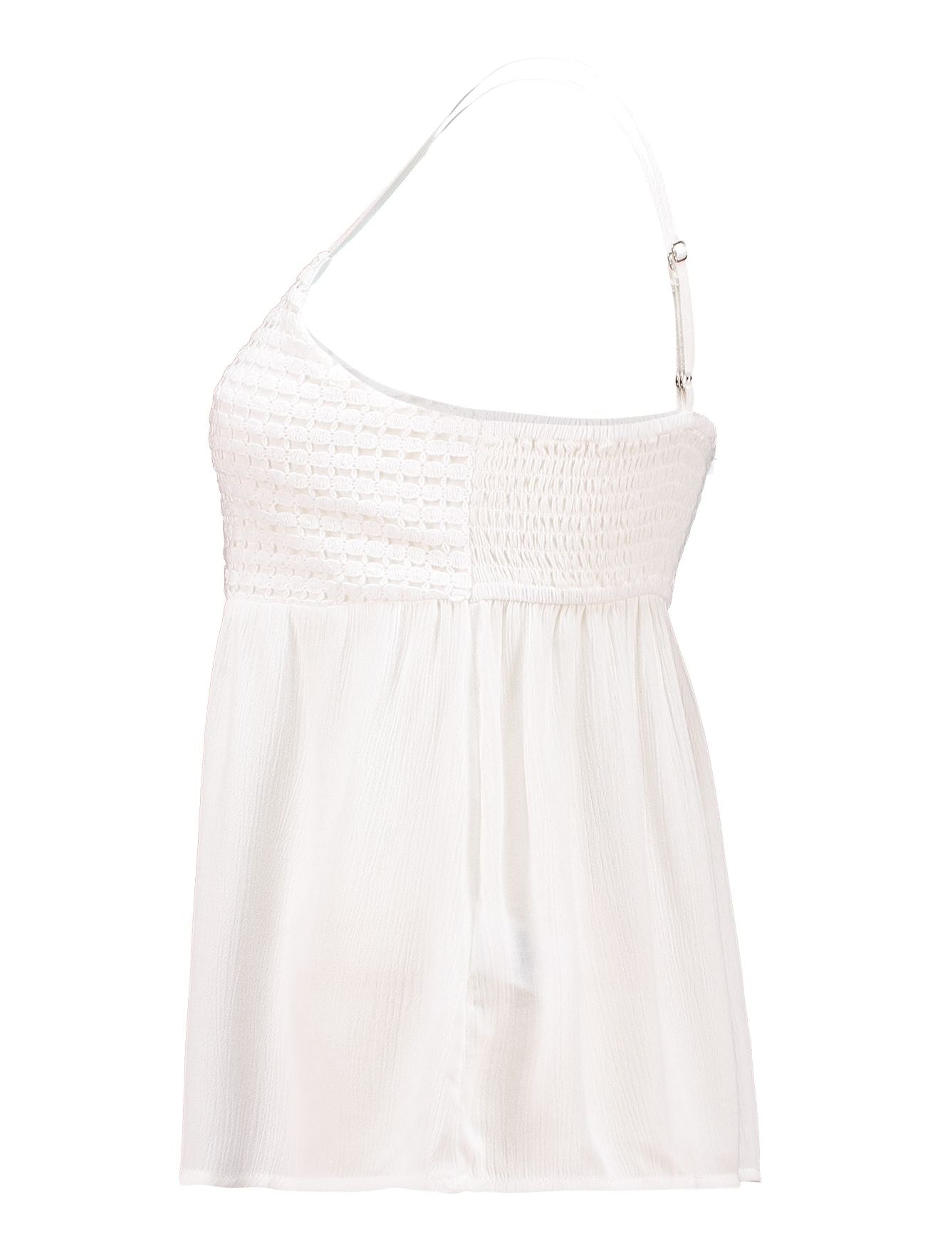 Feminin und verspielt: Dieses Top überzeugt mit verstellbaren Spaghettiträgern, einem eleganten V-Ausschnitt und einem charmanten Schösschen, das sanft die Taille betont. Perfekt für sommerliche Looks mit Stil.