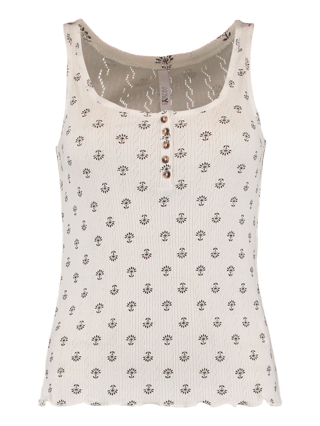 Sommerliches Top mit gekräuseltem Saum und Knopfdetails.