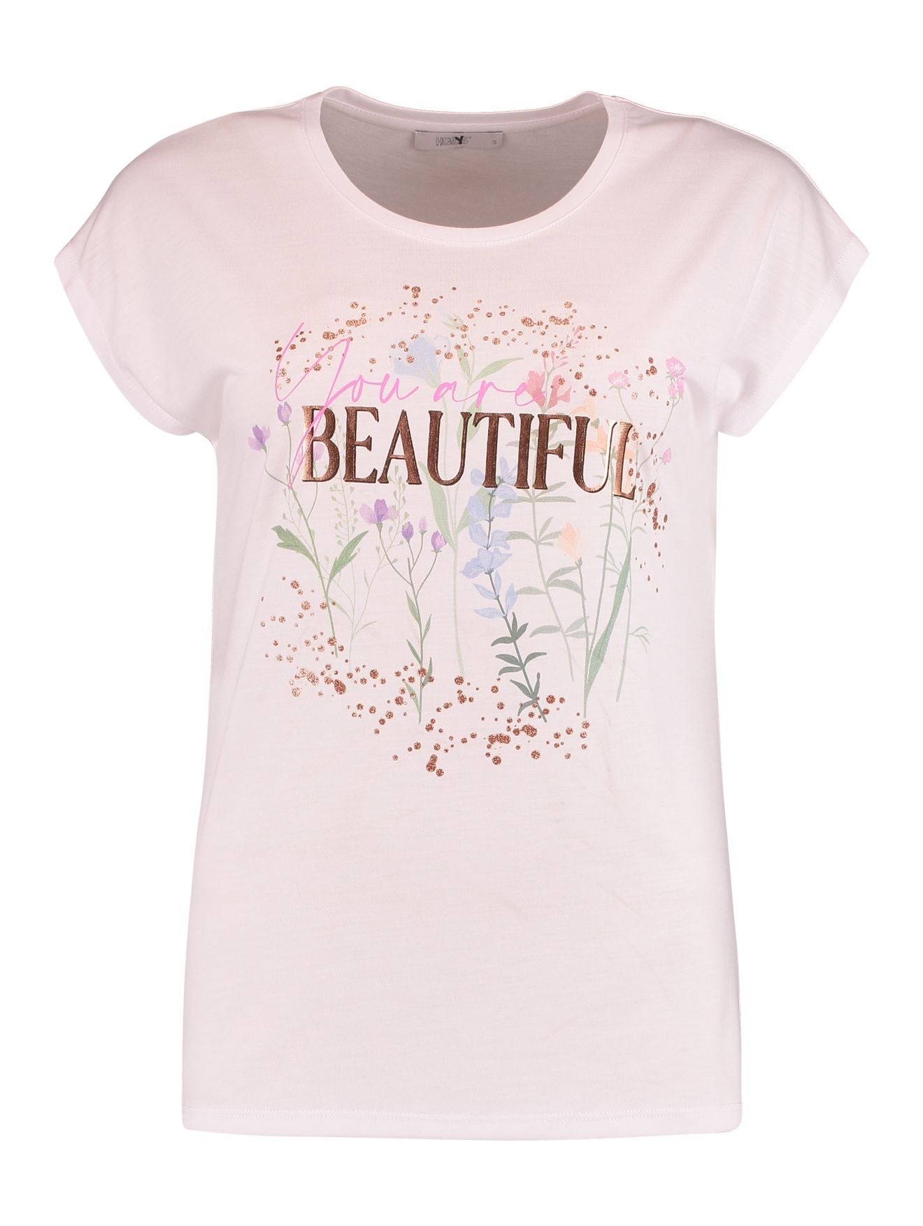 Kurzarm T-Shirt mit Druck "Beautiful" und Rundhalsausschnitt.