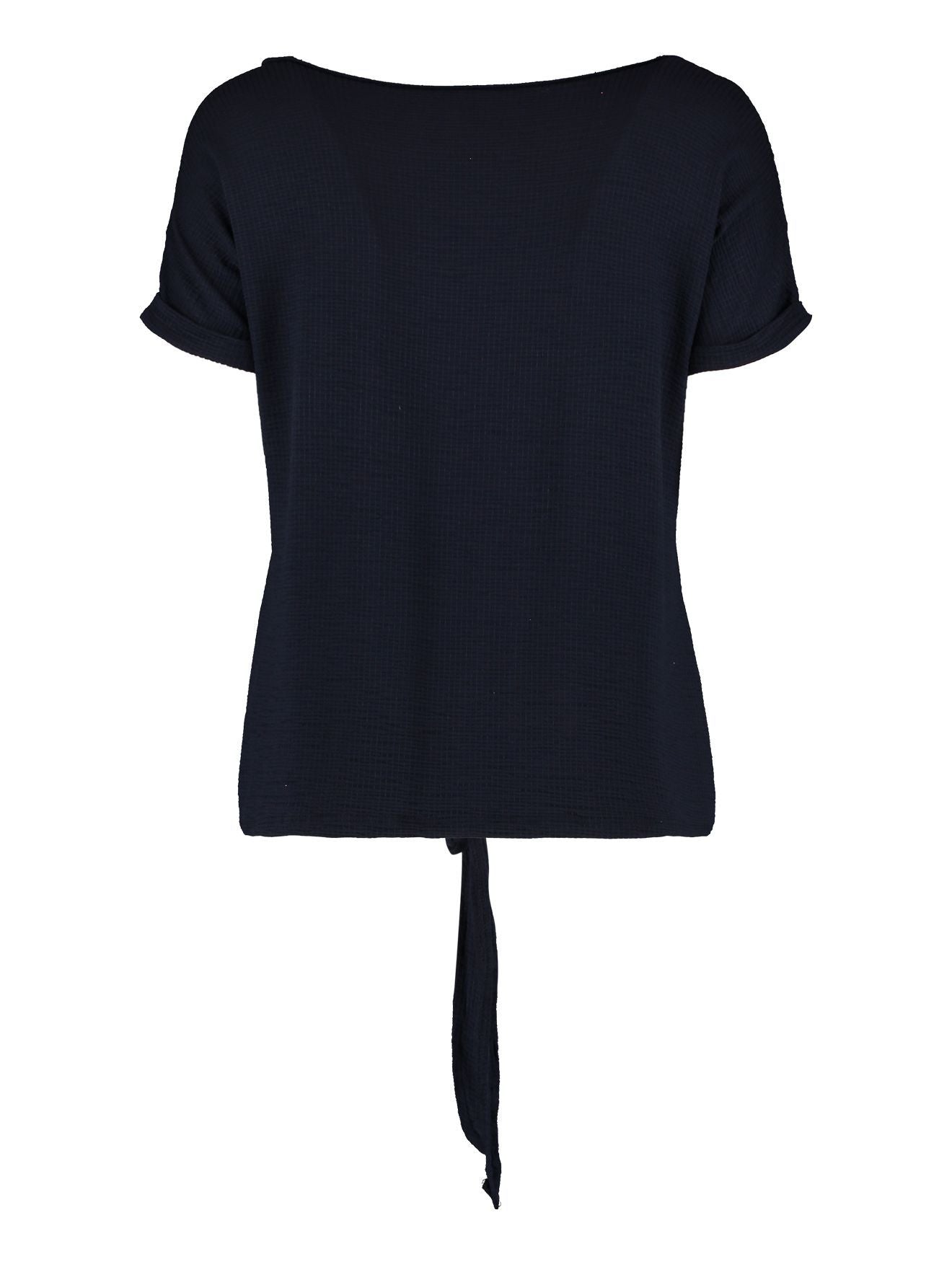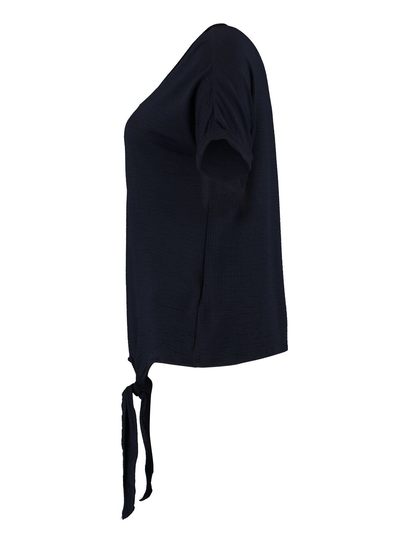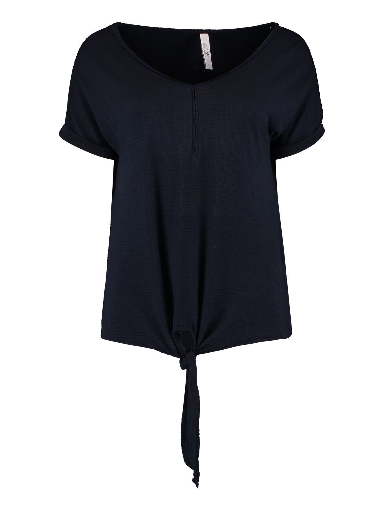 Sommerliches Shirt mit V-Ausschnitt und Knotendetail in der vorderen Mitte.