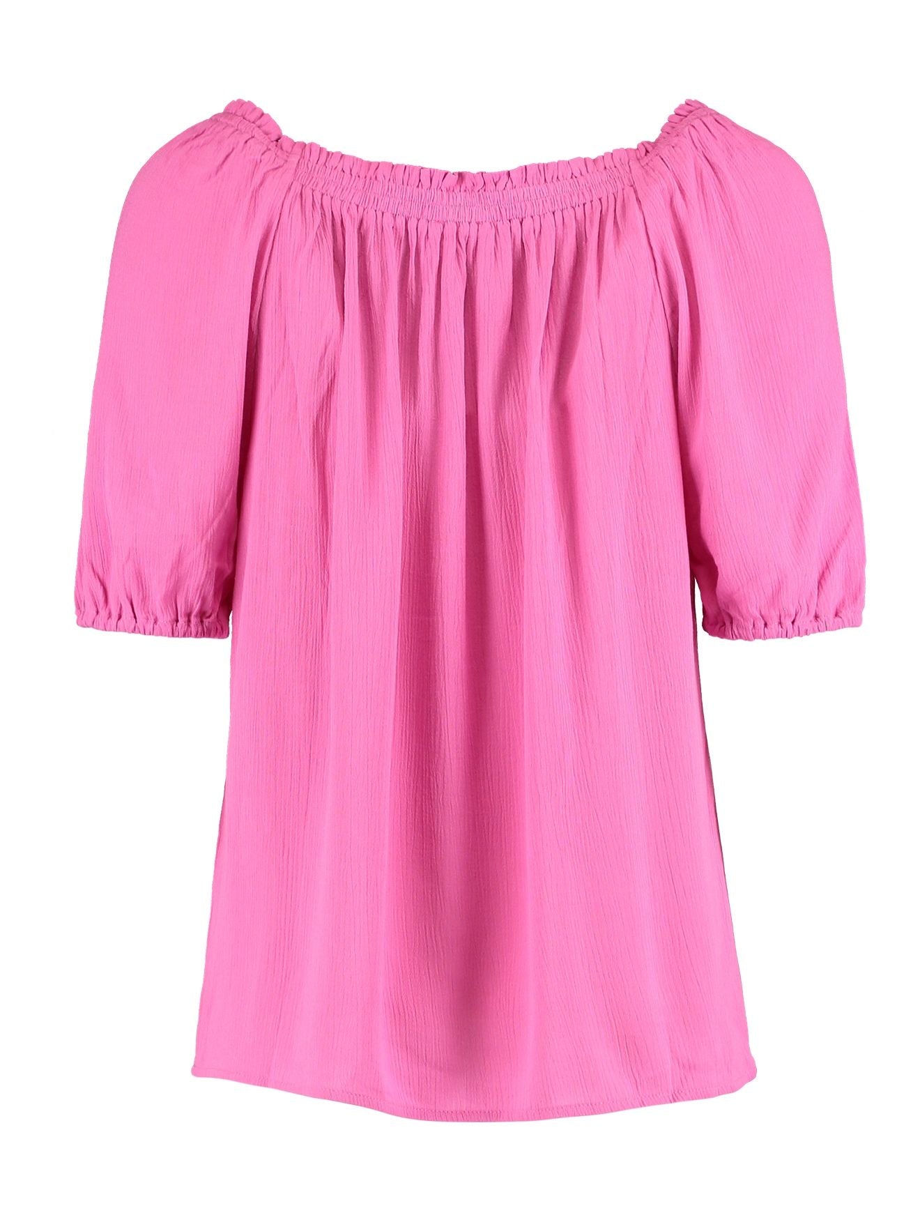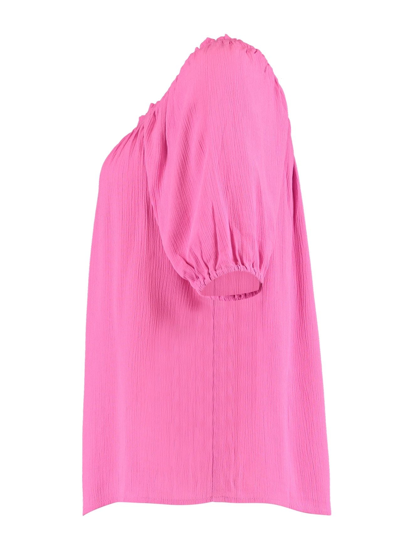 Leichtes sommerliches Oberteil mit Rundhalsausschnitt und Ärmeln mit Gummizug am Saum.
