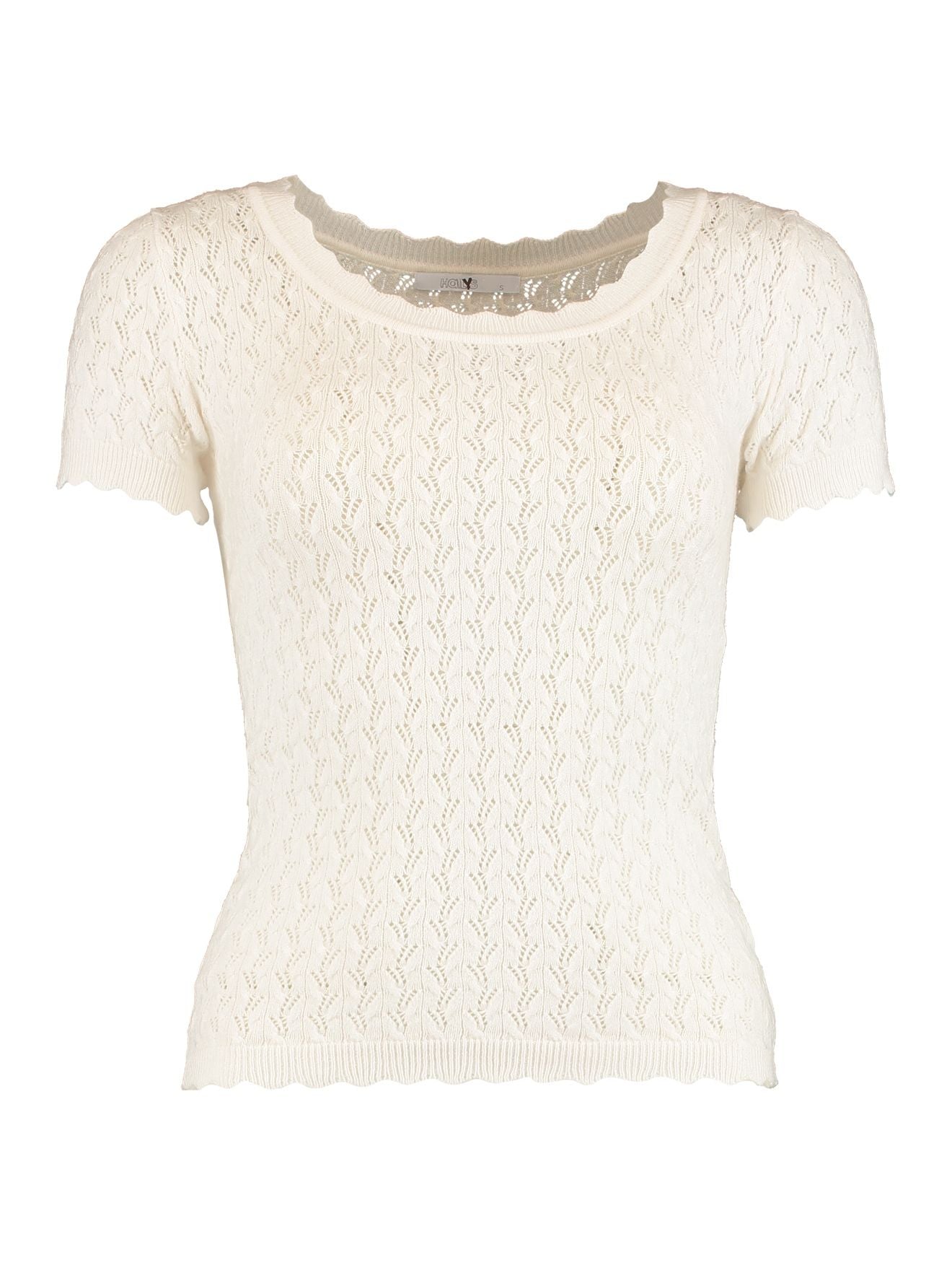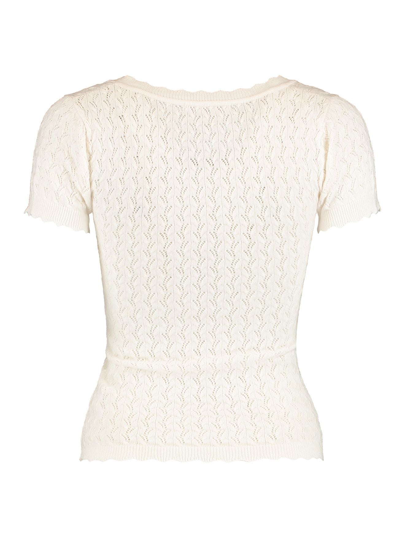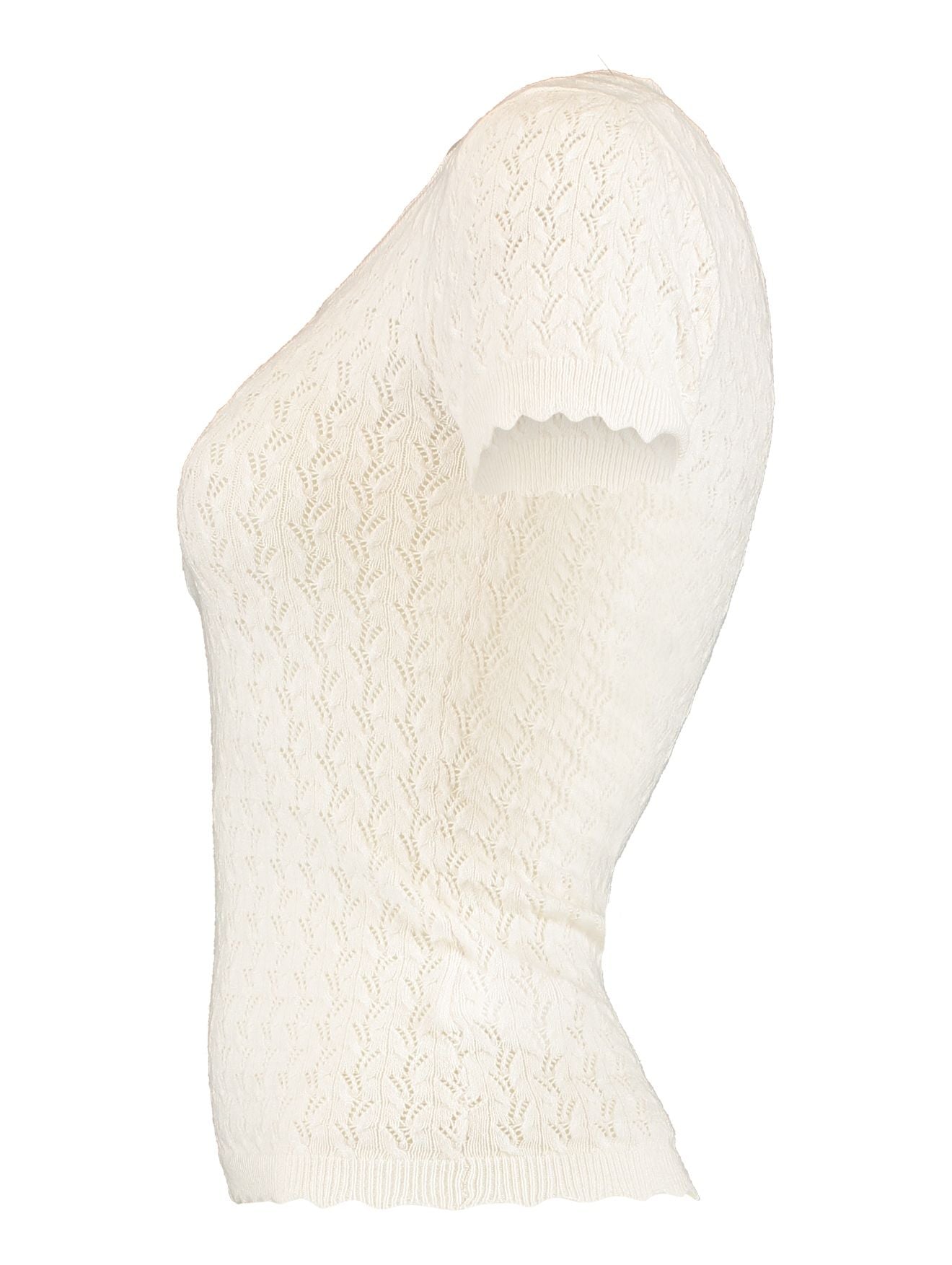 Damen-T-Shirt mit filigranem Strickmuster & welligem Bund – Zart & Bequem