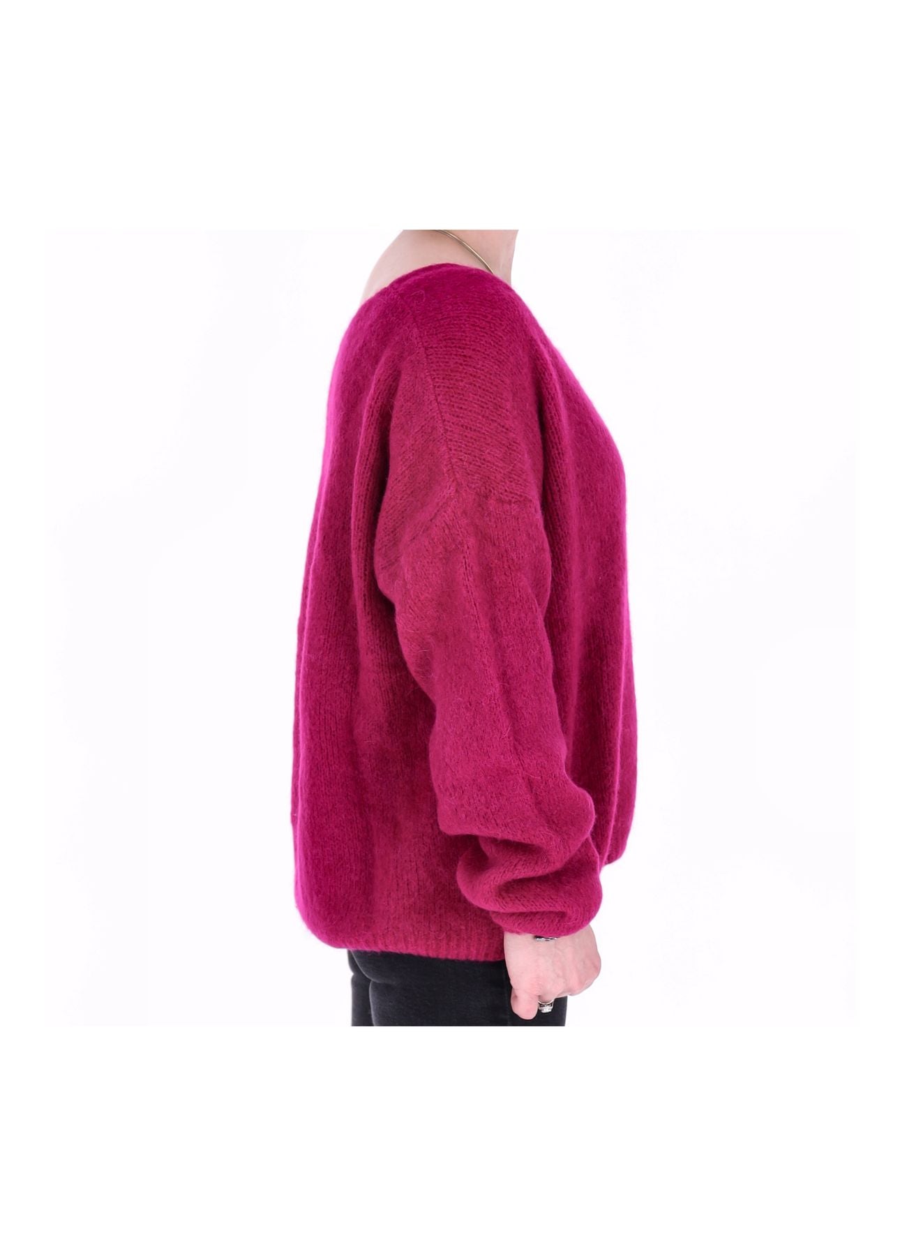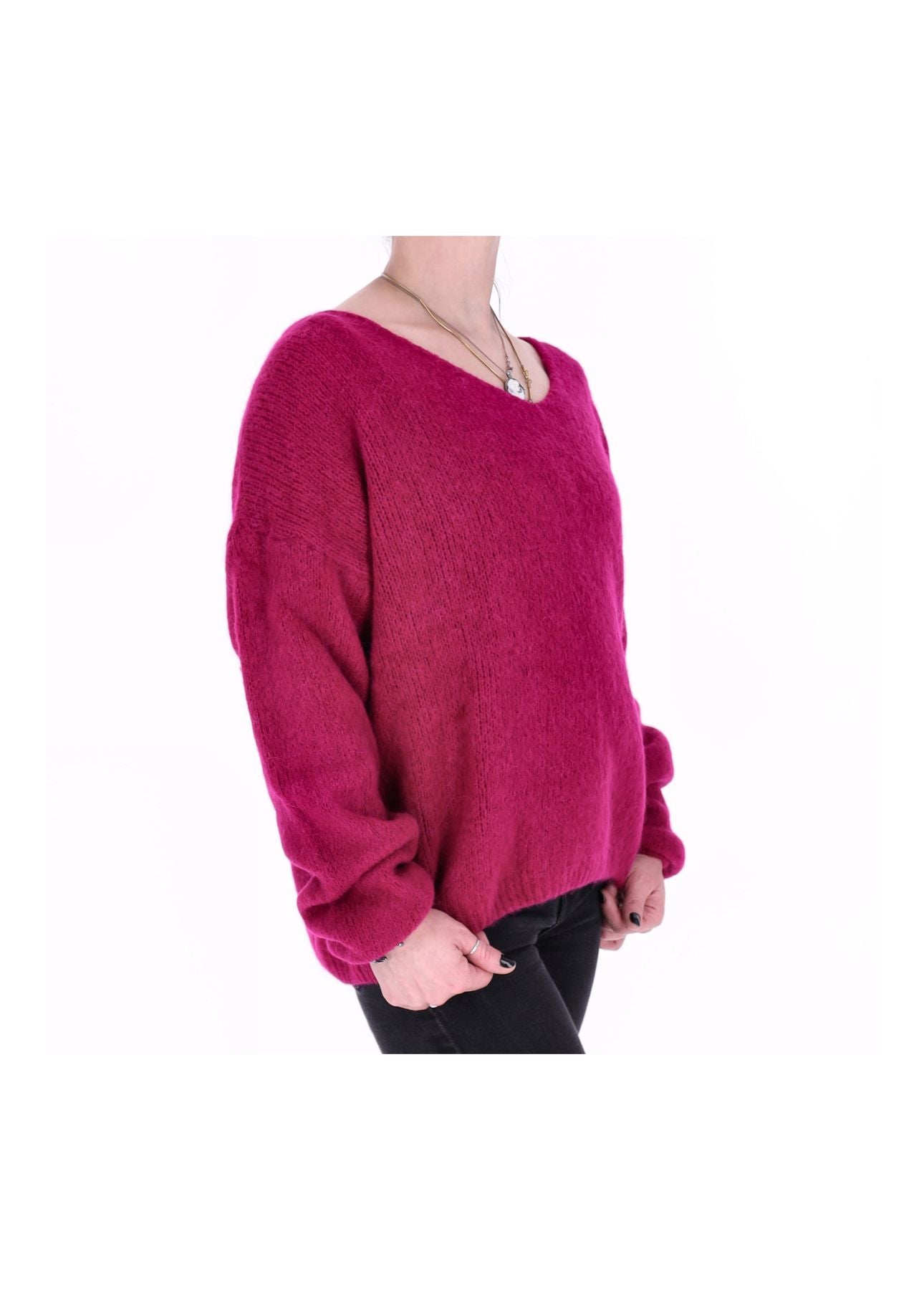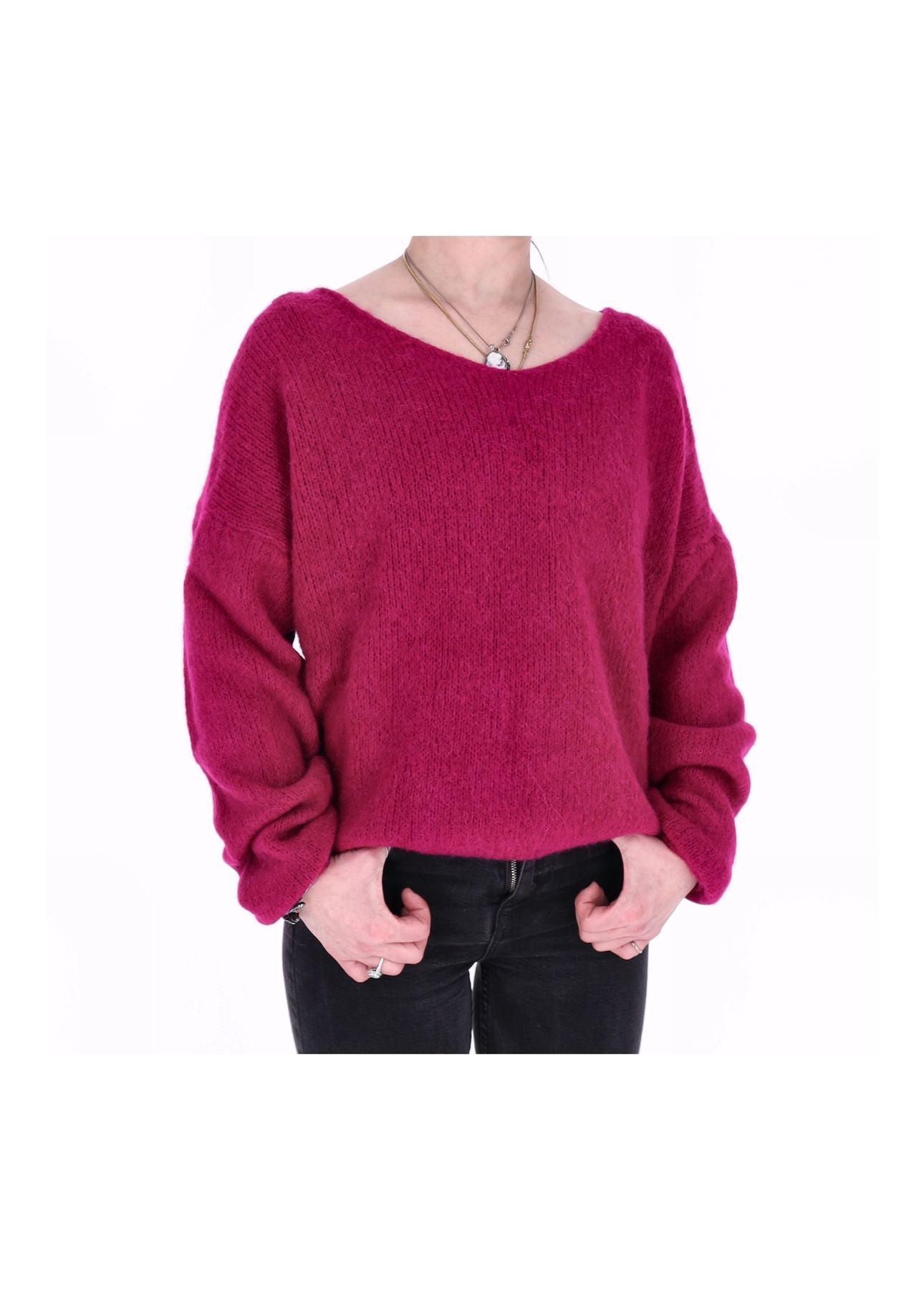 Mit diesem trendstarken Pullover setzt du ein echtes Fashion-Statement! Die intensive Magenta- bzw. Pinknuance zieht alle Blicke auf sich und verleiht deinem Look sofort Frische, Energie und feminine Ausstrahlung.