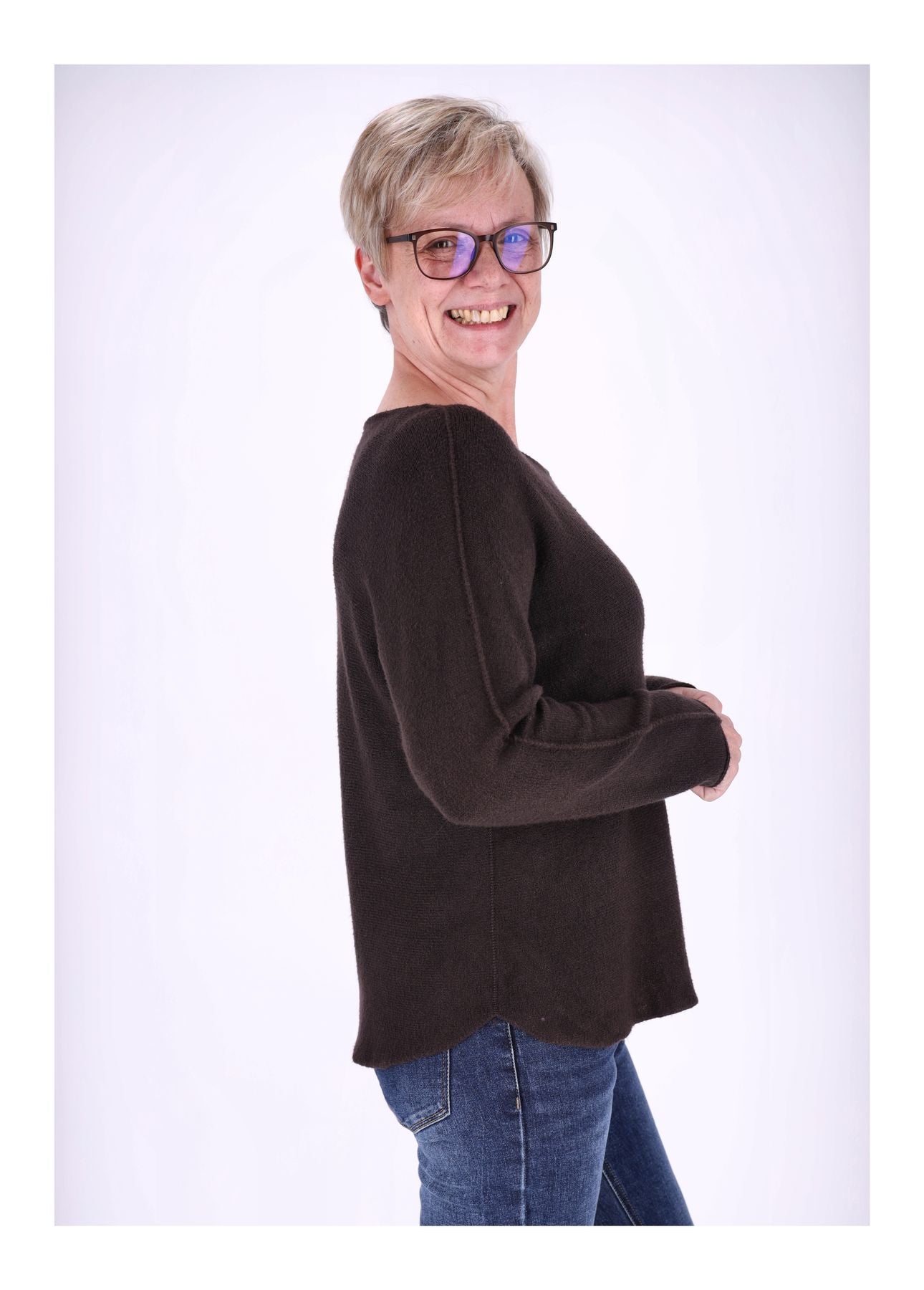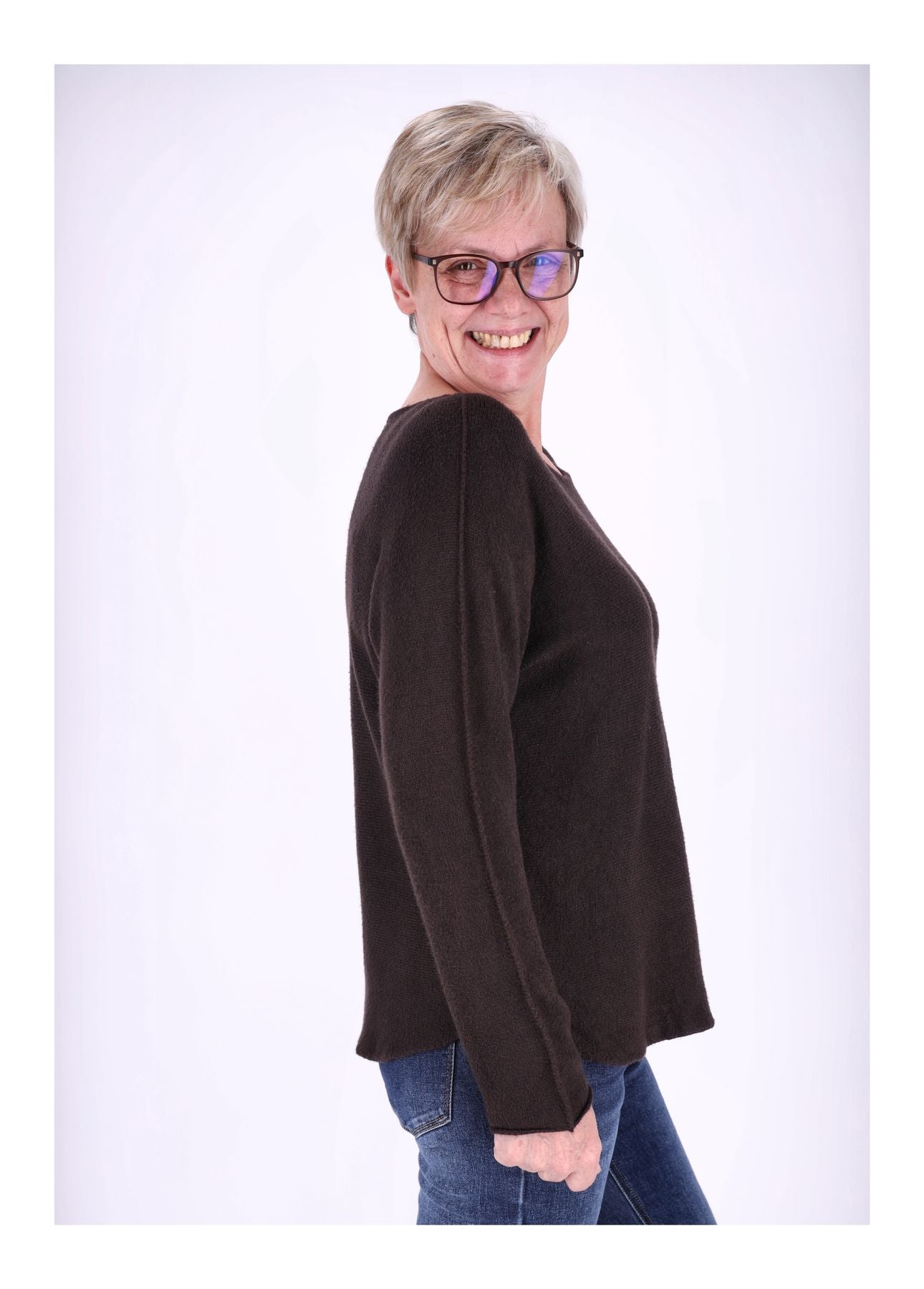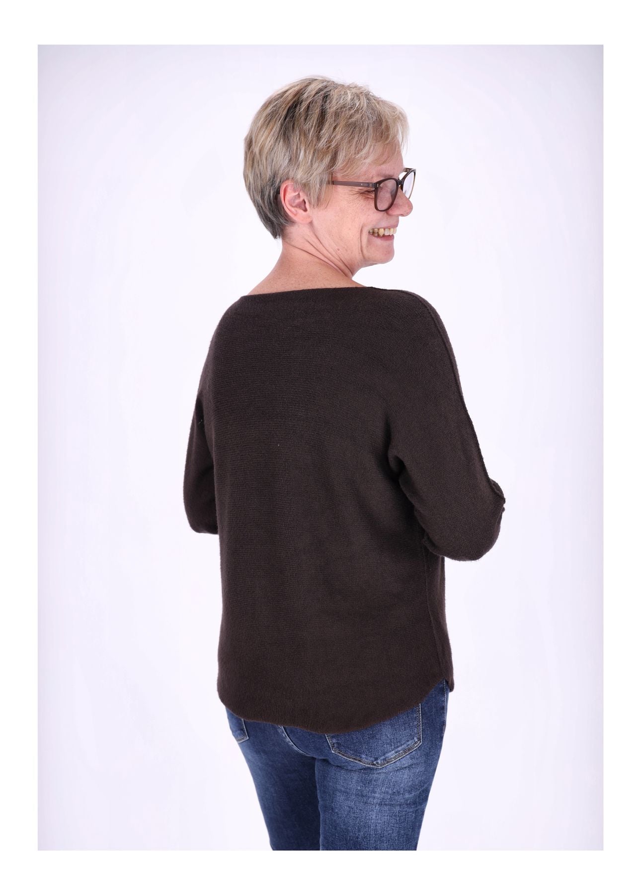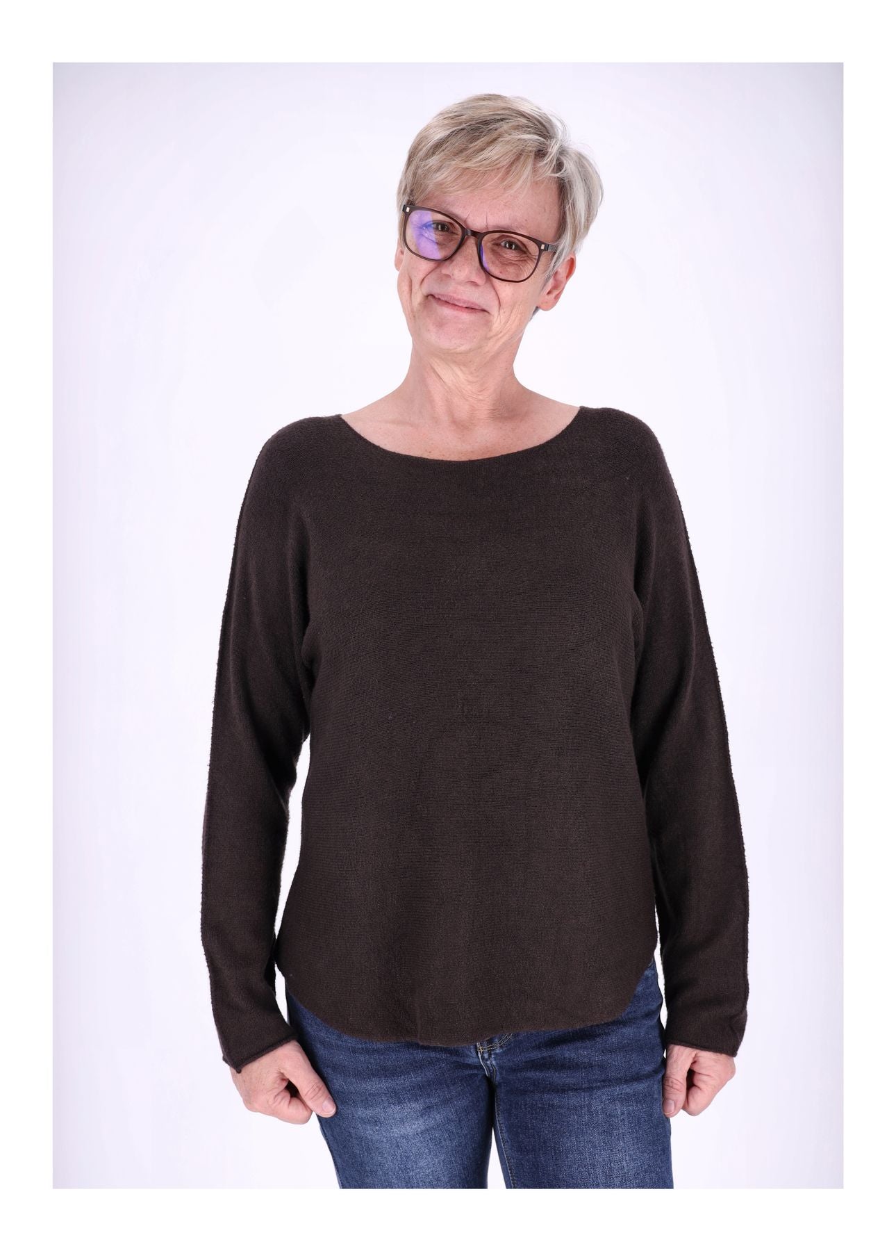 Styling-Tipp: Tragen Sie den Pullover lässig zu einer Jeans, und darunter bei kälteren Tagen ein Basic Top, um zusätzlichen Komfort und Wärme zu genießen – so bleibt der Look stylisch und praktisch zugleich.