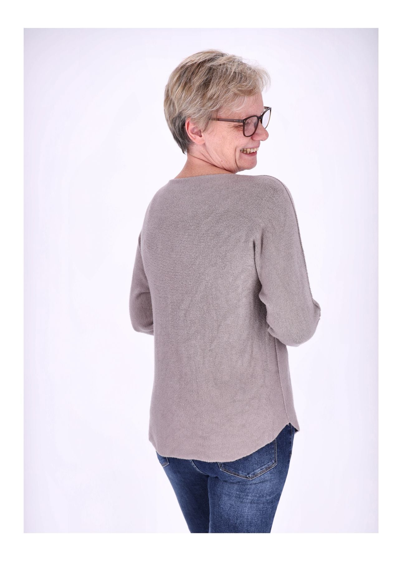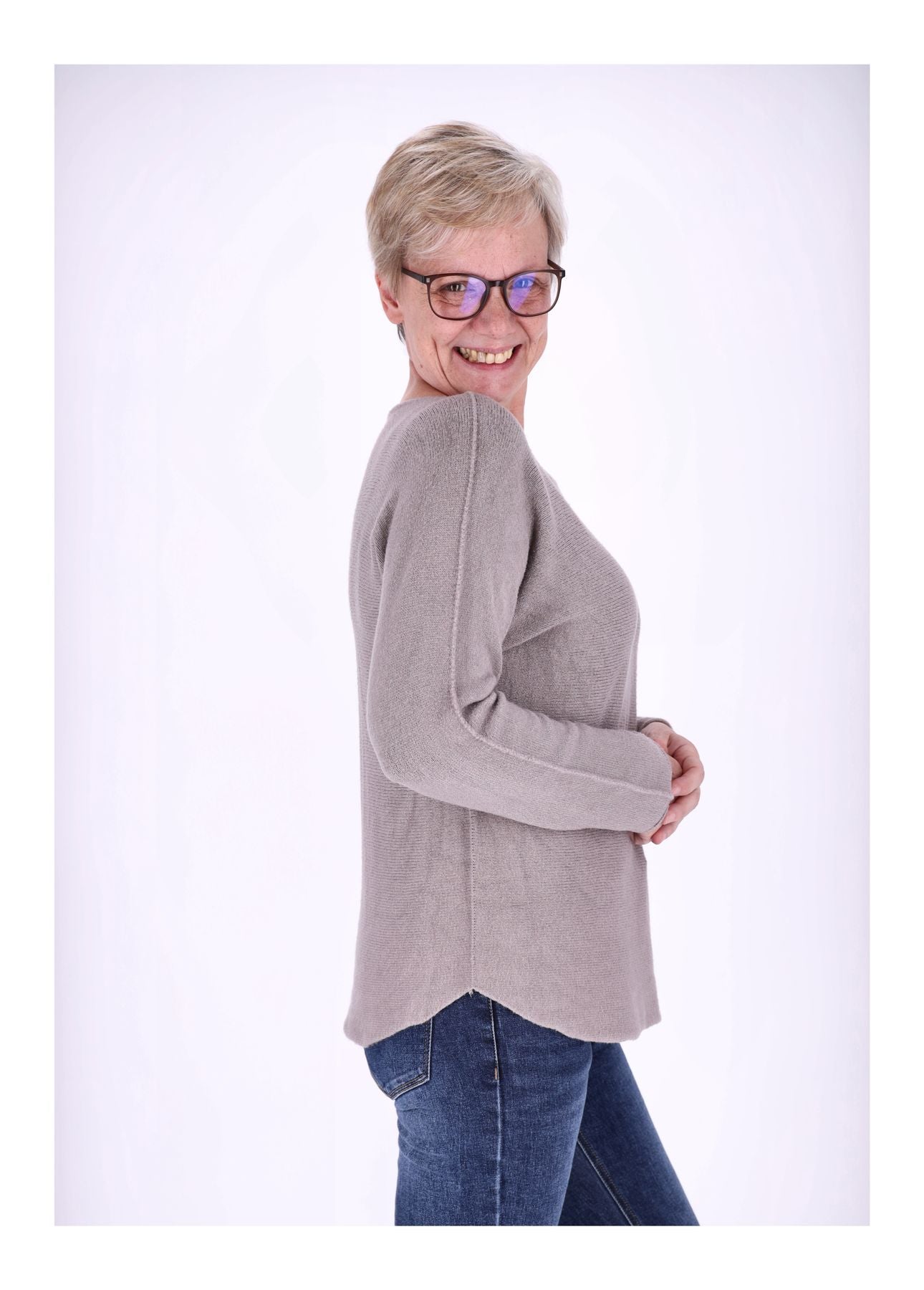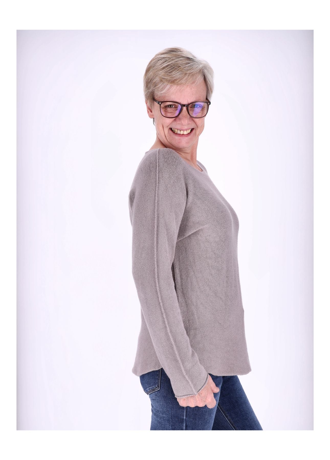 Styling-Tipp: Tragen Sie den Pullover lässig zu einer Jeans, und darunter bei kälteren Tagen ein Basic Top, um zusätzlichen Komfort und Wärme zu genießen – so bleibt der Look stylisch und praktisch zugleich.