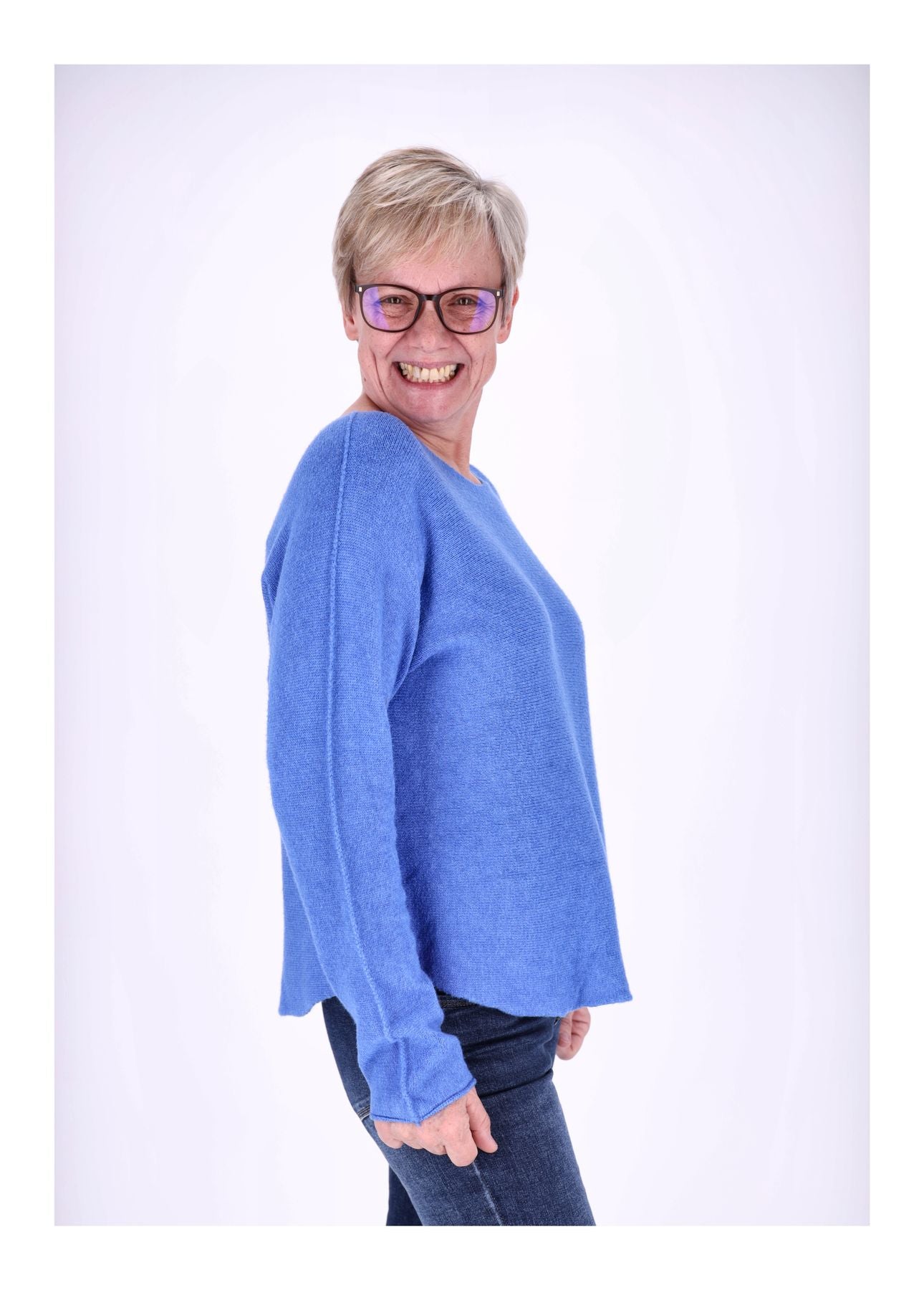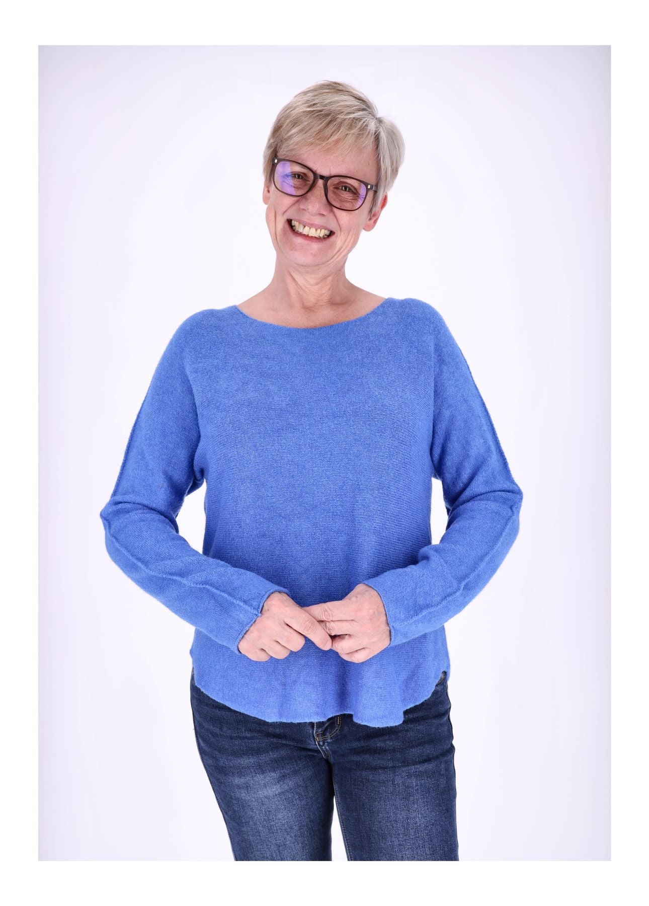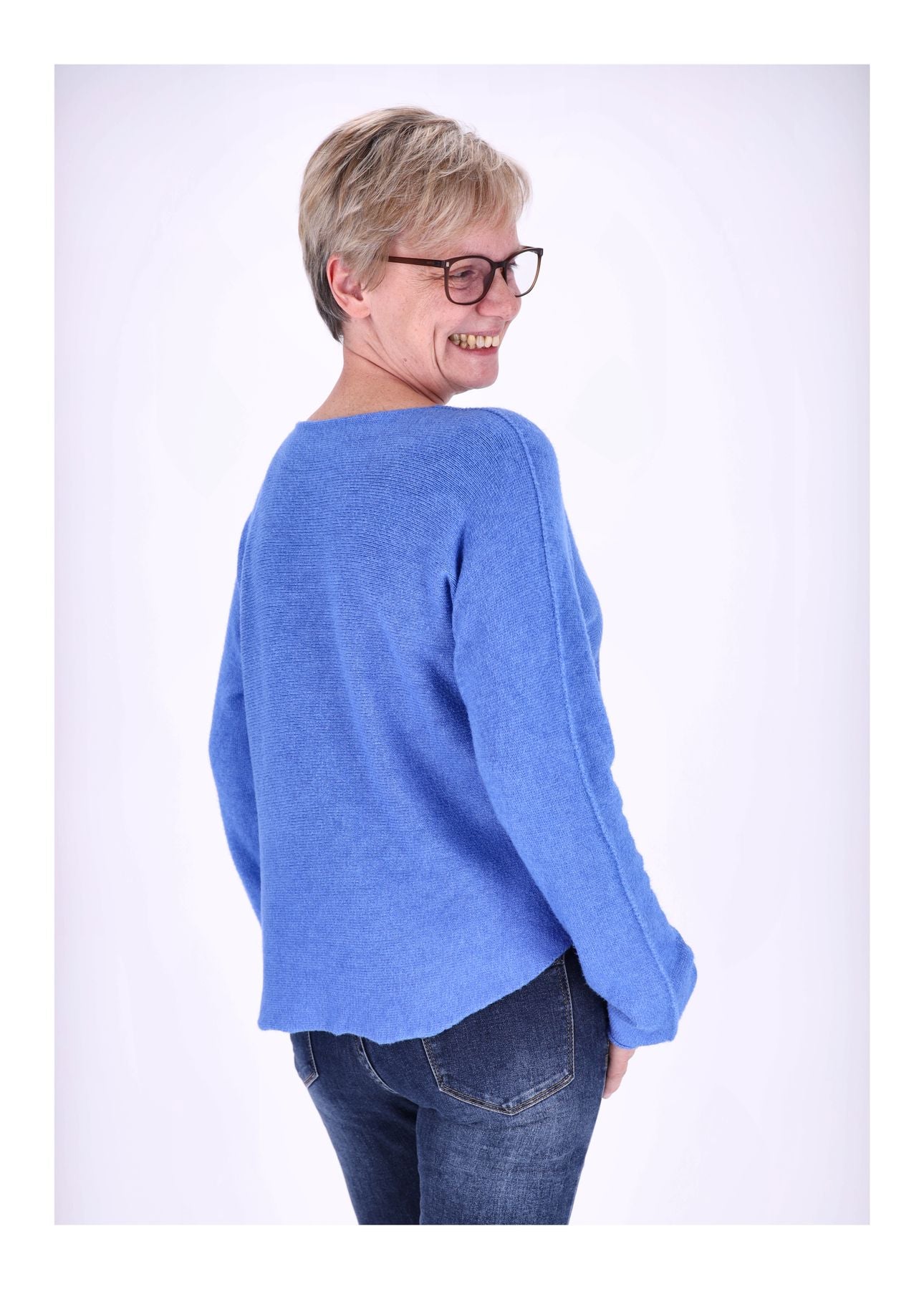 Styling-Tipp: Tragen Sie den Pullover lässig zu einer Jeans, und darunter bei kälteren Tagen ein Basic Top, um zusätzlichen Komfort und Wärme zu genießen – so bleibt der Look stylisch und praktisch zugleich.
