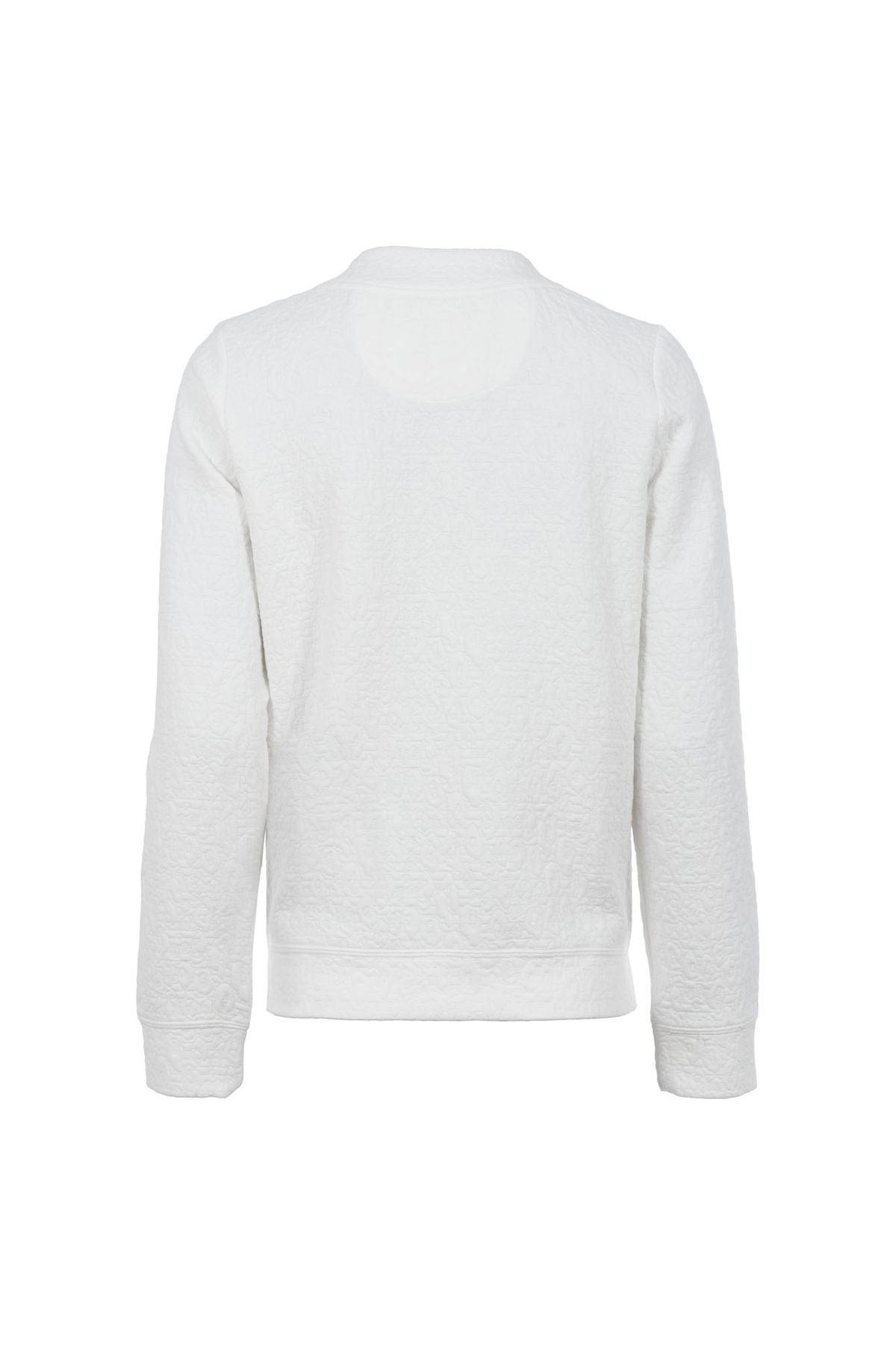 Sweatpullover in Musteroptik mit leichtem Stehkragen. Ein echter Hingucker sind die besondere Knopflösung an der linken Schulter und die Tapes entlang der Seitennaht.