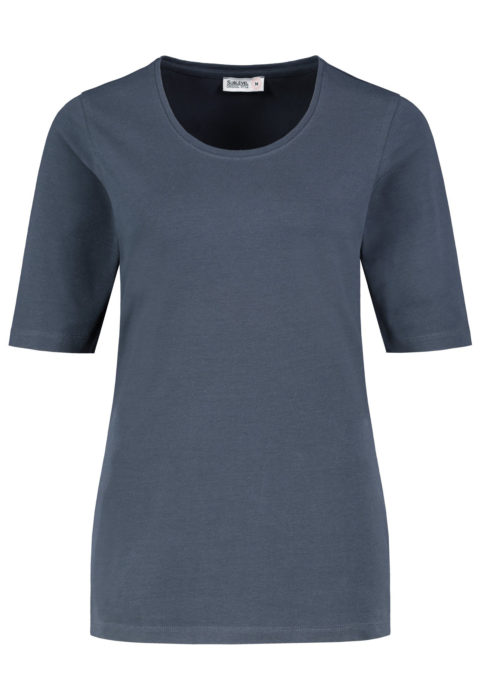 Damen T-Shirt, kurzarm, Basic, Rundhals mit Blende, Necktape, Doppelsteppungen, 1/2 Arm