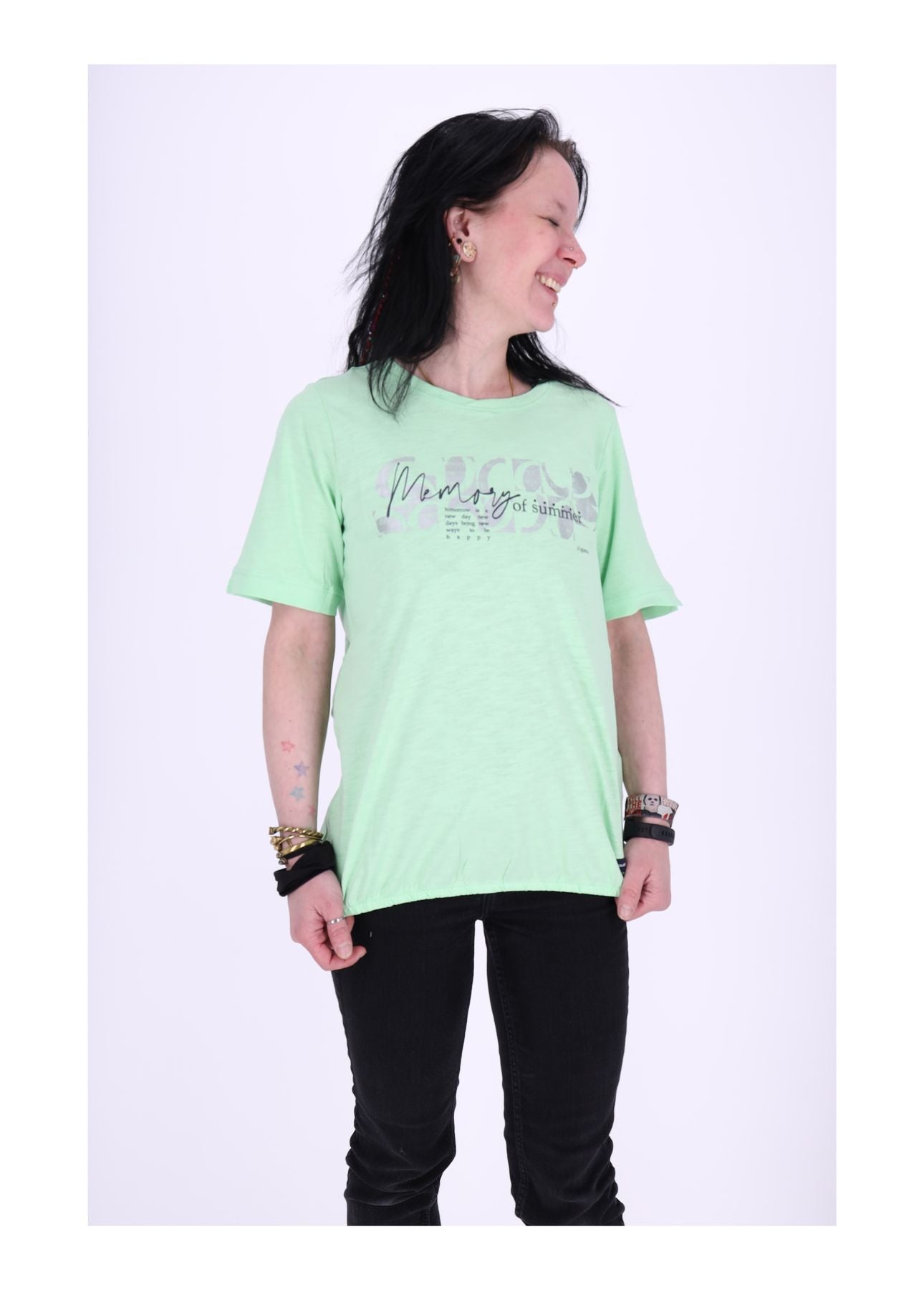 Damen T-Shirt mit Gummizug-Saum & Silber-Frontprint – Bequem & Stylisch