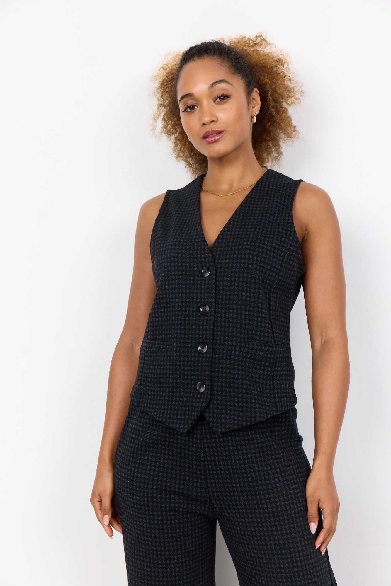 SC-Isobel 3 ist eine coole Weste aus einer schönen Mischung aus Baumwolle und LENZING™ ECOVERO™ Viskose. Die Weste hat einen V-Ausschnitt, einen Knopfverschluss, eine taillierte Passform und einen Karodruck. Kombinieren Sie sie mit unserem passenden Rock und ein paar Loafers für einen