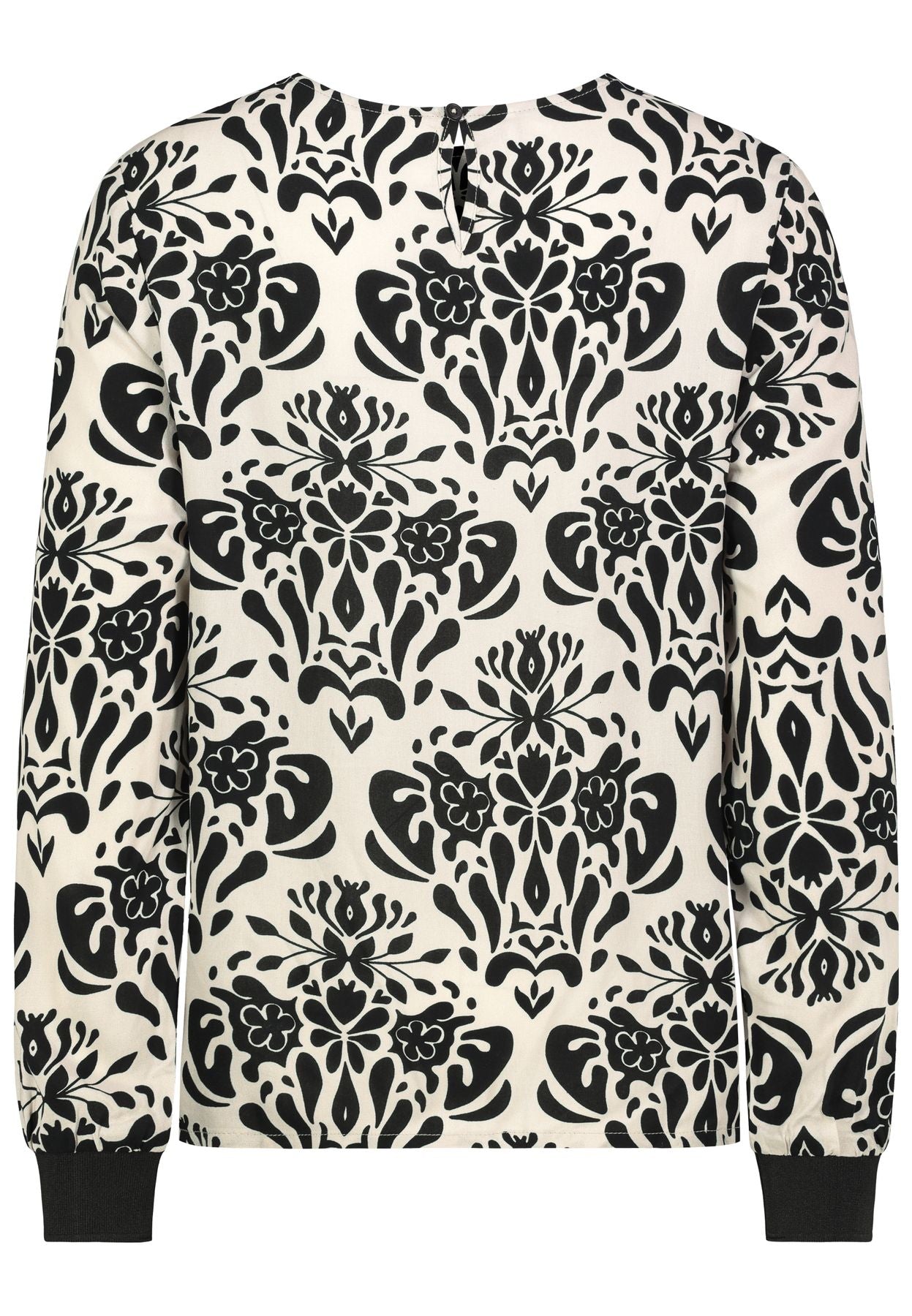 DOB Bluse, langarm, Rundhals mit Schlitz hinten, Rippbündchen,allover bedruckt