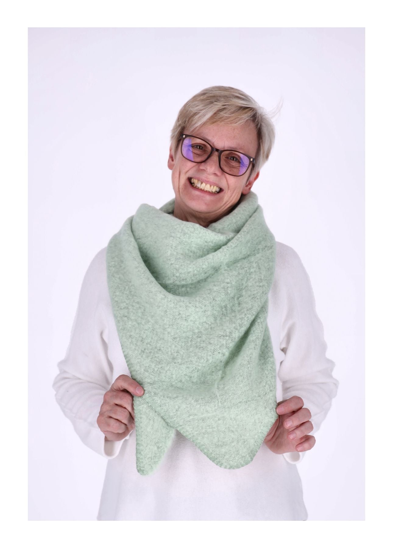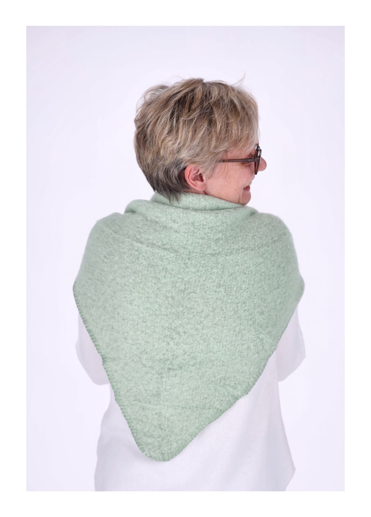 Das Tuch besticht durch seine zarte, melierte Farbgebung, die jedem Look sofort eine elegante und moderne Note verleiht. Dank der dreieckigen Form lässt es sich auf vielfältige Weise tragen – lässig um die Schultern gelegt, locker um den Hals geschlungen oder sogar als modisches Cape über der Jacke.