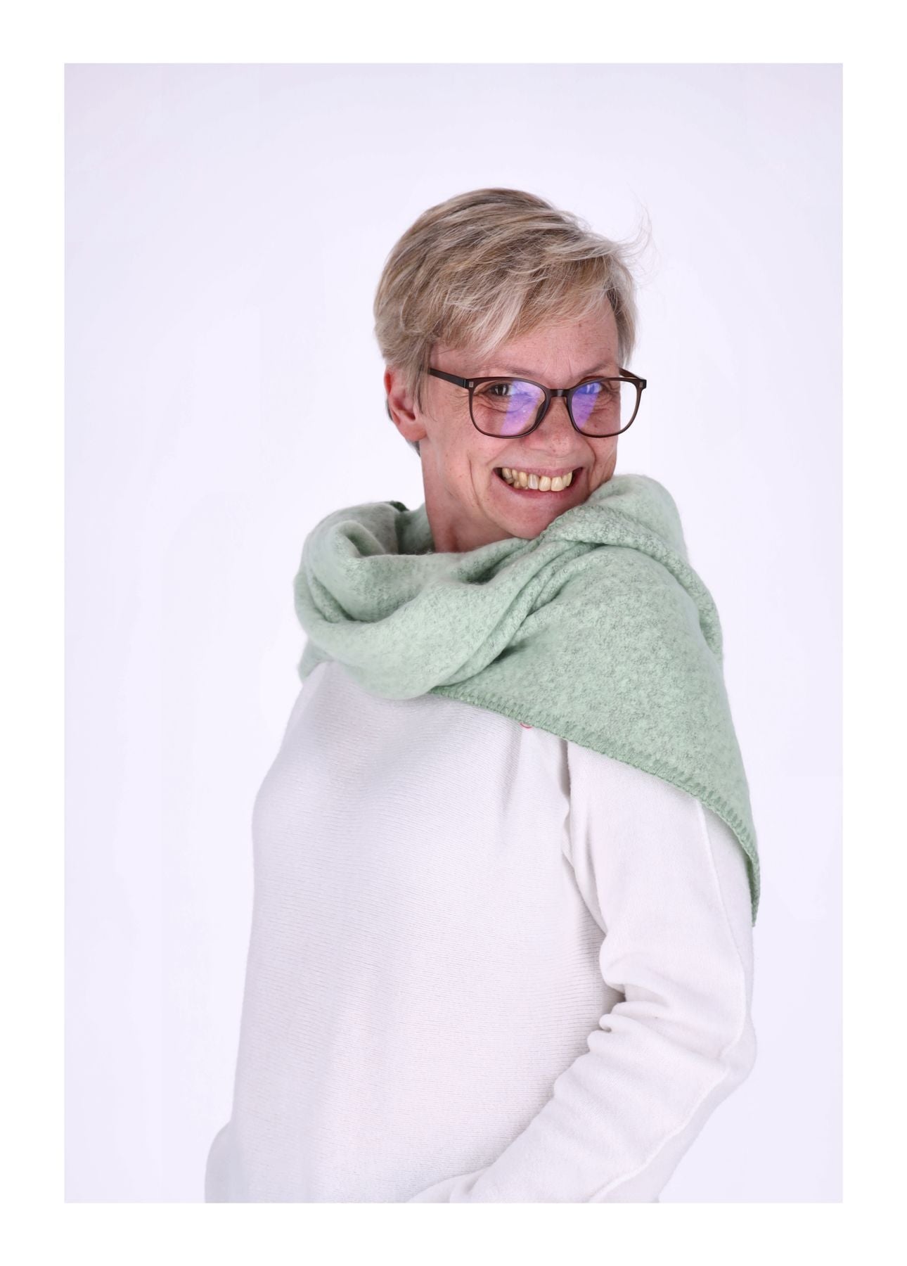 Vielseitig tragbar – Hals, Schultern oder als Cape