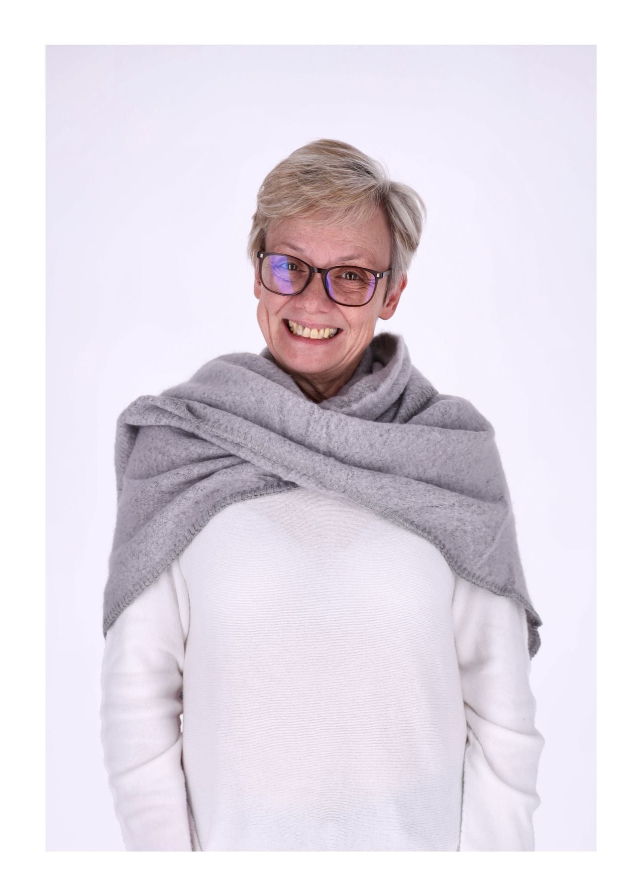 Vielseitig tragbar – Hals, Schultern oder als Cape