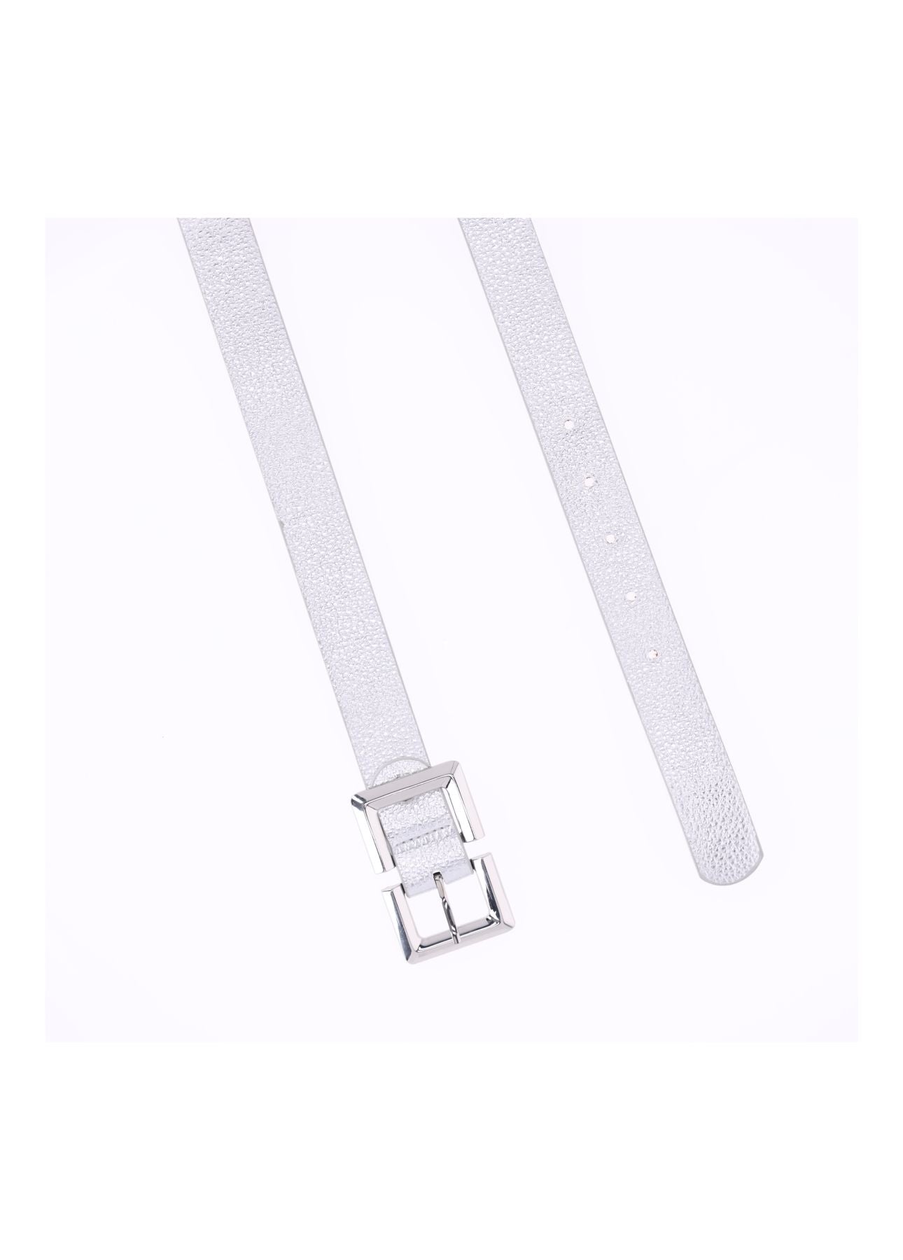Dieser Gürtel mit silberner Optik und eleganter Schnalle ist das Accessoire, das deinem Outfit den letzten Schliff verleiht. Außen aus hochwertigem Polyurethan gefertigt und innen mit echtem Leder verstärkt, kombiniert er modernes Design mit langlebiger Qualität.