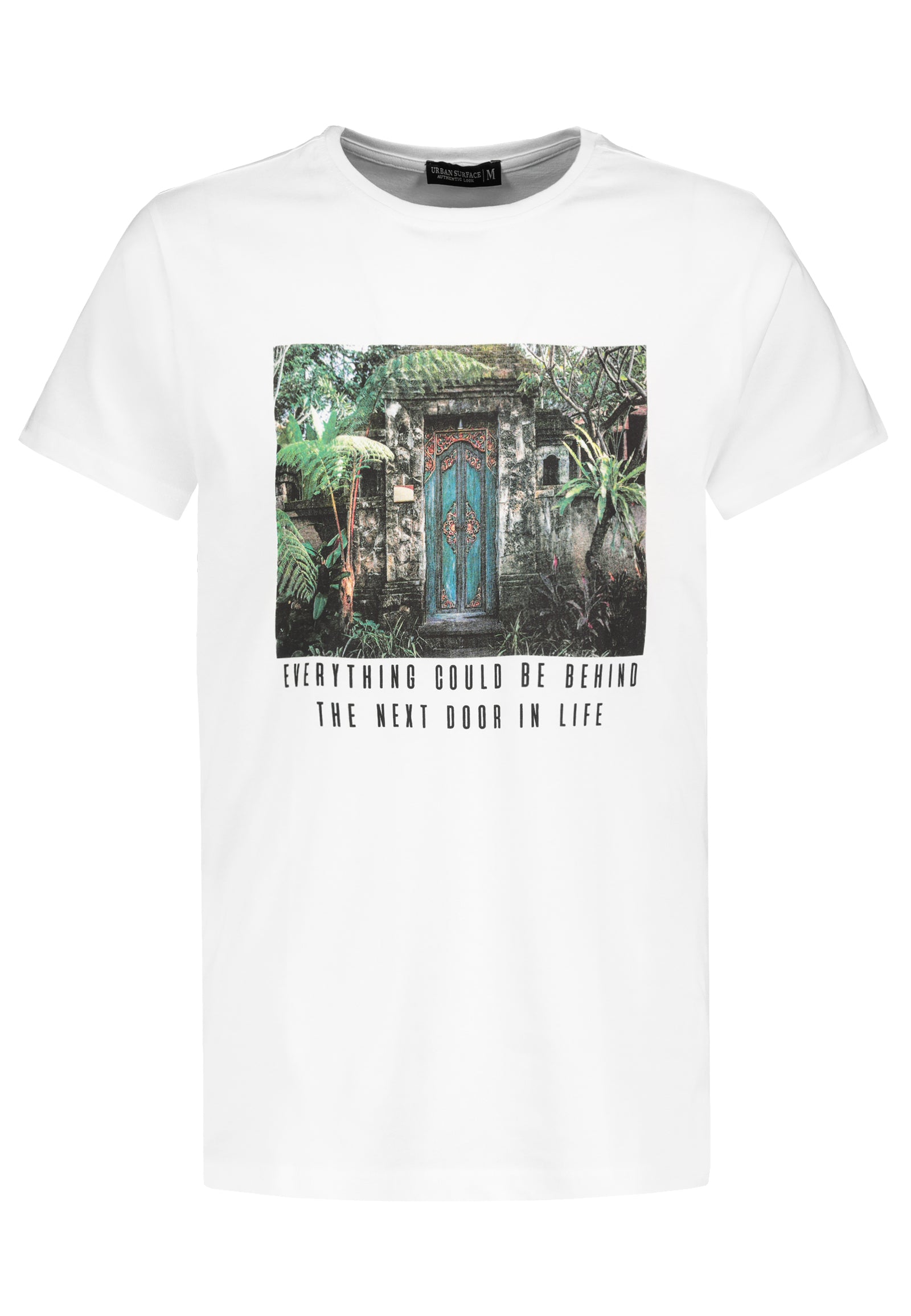 Shirt, kurzarm, Rundhals mit Blende,Photo Druckbehind next door auf dem Vorderteil