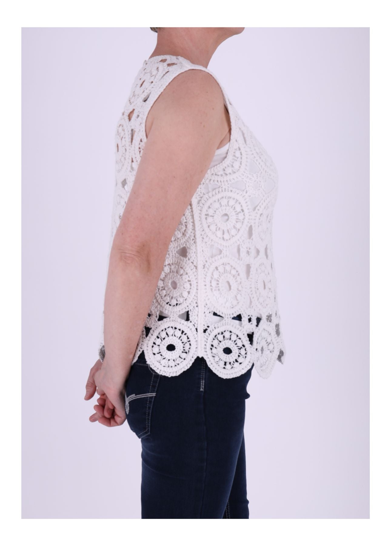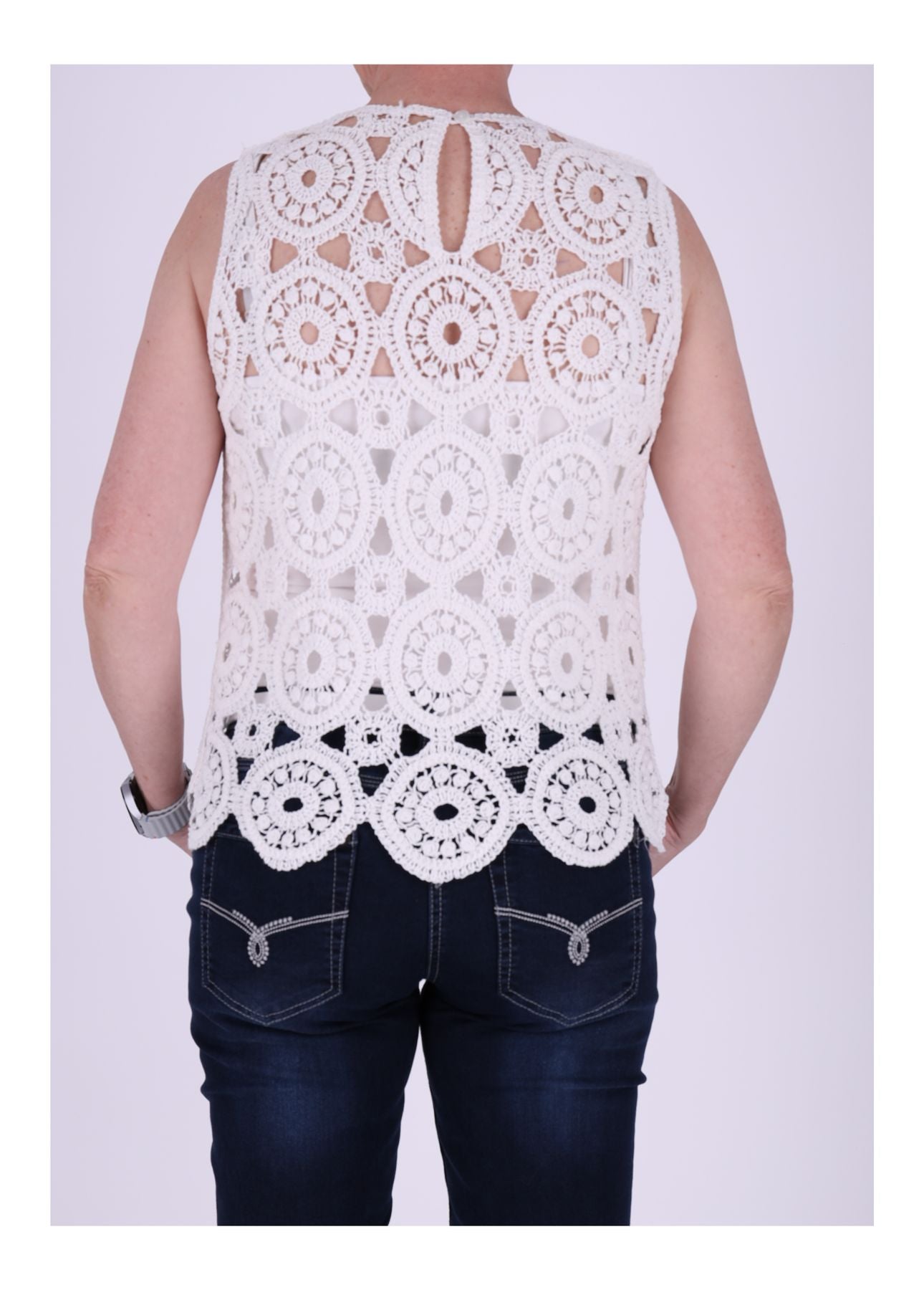 Dieses Damen Boho-Top ist wie gemacht für warme Tage und stilvolle Auftritte! Das gehäkelte Rundmuster vorn sorgt für einen kunstvollen, femininen Look mit handwerklichem Charme. Die feine Knopfschließe am Rücken setzt einen eleganten Akzent und sorgt ganz nebenbei für eine schöne, bequeme Passform.