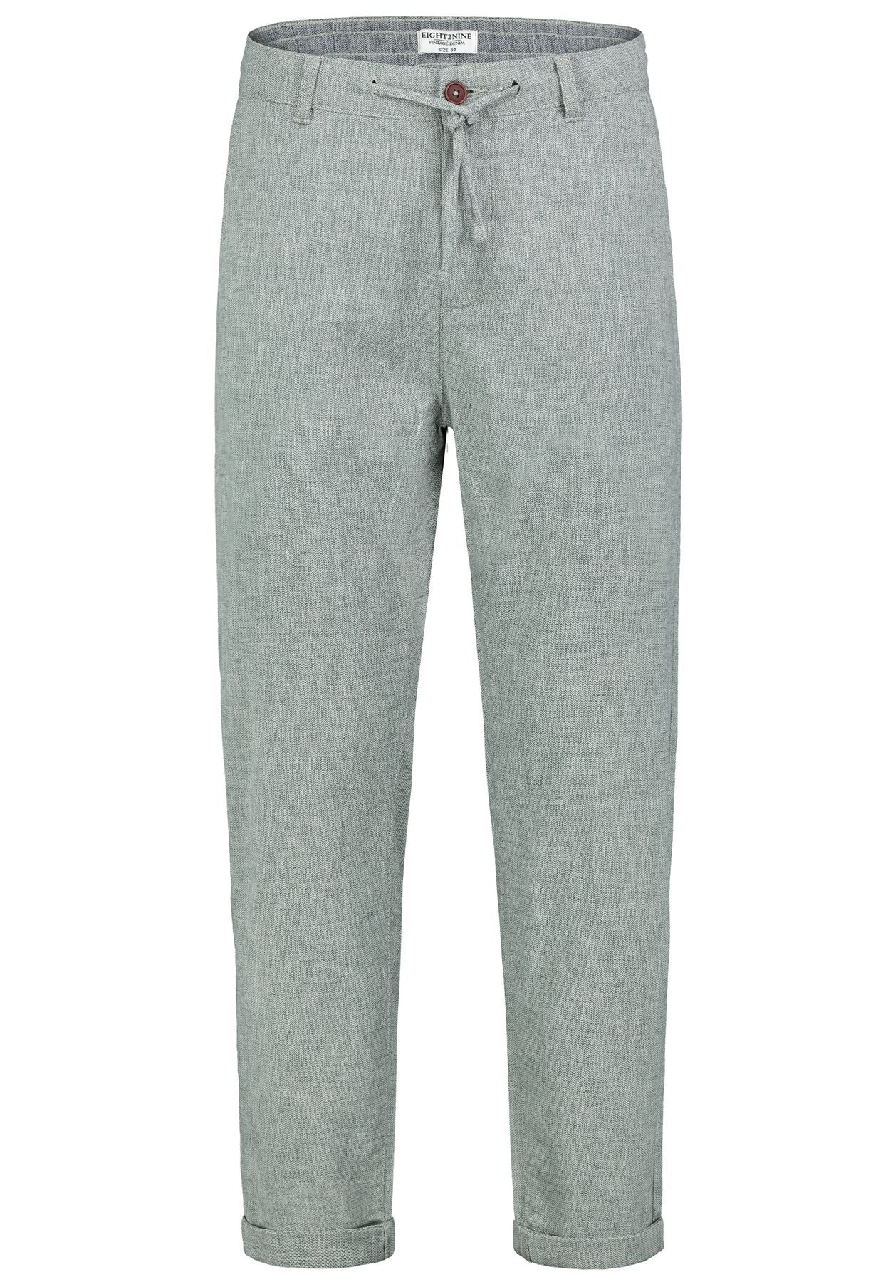 HAKA Struktur- Leinen Chino,weiteres Bein, Bund mit Kordel, Leistentasche hinten,schräge Tascheneingriffe, turn up
