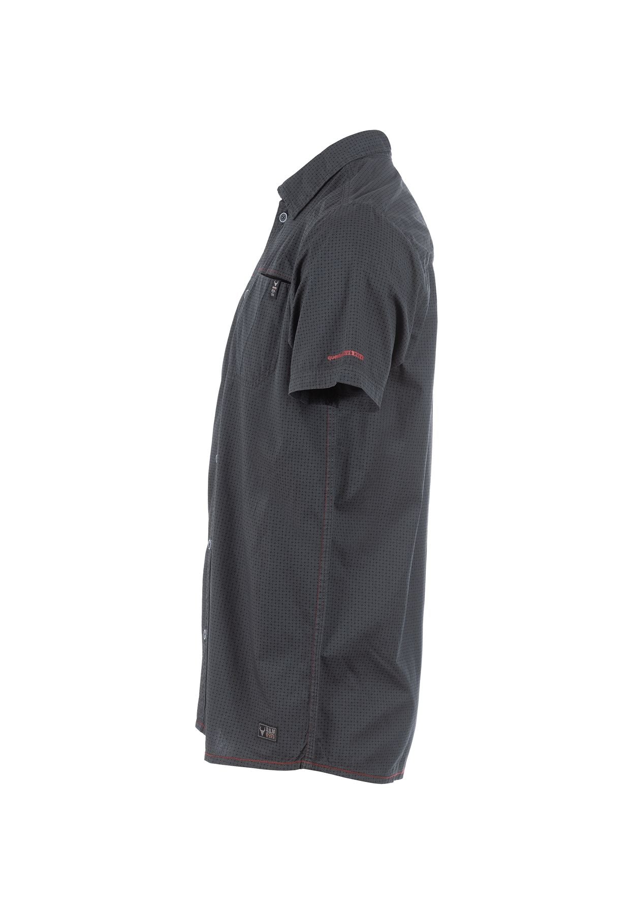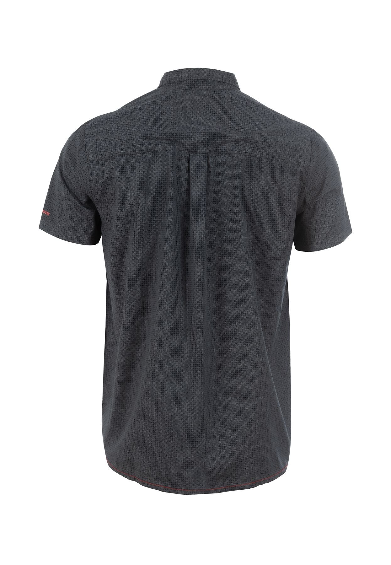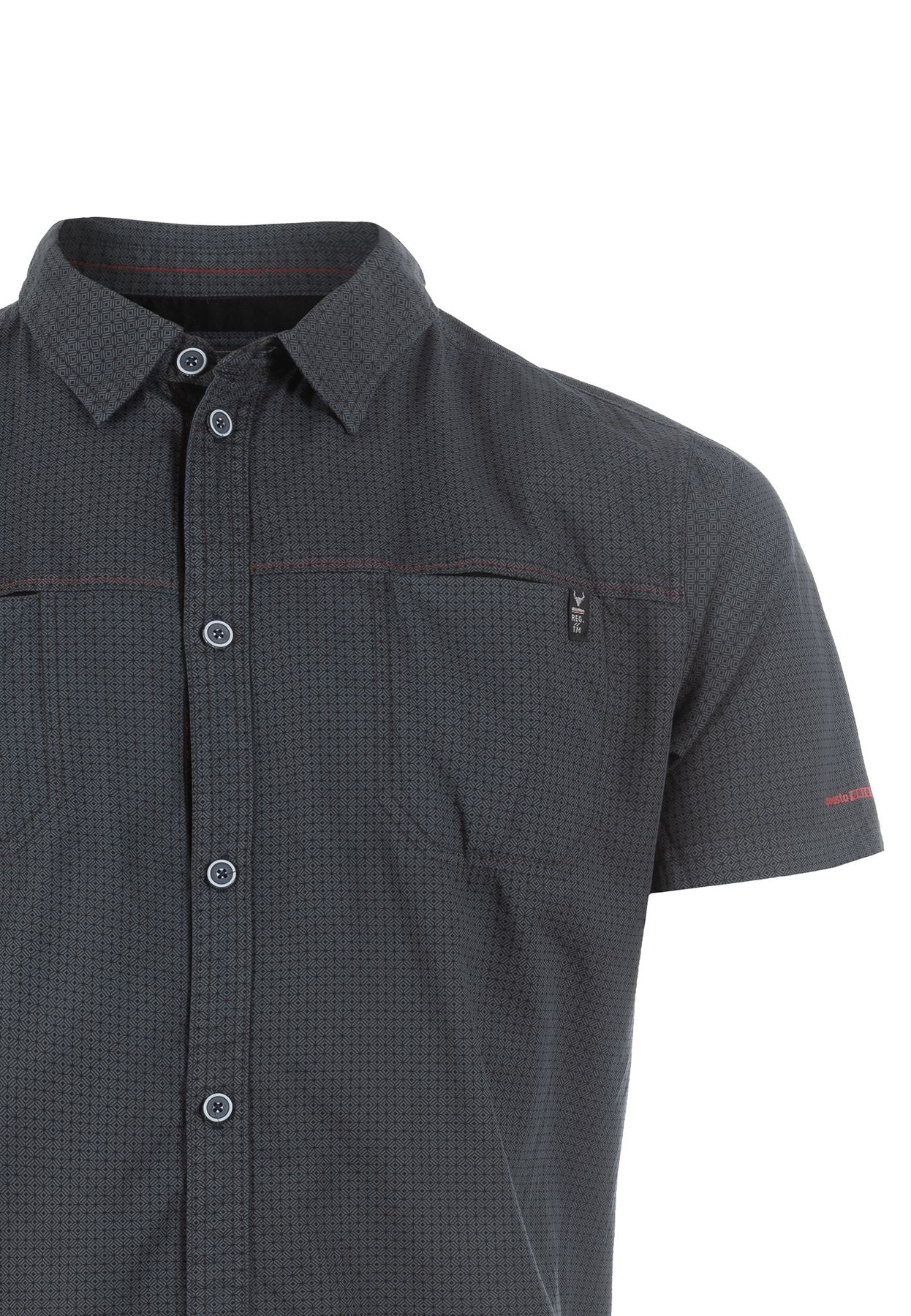 Kurzärmeliges Hemd mit tonalem Mikromuster. Außerdem hat das Hemd zwei dezente Brusttaschen und einen kleinen Print auf dem Ärmel
