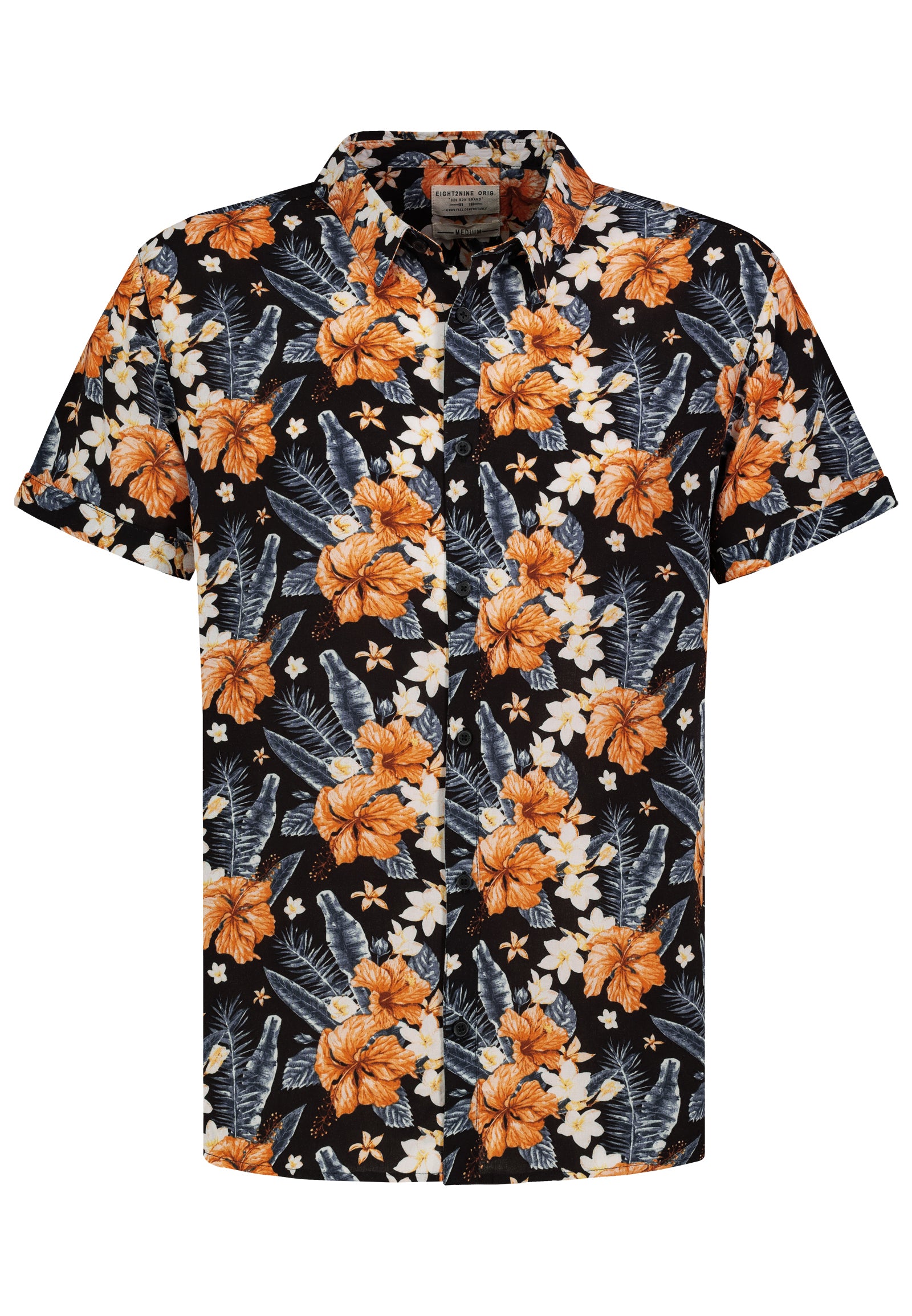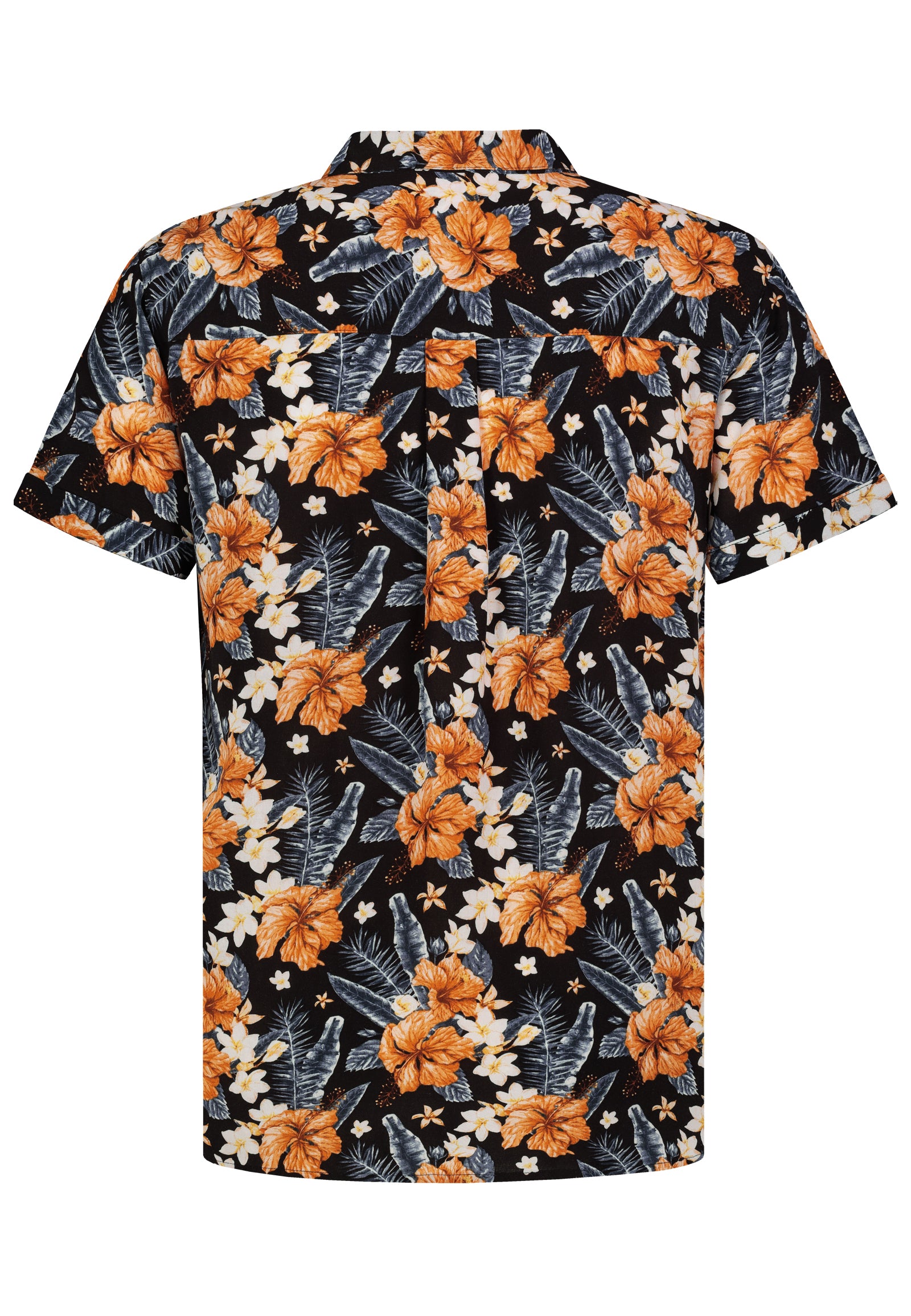 Herren Hemd, kurzarm mit Blende, Knopfleiste,Passe im Rückteil, Hemdkragen, Alloverdruck tropische Blumen