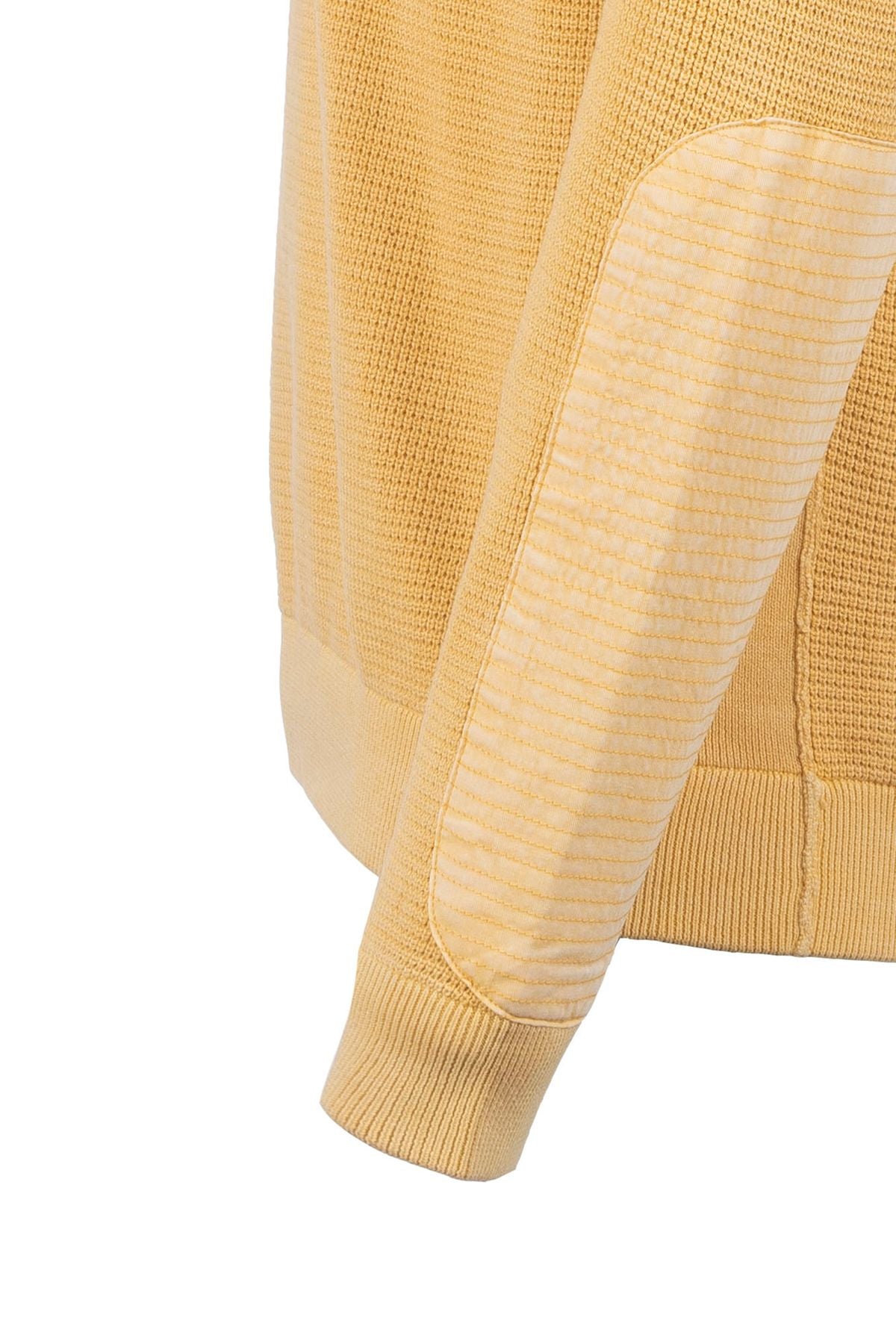 Leichter Strickpullover mit klassischem Rundhalsausschnitt. Webeinsätze an Schultern und Ärmeln sorgen für Struktur, während die aufgesetzte Brusttasche mit Print dem Look eine lässige Note verleiht.