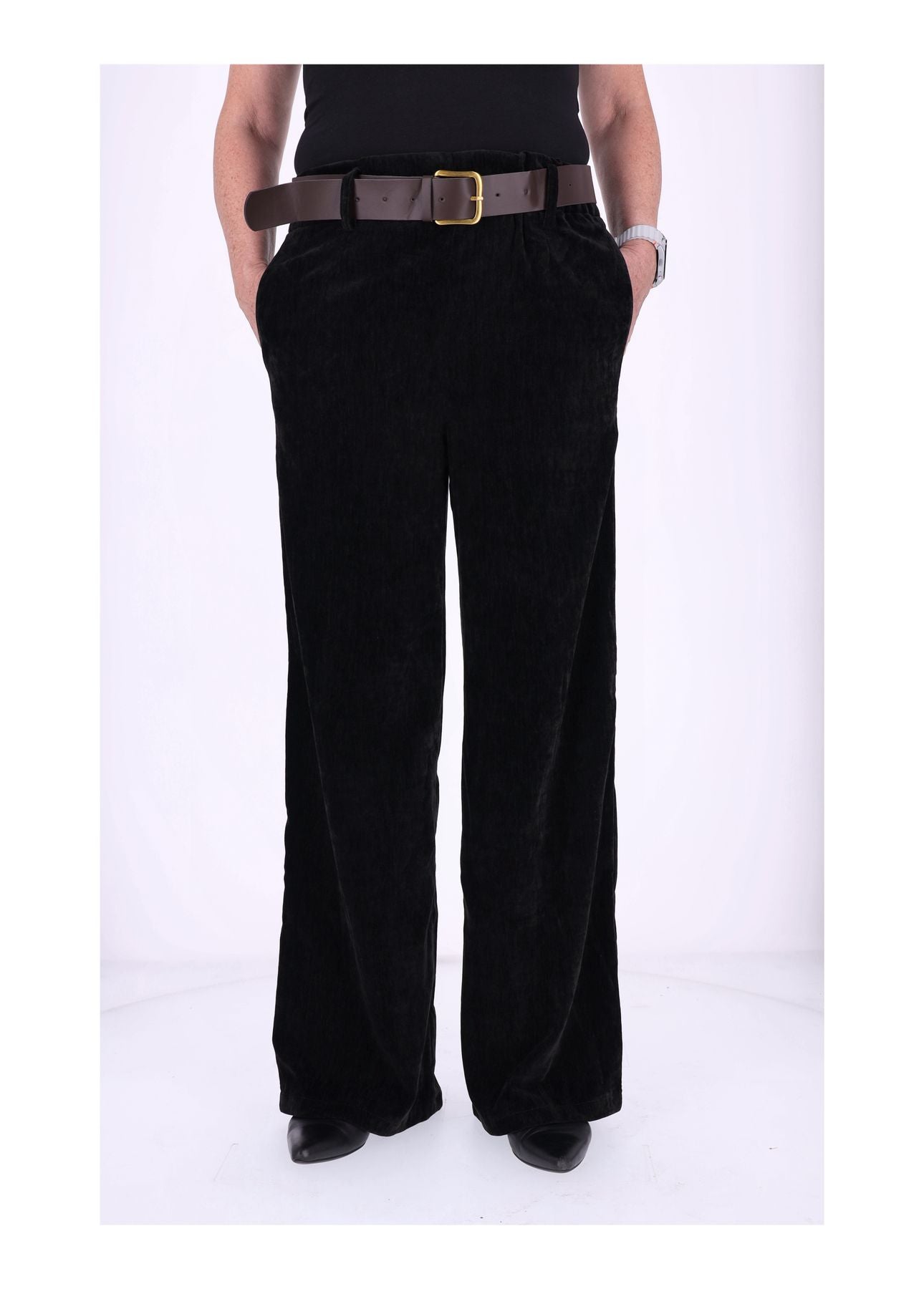 Diese Damenhose in hochwertiger Samt-Qualität ist ein echtes Must-have für alle, die Eleganz und Komfort lieben. Der Materialmix aus 85% Polyester, 12% Viskose und 3% Elasthan sorgt für eine angenehm weiche Haptik, einen perfekten Sitz und gleichzeitig viel Bewegungsfreiheit. Der elastische Gummibund passt sich bequem deiner Figur an, während der dekorative Gürtel ein modisches Highlight setzt. Mit ihrem weiten Schnitt nach unten streckt sie optisch das Bein und zaubert dir eine moderne, feminine Silhouette.