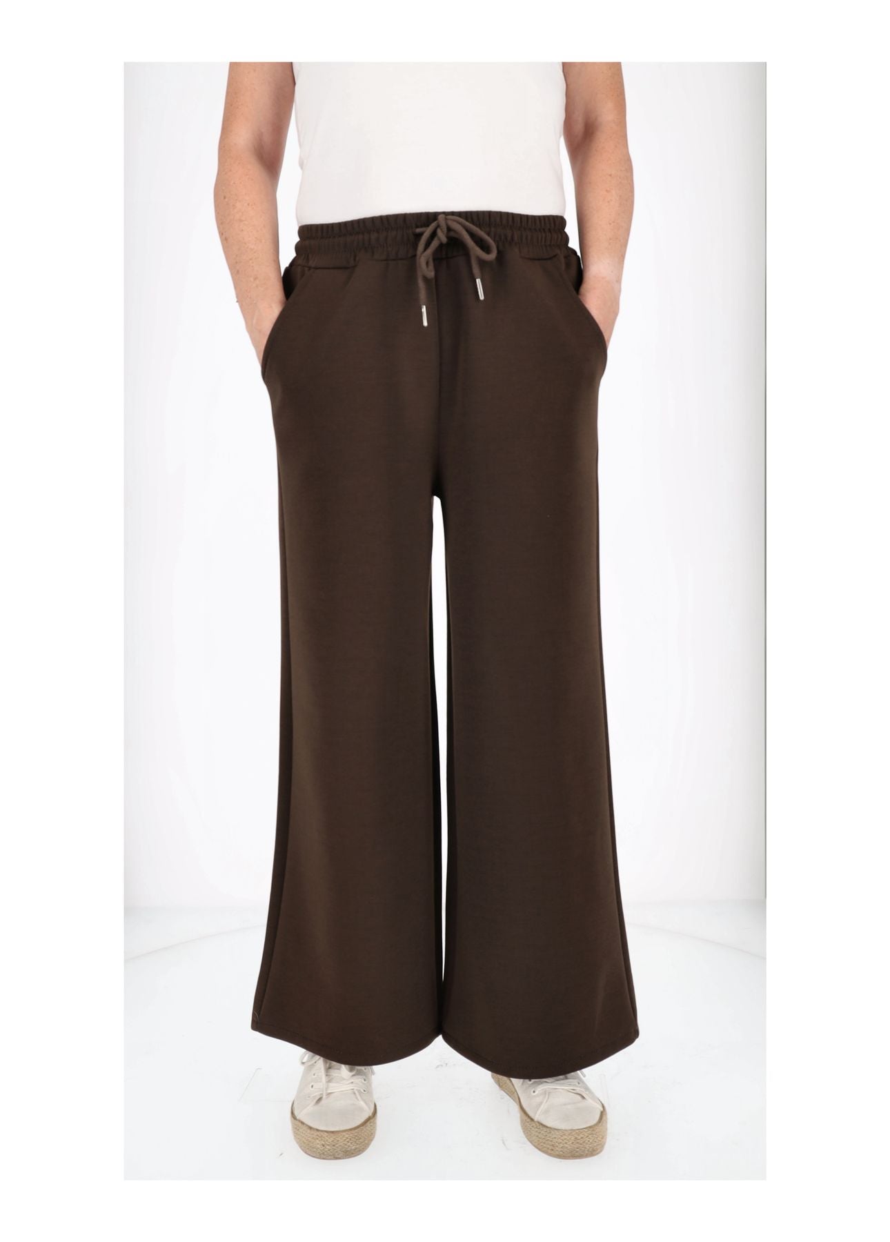 Mit zwei seitlichen Taschen links und rechts ist die Hose nicht nur schick, sondern auch absolut alltagstauglich. Das weite Bein fällt fließend und schmeichelt jeder Silhouette – ob du sie sportlich oder elegant kombinierst.