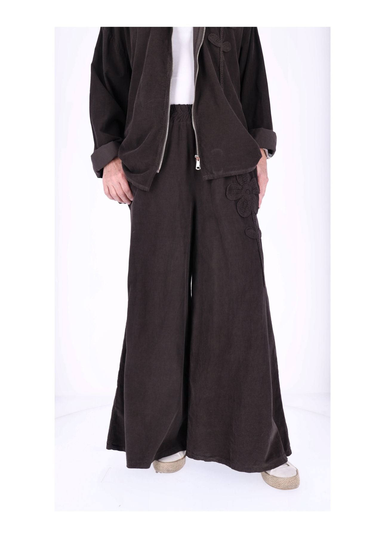Hose Damen – Weites Bein aus Babycord mit Blumen-Detail