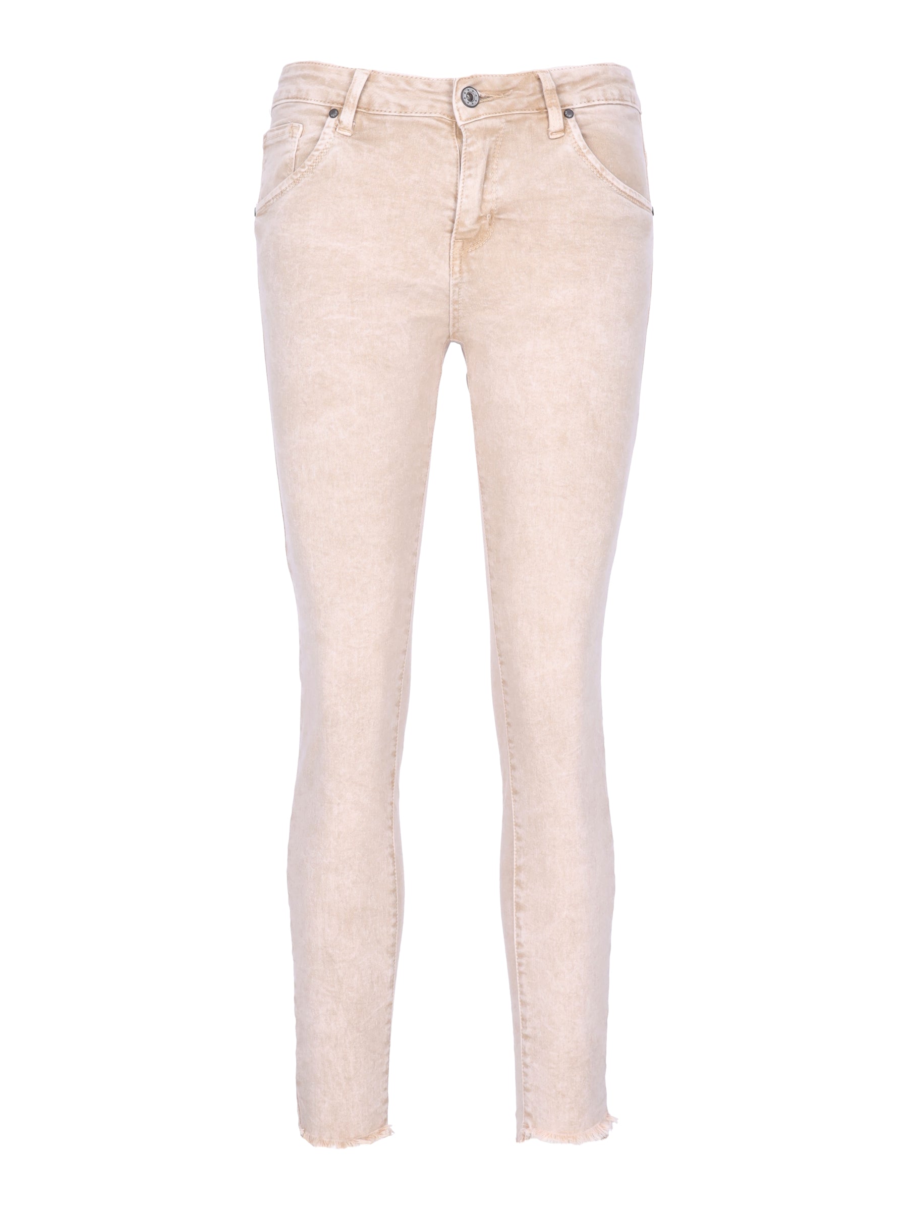 Mit ihrem trendigen Design und den praktischen Details wird diese Hose schnell zu Ihrem Lieblingsstück für verschiedene Anlässe. Die Hose ist mit einem Knopf und einem Reißverschluss versehen, was für eine einfache und sichere Passform sorgt. Diese klassische Verschlussart verleiht der Hose eine zeitlose Note und macht sie zu einem vielseitigen Begleiter für Ihren Alltag. Das enge ausgefranste Bein der Hose verleiht Ihrem Look eine moderne und schicke Note. Es betont Ihre Silhouette und setzt stilvolle Akzente, während der ausgefranste Saum einen lässigen Touch verleiht. Die schlichte Farbe ermöglicht zahlreiche Kombinationsmöglichkeiten und passt zu verschiedenen Tops und Oberteilen.