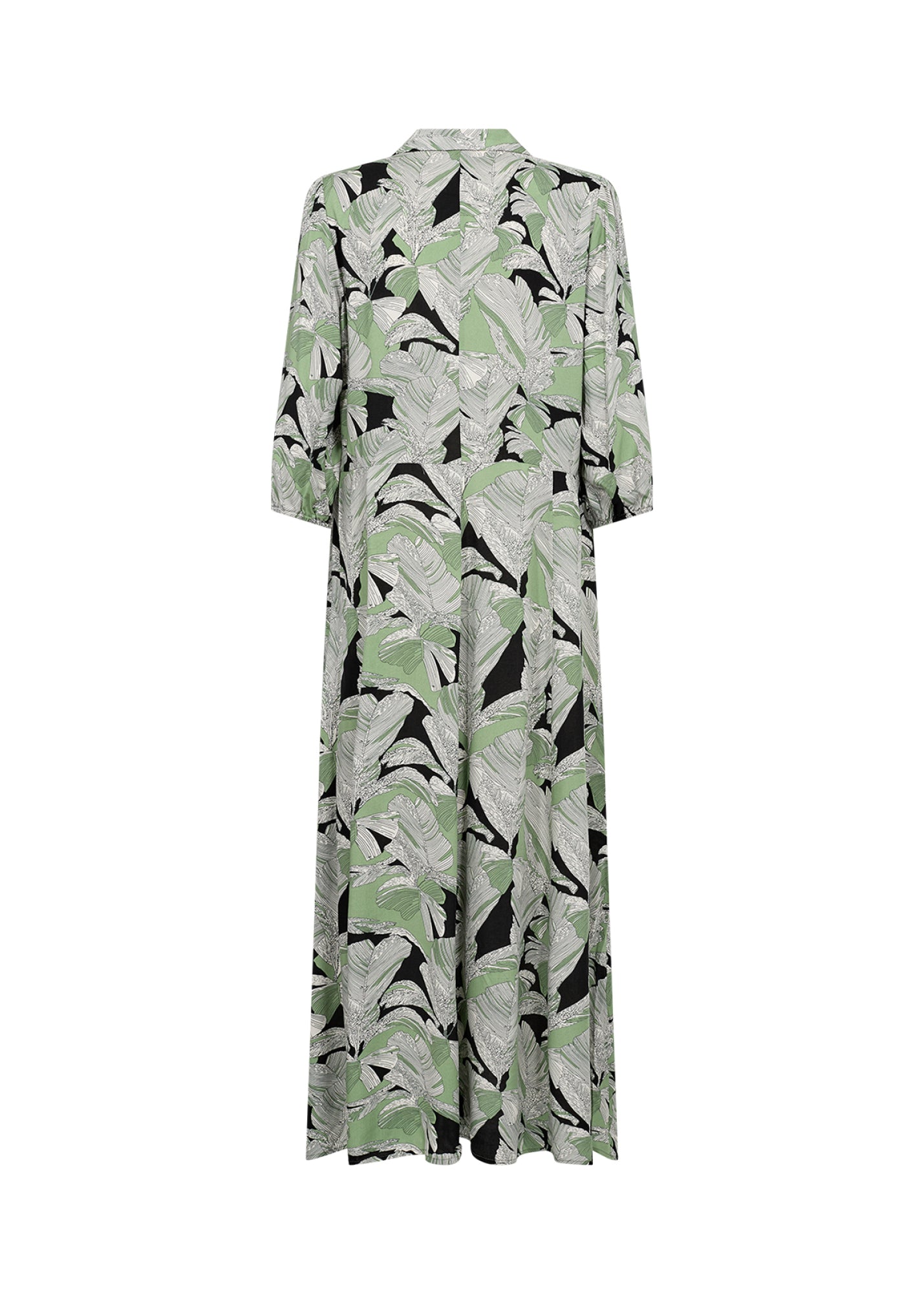 SC-Dauphin 4 ist ein feminines Kleid aus 100% LENZING™ ECOVERO™ Viskose. Das Kleid hat einen geteilten Halsausschnitt mit Kragen, einen Knopfverschluss, 7/8-Ärmel, eine Taillenschlaufe und einen schönen Druck. Kombinieren Sie dieses elegante Kleid mit einer Jeans und Sandalen für einen schönen Alltagslook.