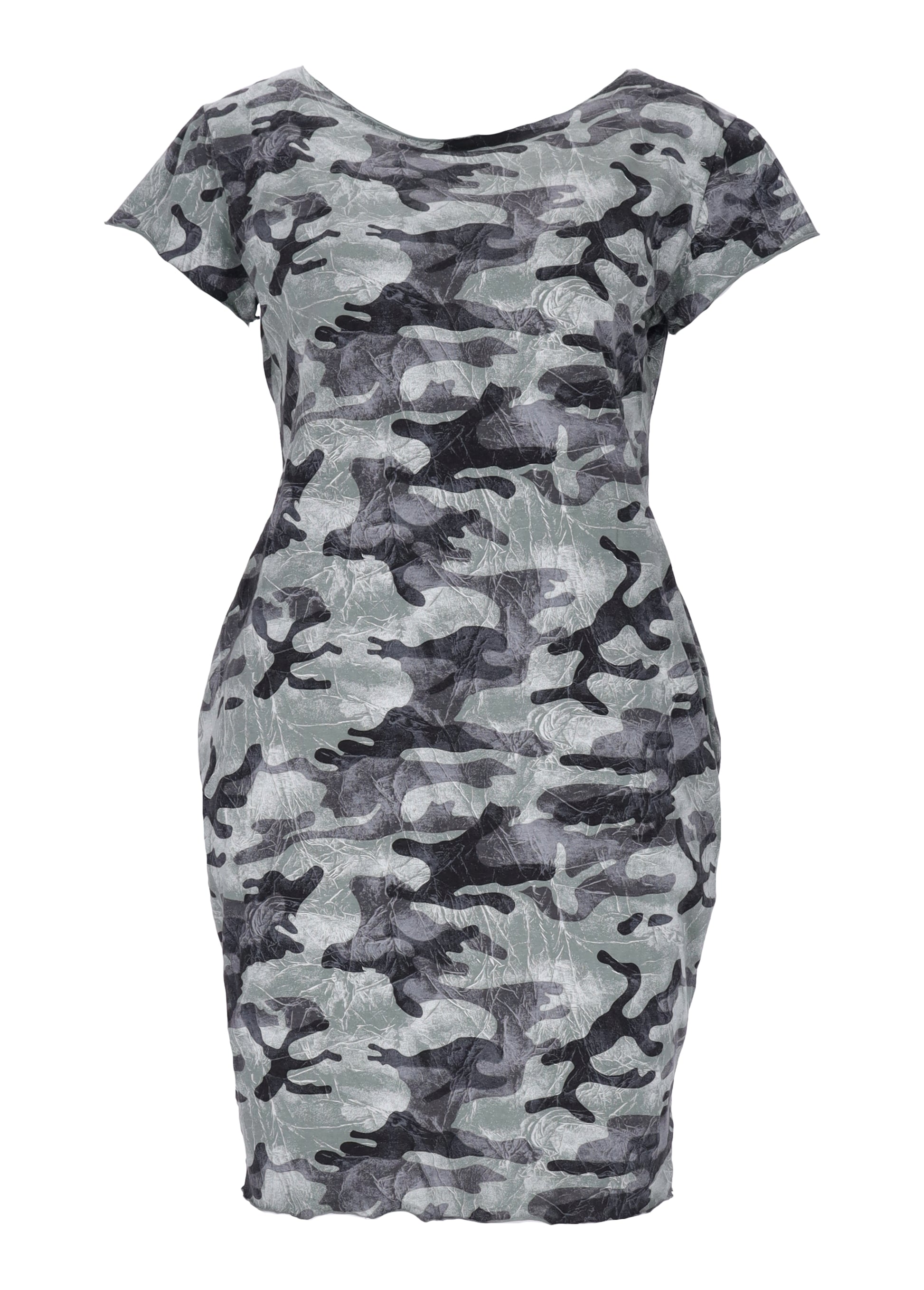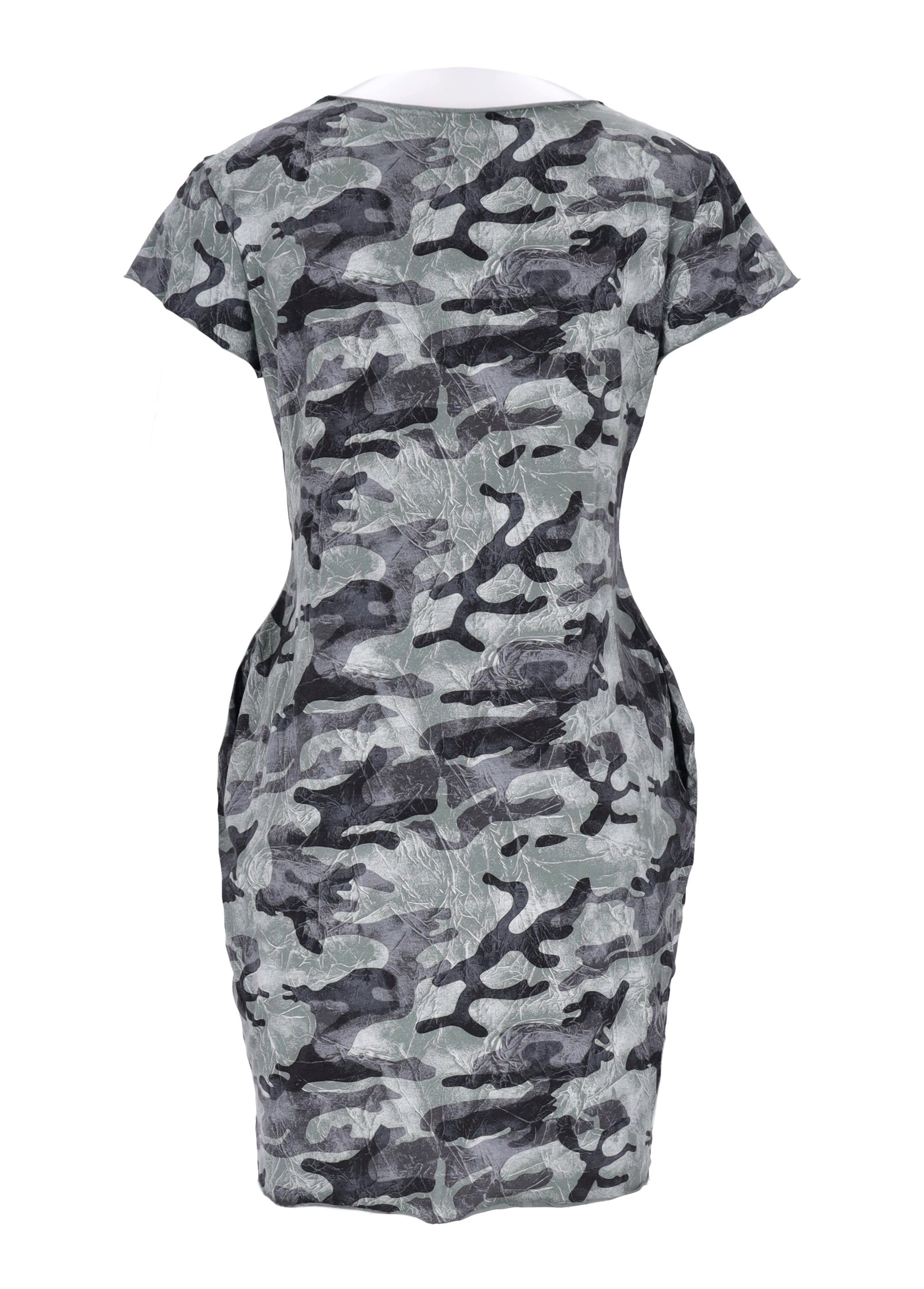 Das Camouflage-Muster verleiht diesem Kleid eine rebellische Note und ist gleichzeitig vielseitig genug, um sowohl tagsüber als auch abends getragen zu werden. Egal, ob Sie es zu einem lässigen Ausflug in die Stadt oder zu einem aufregenden Abend mit Freunden tragen - dieses Kleid sorgt garantiert für einen modischen Auftritt. Die Einschubtaschen an den Seiten des Kleides bieten nicht nur einen praktischen Platz zum Verstauen Ihrer kleinen Habseligkeiten wie Schlüssel oder Handy, sondern setzen auch stilvolle Akzente.