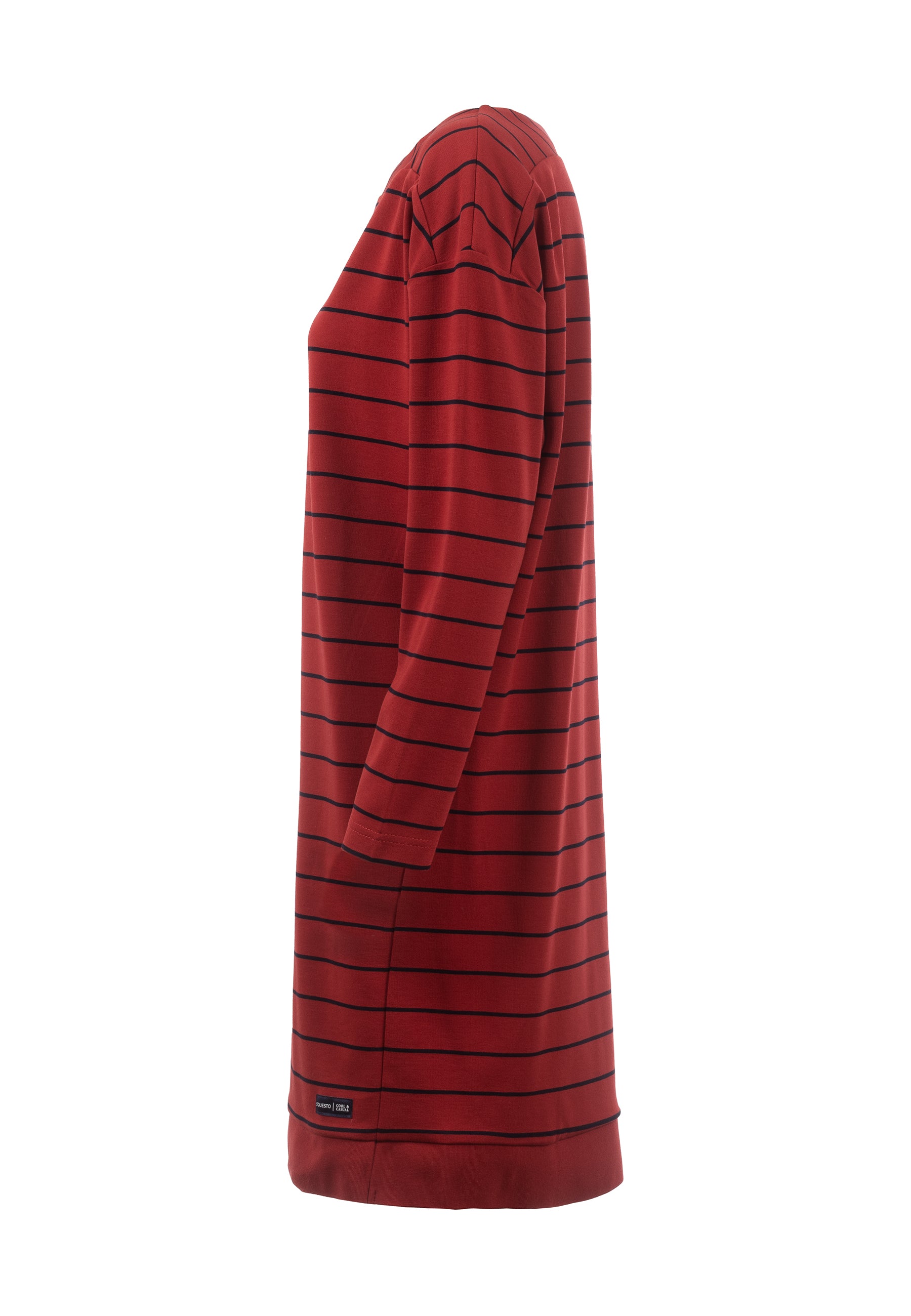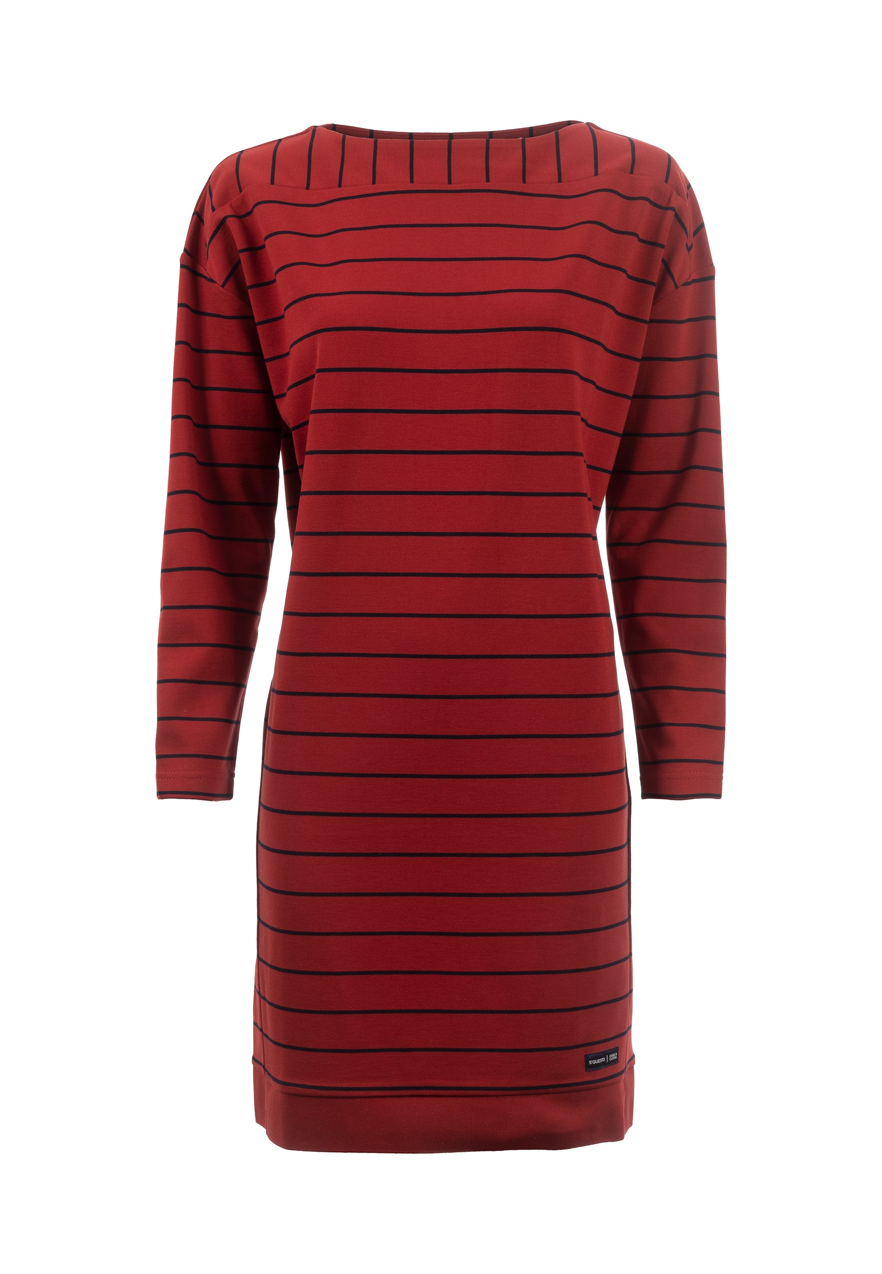 Streifen-Shirtkleid Gestreiftes Sweatshirtkleid mit einer abgesteppten Naht unterhalb des Rundhalsausschnitts, an der sich die Richtung der Streifen ändert. Überschnittene Arme und ein elastischer Saum sorgen für einen lässigen Look.