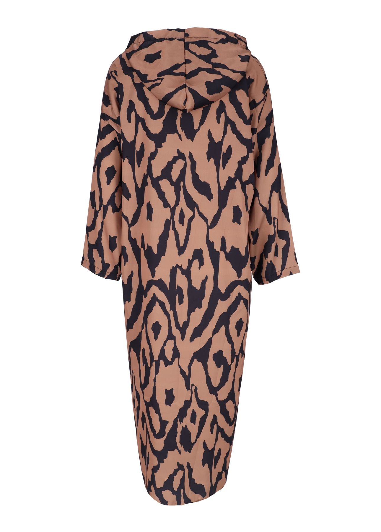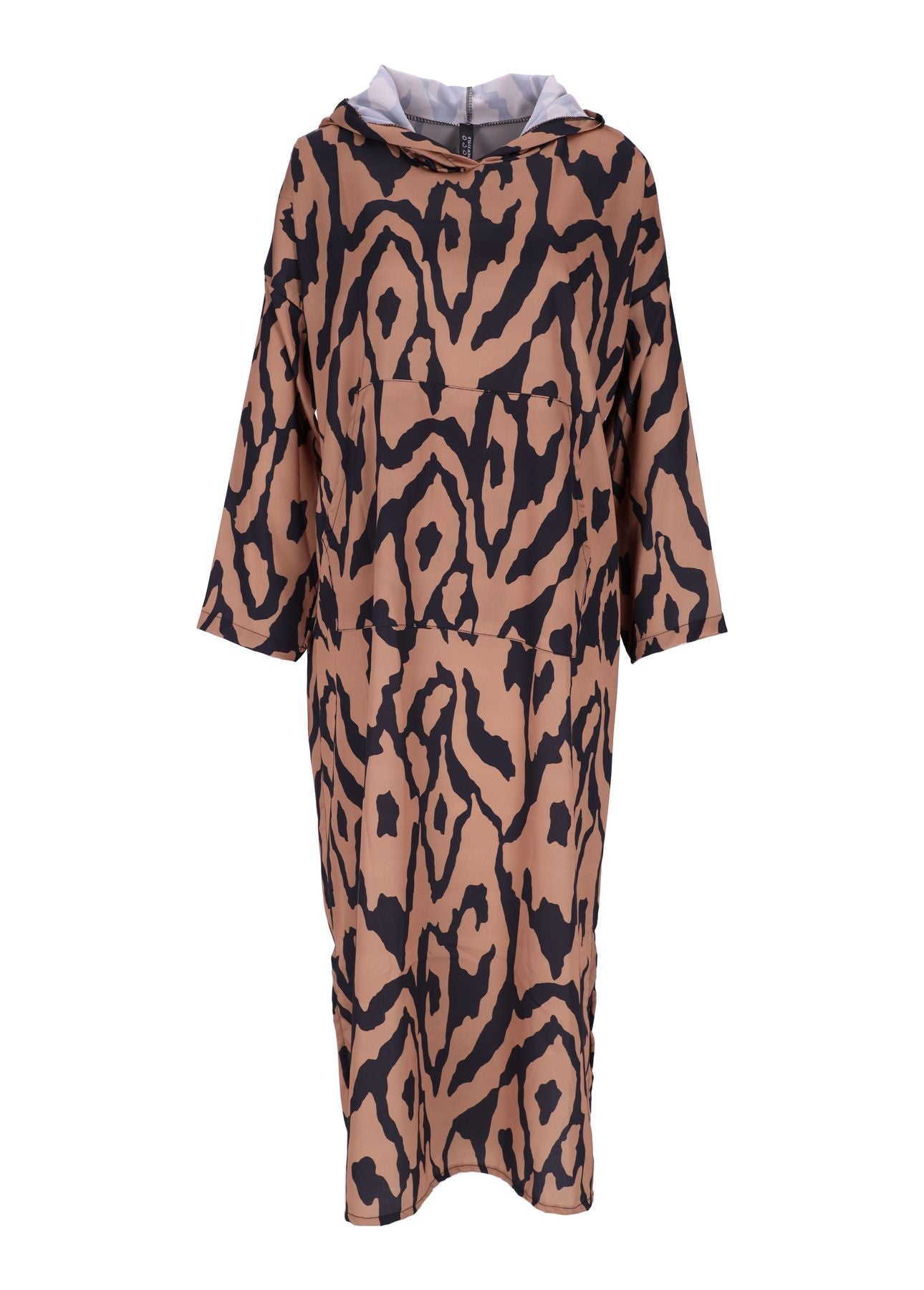 Dieses Damen Kleid vereint Komfort und Trendbewusstsein in einem einzigartigen Design. Der modische Print macht das Kleid zu einem echten Hingucker, während die große Bauchtasche vorne nicht nur praktisch ist, sondern auch einen lässigen Akzent setzt. Die Kapuze rundet den sportlich-eleganten Look ab und sorgt für vielseitige Styling-Optionen.