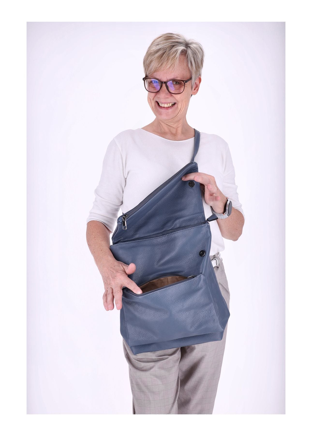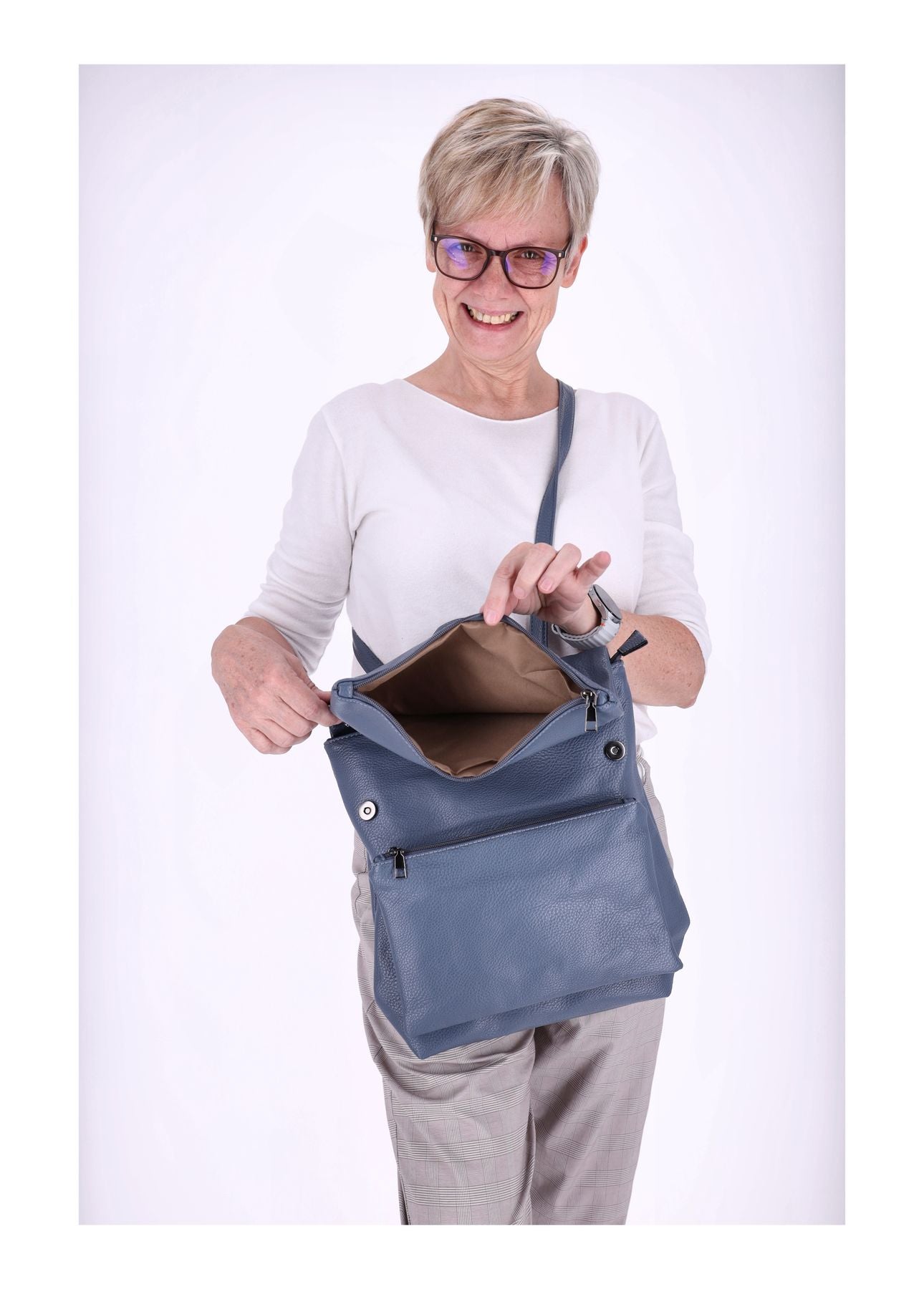 Das Beste: Der Doppel-Öffnungsmechanismus! Einfach die zwei Druckknöpfe lösen, den oberen Teil elegant umklappen – und im umgeklappten Stück wartet schon eine geheime Extra-Tasche auf dich. Dann nur noch den Reißverschluss öffnen und wow: Ein großzügiger Innenraum mit zusätzlicher Reißverschluss-Innentasche für all deine Schätze.