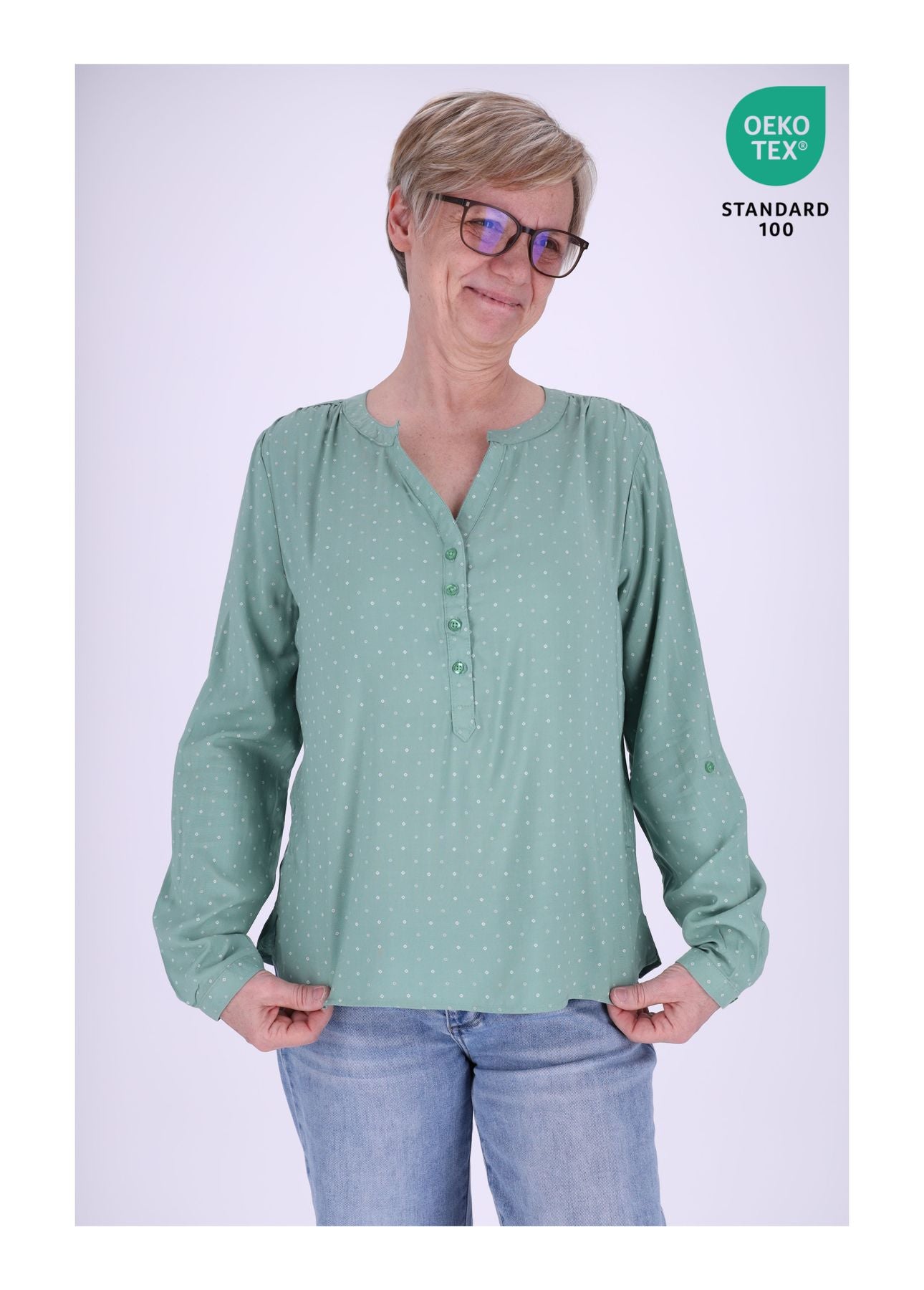Besonders praktisch: Die Bluse ist nach dem OEKO-TEX® Standard 100 zertifiziert – schadstoffgeprüft und hautfreundlich, für ein gutes Tragegefühl von innen und außen.