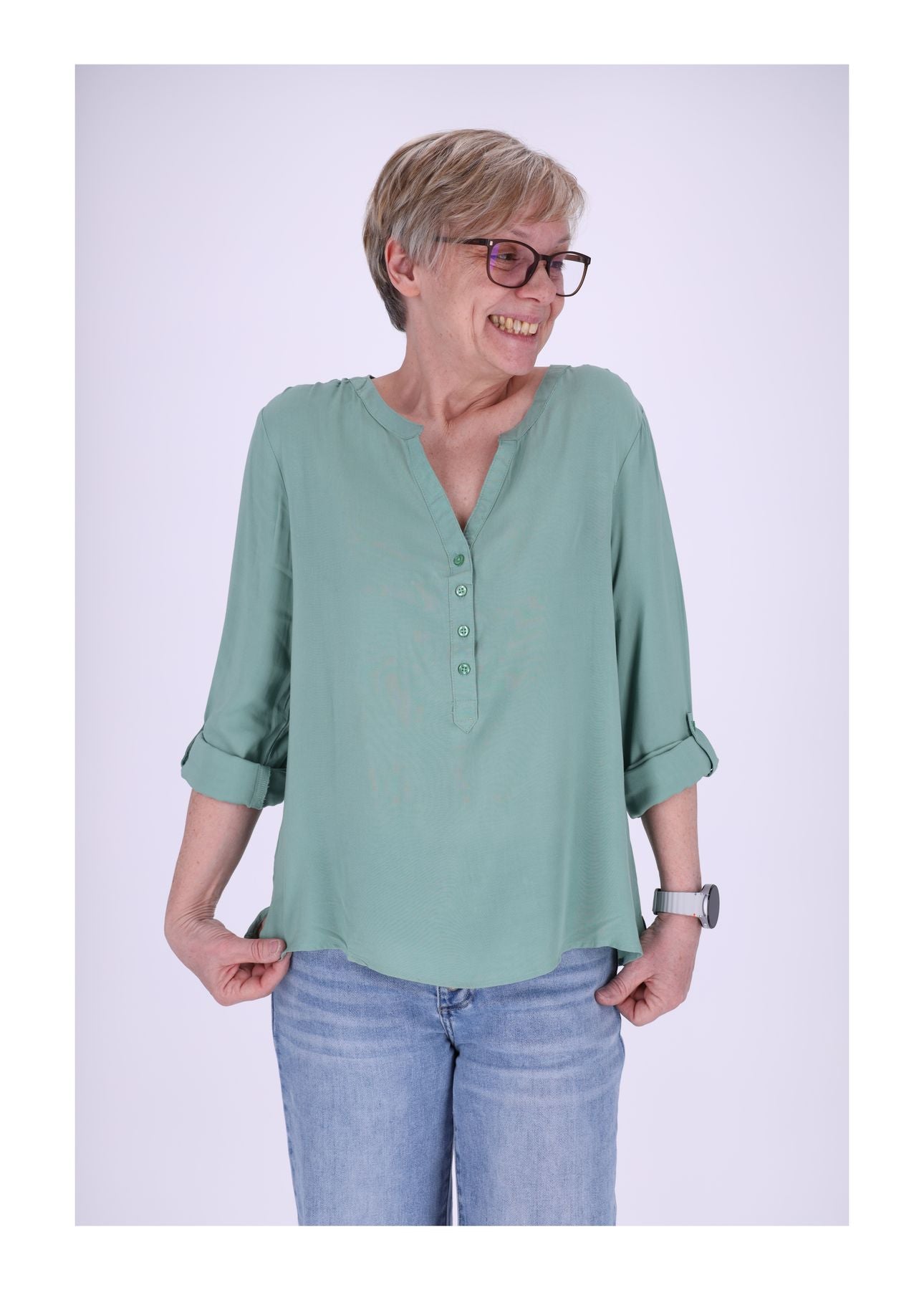 Diese Schlupfbluse ist dein neues Lieblingsstück für jeden Tag! Mit ihrem angedeuteten V-Ausschnitt und der kurzen Knopfleiste mit vier Knöpfen zaubert sie eine feminine und gleichzeitig entspannte Ausstrahlung.