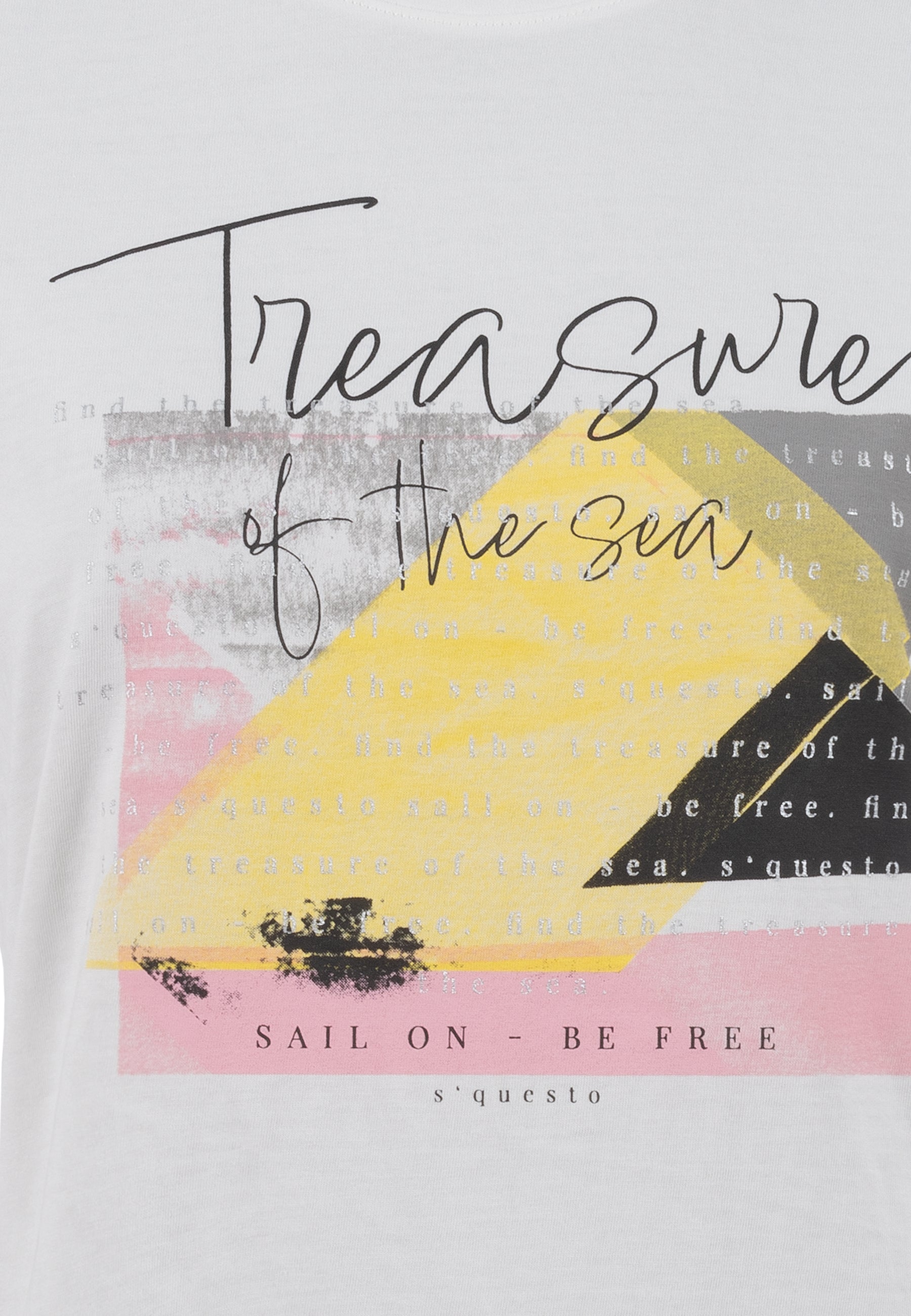 Locker sitzendes T-Shirt mit modernem Geometrisch- und Lettering-Druck. Ideal für Dein Frühlingsoutfit!