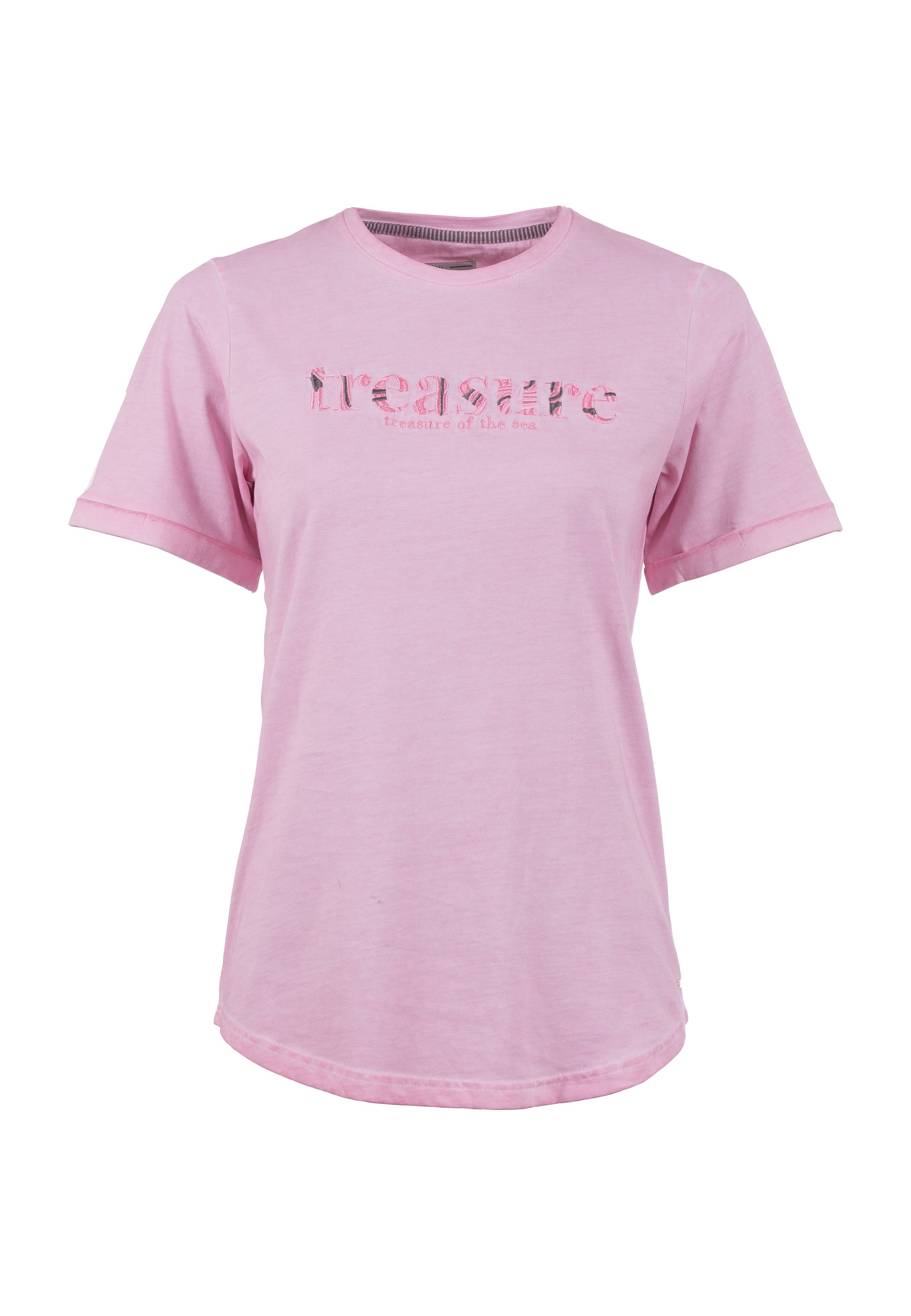 Damenshirt mit Rundhalsausschnitt. Ein Statement-Wording mit gemusterten Patches zaubert daraus einen Hingucker-Look.