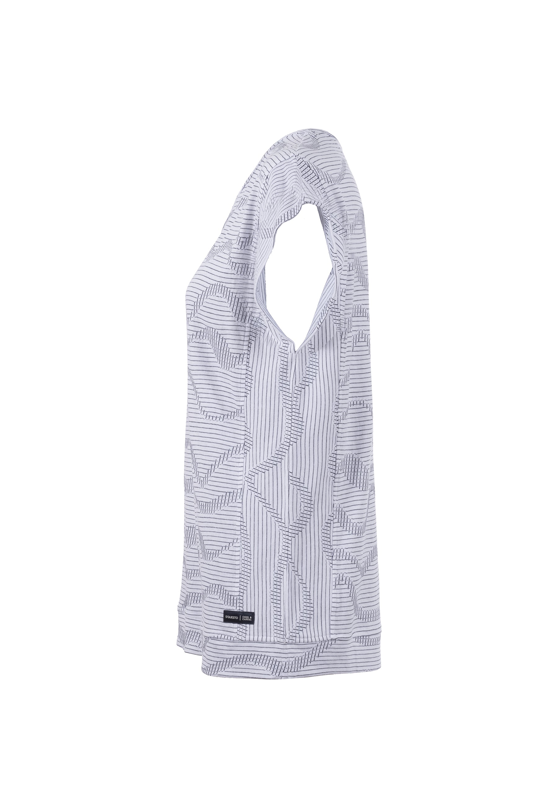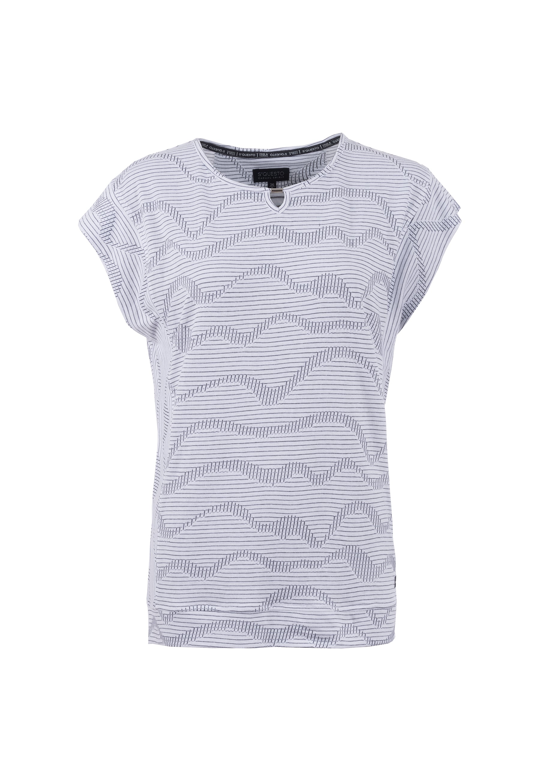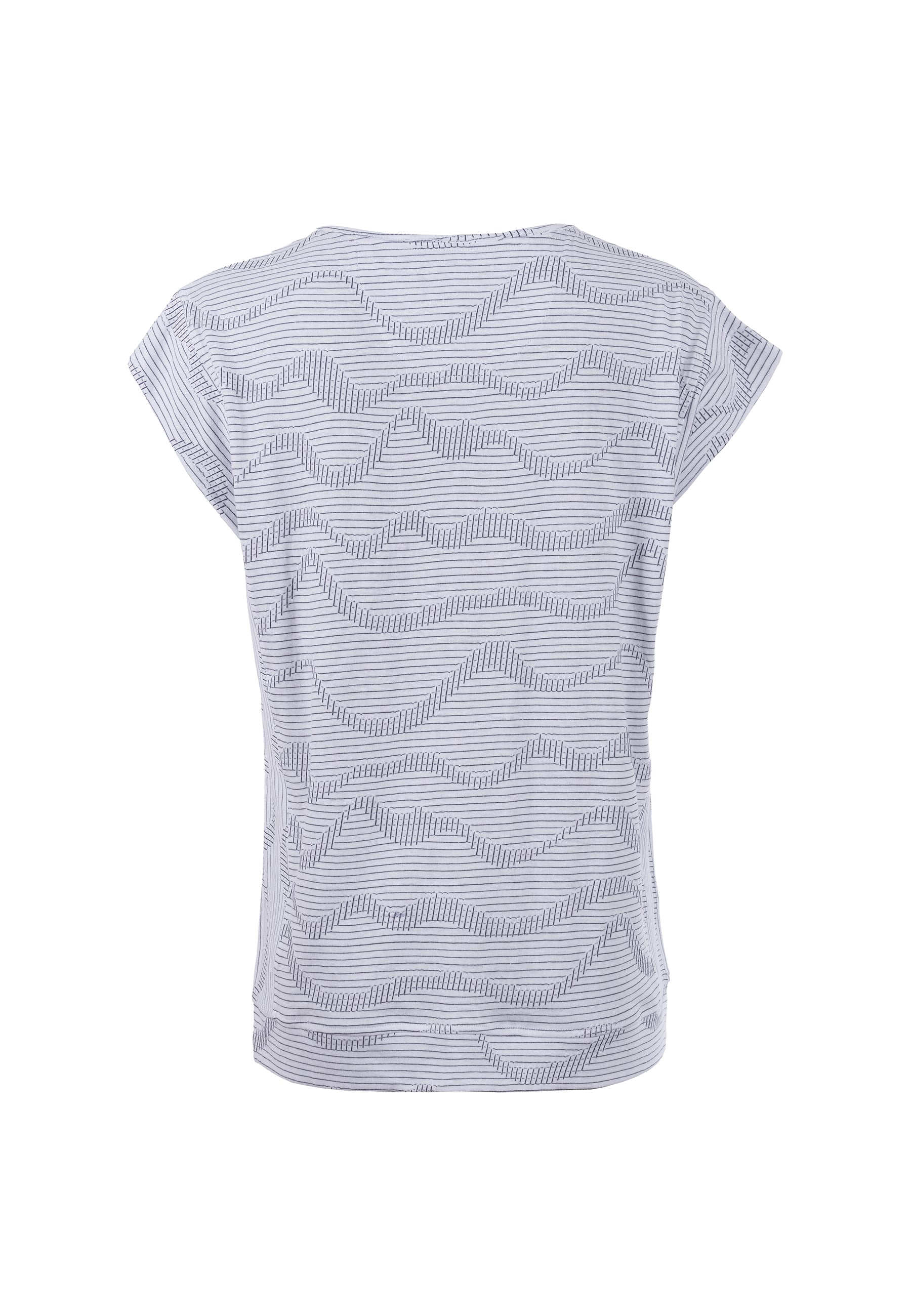 - Grafischer Allover-Print: Der moderne grafische Allover-Print sorgt für eine auffällige und dennoch elegante Optik. Das Muster ist zeitgemäß und verleiht dem T-Shirt eine kreative und modische Ausstrahlung.