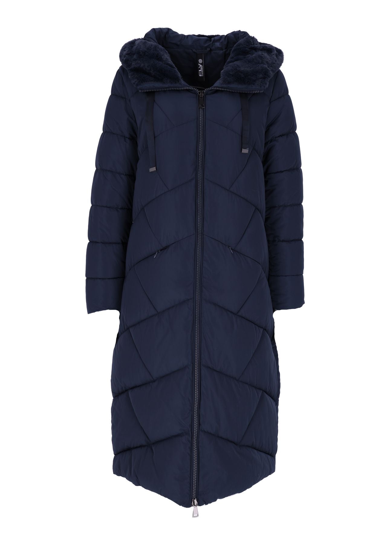 Dieser Damen Steppmantel kombiniert Wärme, Stil und Funktionalität in einem modischen Design. Mit seinem langen Schnitt bietet er optimalen Schutz an kühlen Tagen und sorgt gleichzeitig für eine trendige Silhouette. Die Kapuze ist mit weichem, luxuriösem Fell ausgestattet, das nicht nur für zusätzliche Wärme sorgt, sondern auch einen eleganten Akzent setzt.