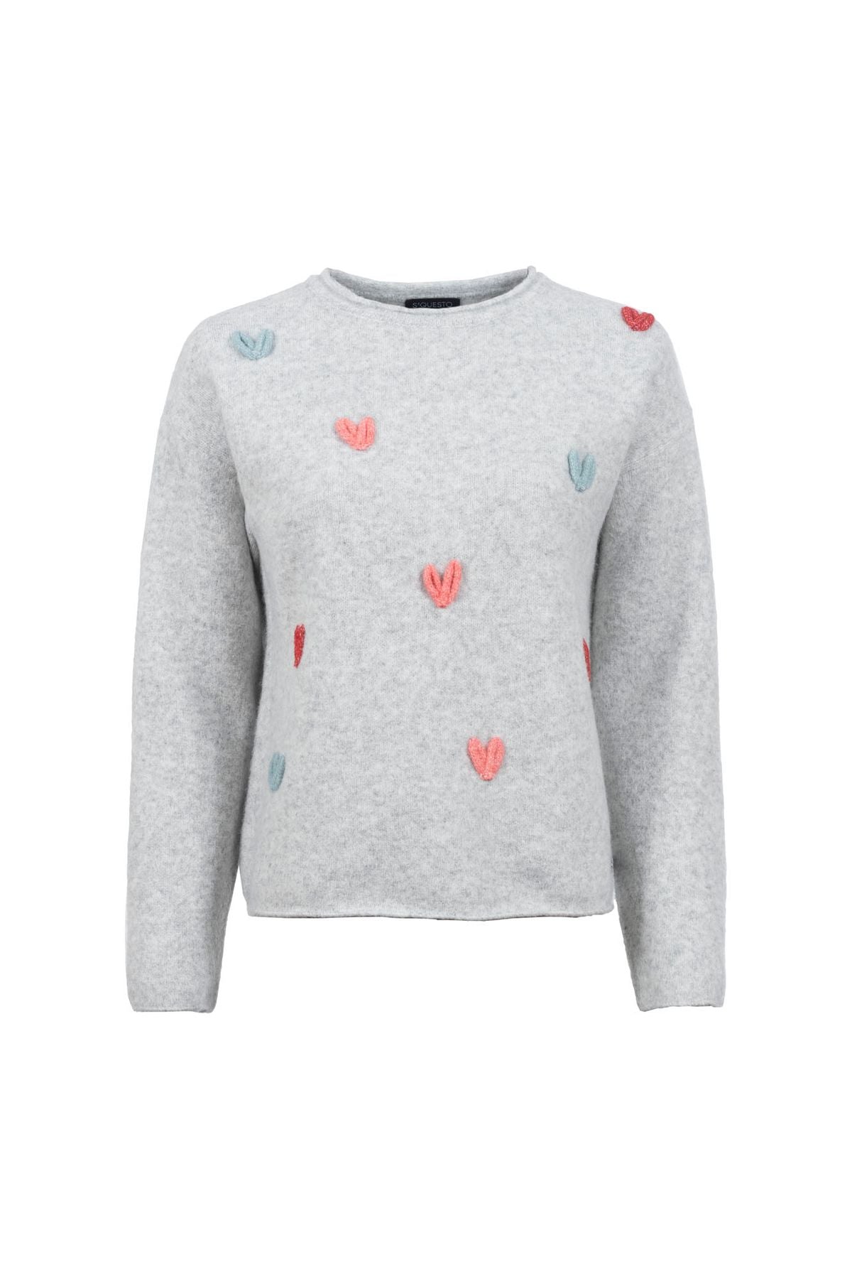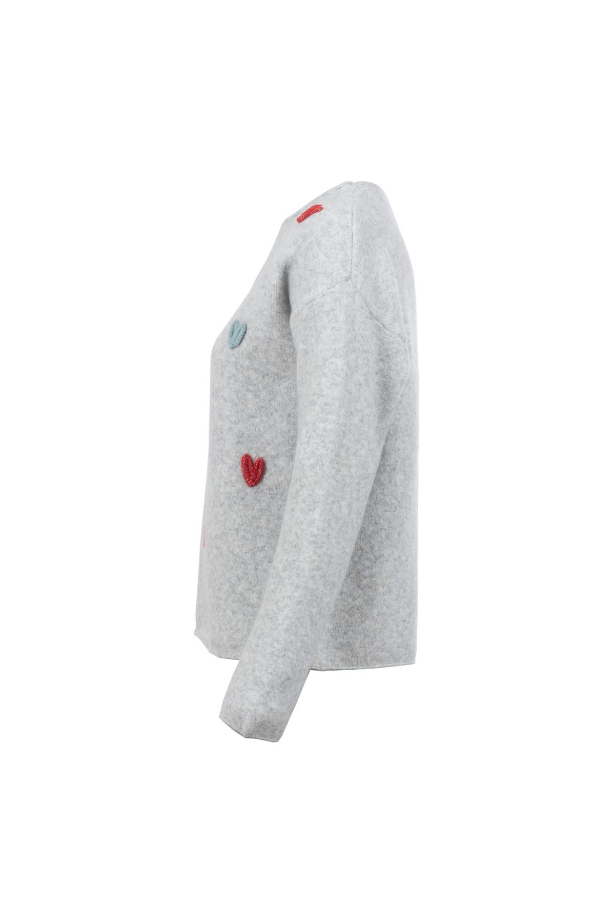 Verspieltes Design Verspielte Herzchen-Applikationen in verschiedenen Farben machen den Pullover zum Blickfang.
