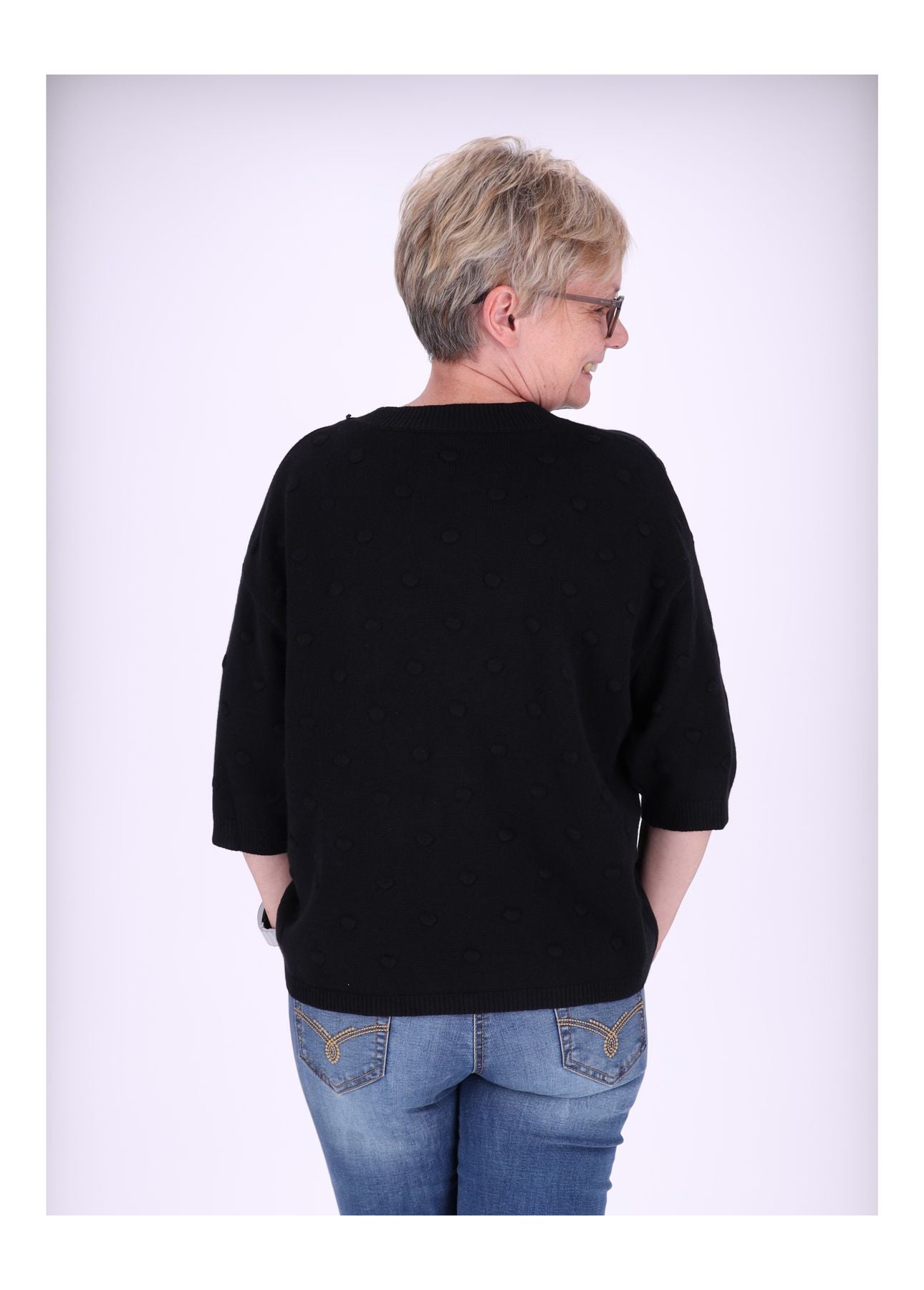 Dieser Damen-Strickpullover vereint zeitlose Eleganz mit einem Hauch von Raffinesse. Das besondere Highlight: feine Punkte, die leicht aus dem Strick hervortreten und dem Pullover eine dezente, edle Struktur verleihen. Der 3/4-Arm sorgt für einen modernen Look und macht ihn perfekt für jede Jahreszeit – ob solo getragen oder kombiniert.