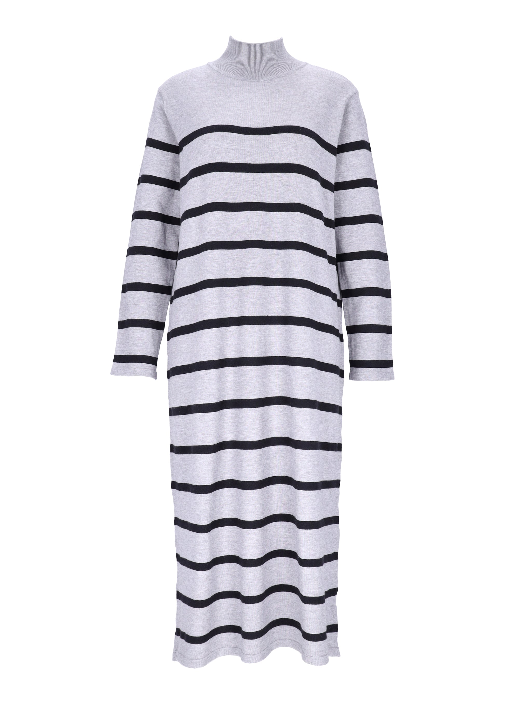 Erleben Sie modische Eleganz und unvergleichlichen Tragekomfort mit unserem Damen Strickkleid mit langen Ärmeln und Streifen. Dieses hochwertige Kleid ist der ideale Begleiter für jede Jahreszeit und bietet Ihnen einen zeitlosen Look, der sowohl im Büro als auch in der Freizeit perfekt zur Geltung kommt.