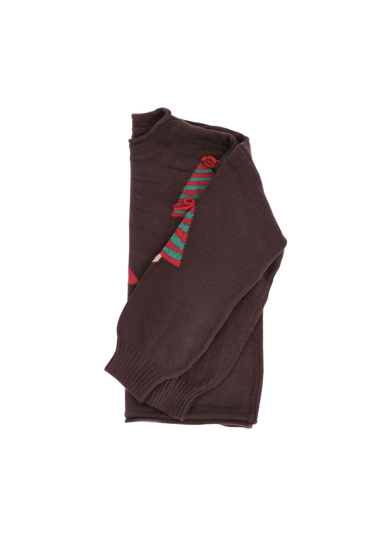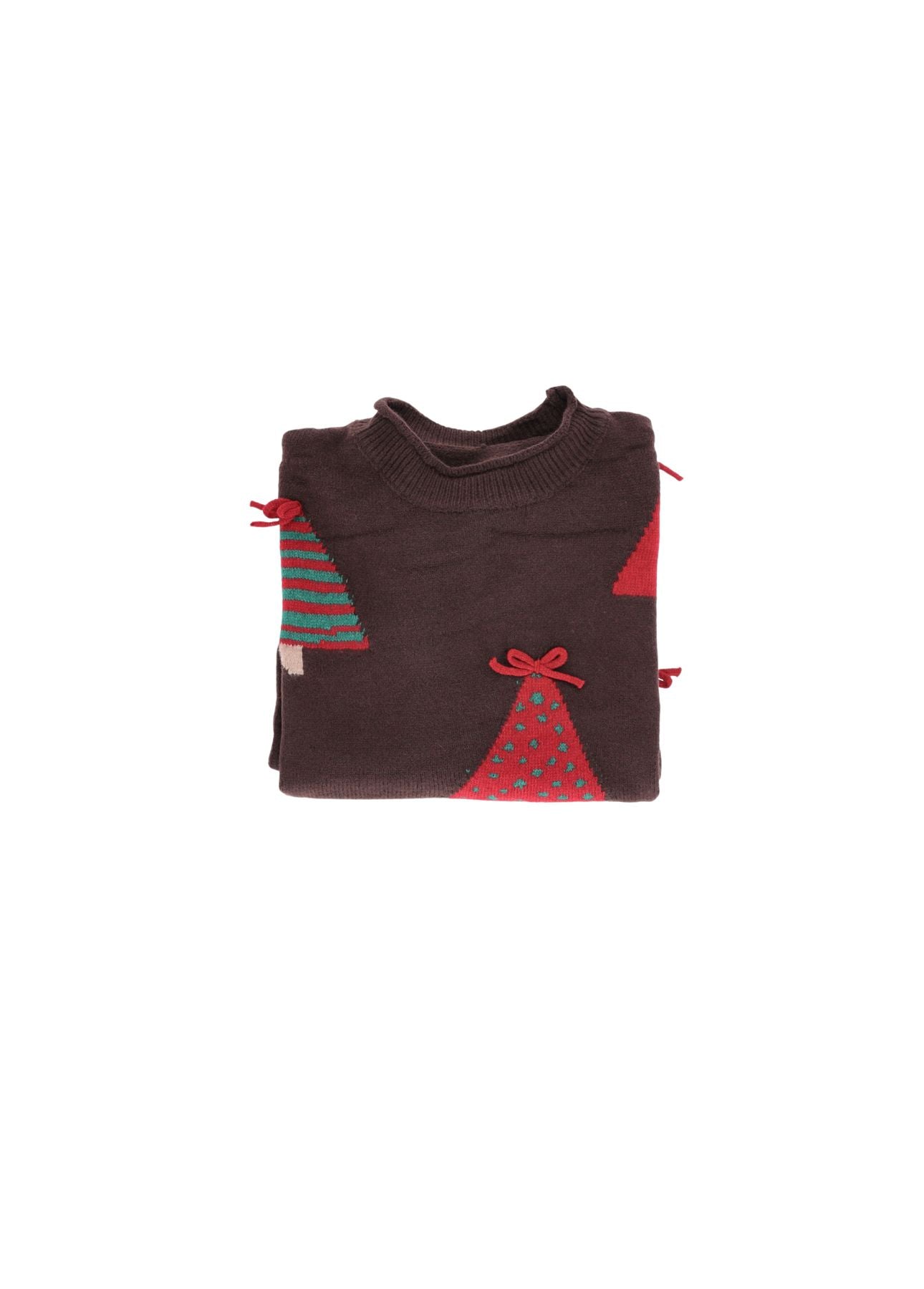 Perfekt für die Weihnachtszeit: Dieser Pullover zeigt ein liebevolles Tannenbaum-Design in Rot-, Grün- und Weißtönen, teils mit kleinen Schleifenapplikationen. Klassischer Rundhalsausschnitt und Rippbündchen an Ärmeln und Saum sorgen für bequemen Sitz.